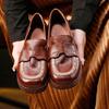 Zapatos Zapatos para Mujer Versátiles 2025 Moda Lujo Ligero Otoño Zapatos de una Sola Pieza Piel de Vaca de Primera Capa Retro Tacón Plano Mocasines sin Cordones