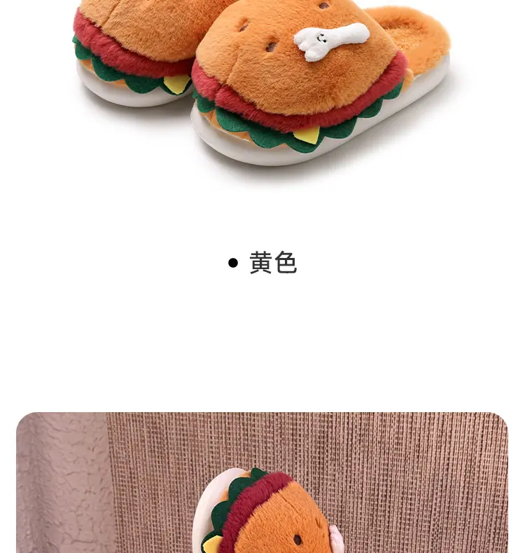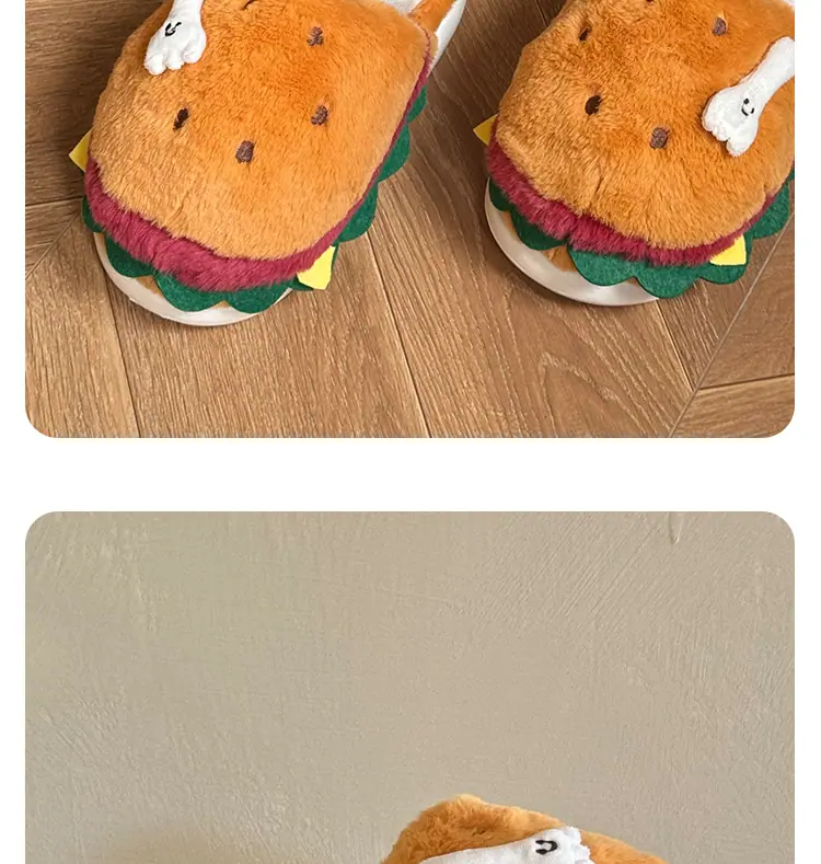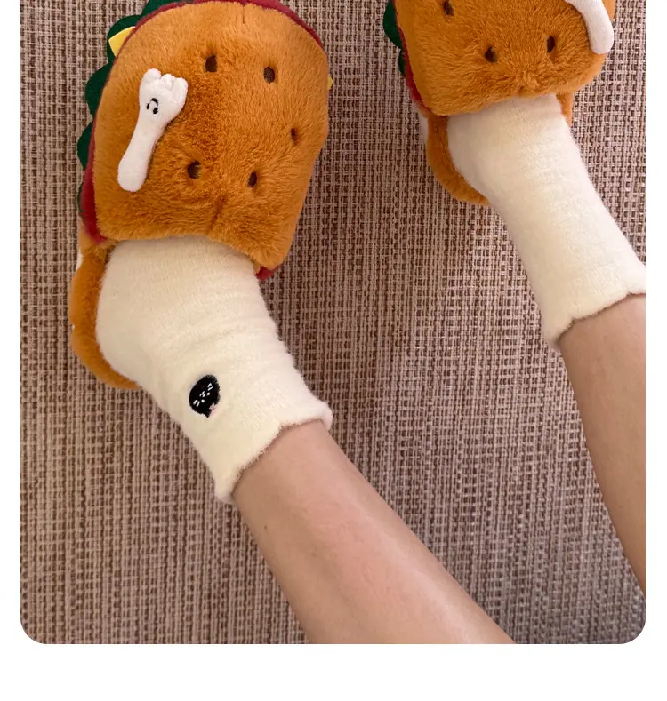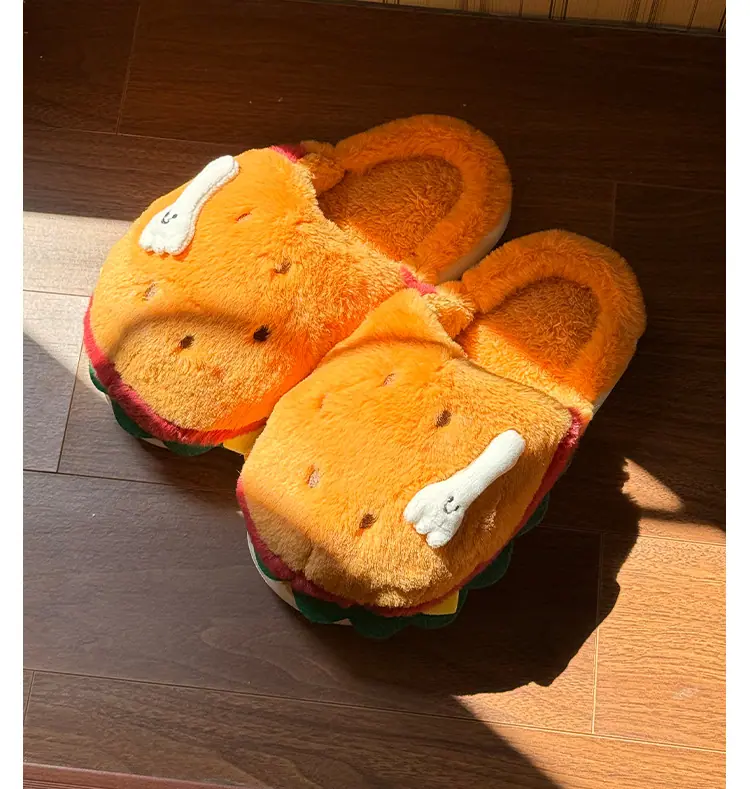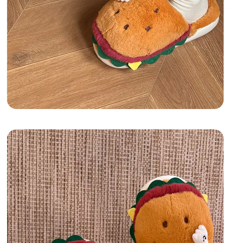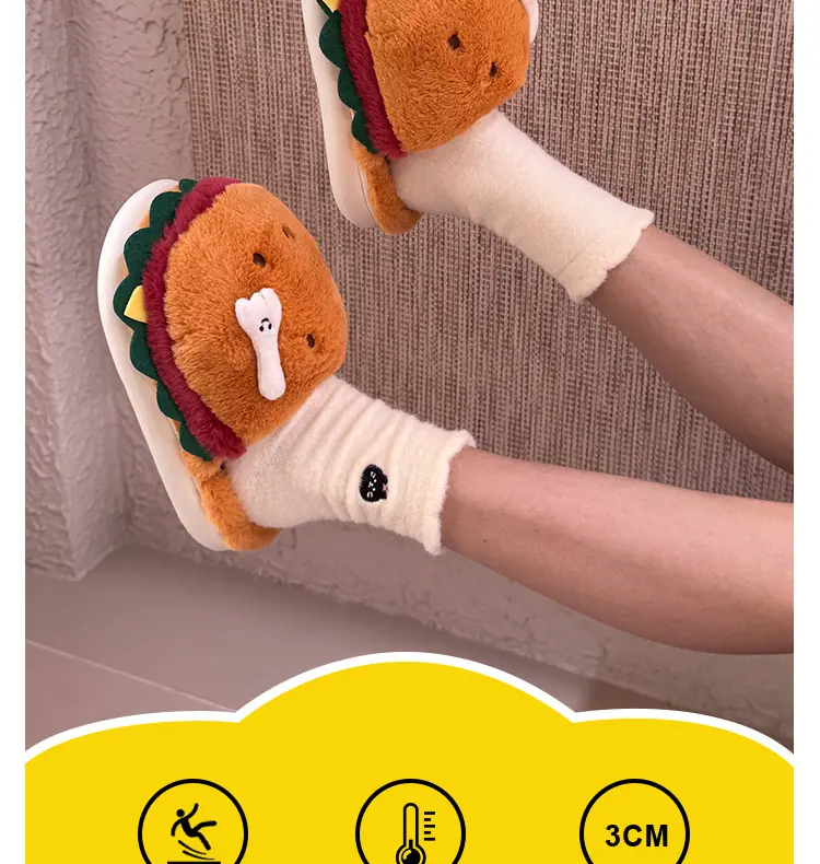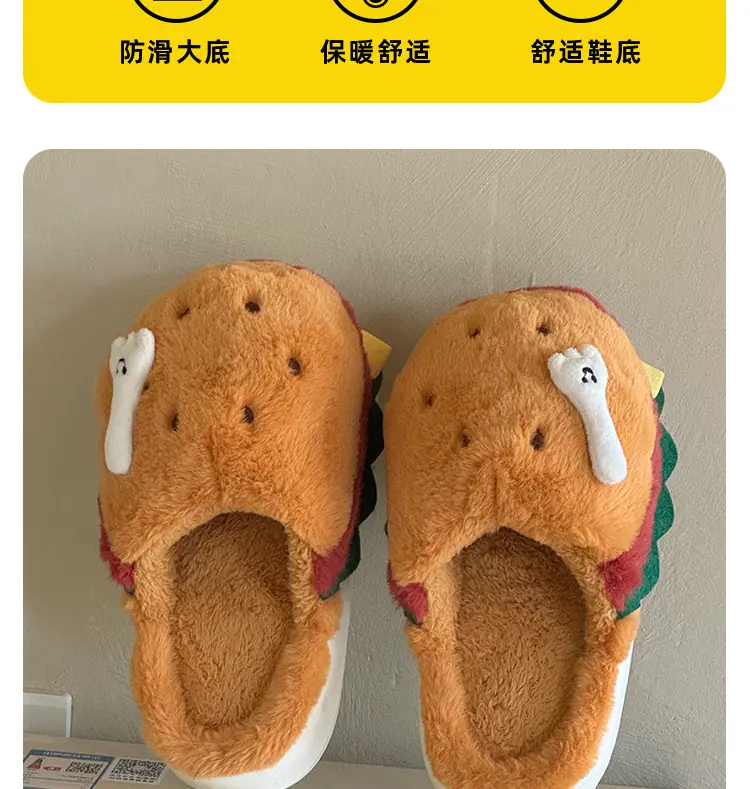 Pantuflas de Algodón de Hamburguesa Pareja Otoño e Invierno Nuevas Pantuflas de Dibujos Animados Lindas Peludas Interior Hogar Más Terciopelo Cálidas Pantuflas de Algodón