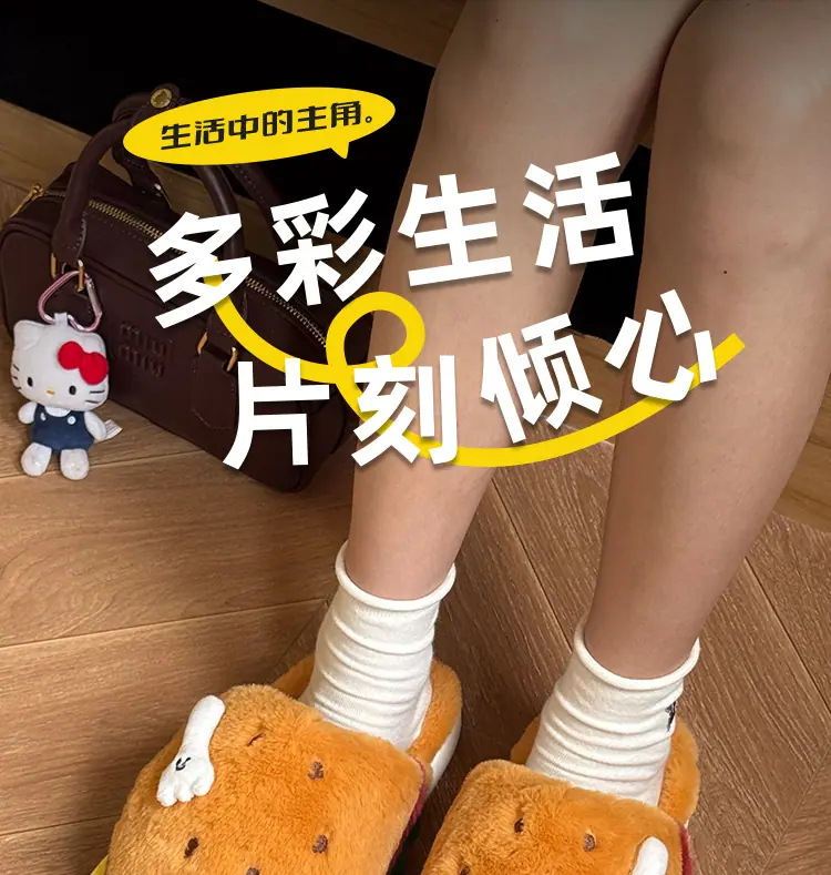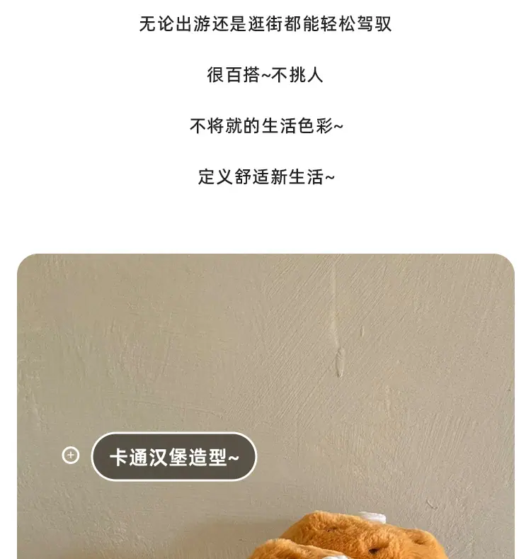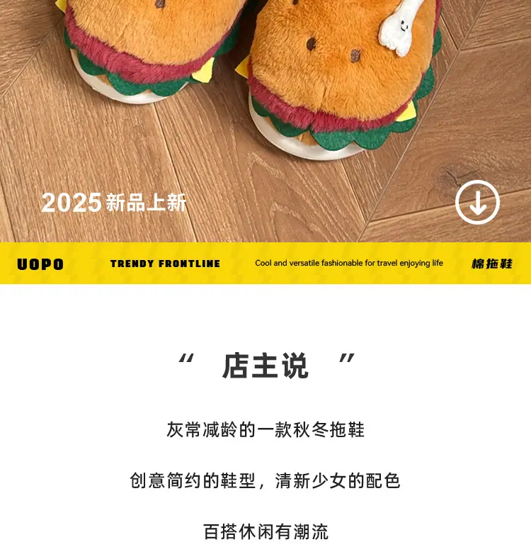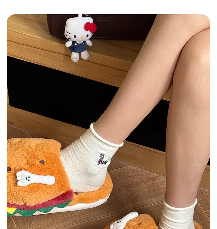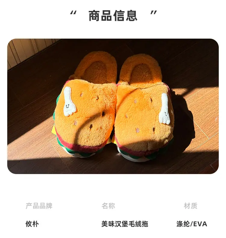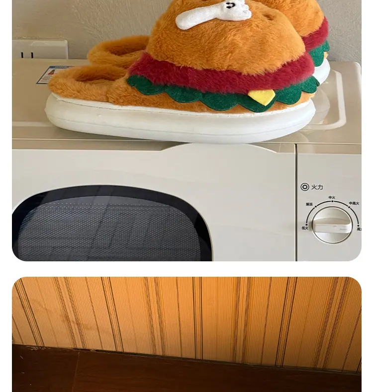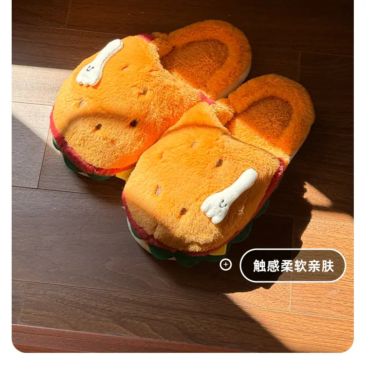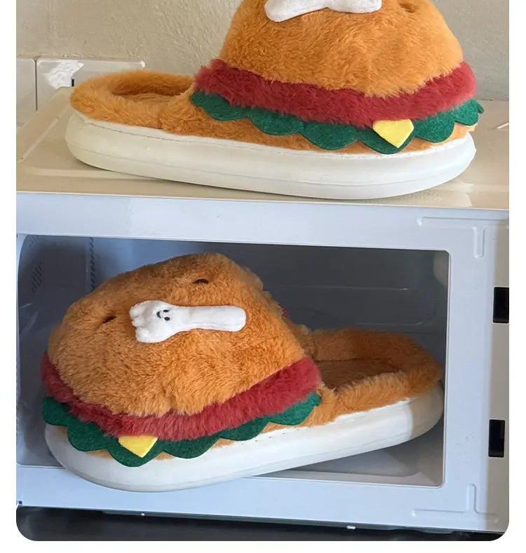Pantuflas de Algodón de Hamburguesa Pareja Otoño e Invierno Nuevas Pantuflas de Dibujos Animados Lindas Peludas Interior Hogar Más Terciopelo Cálidas Pantuflas de Algodón