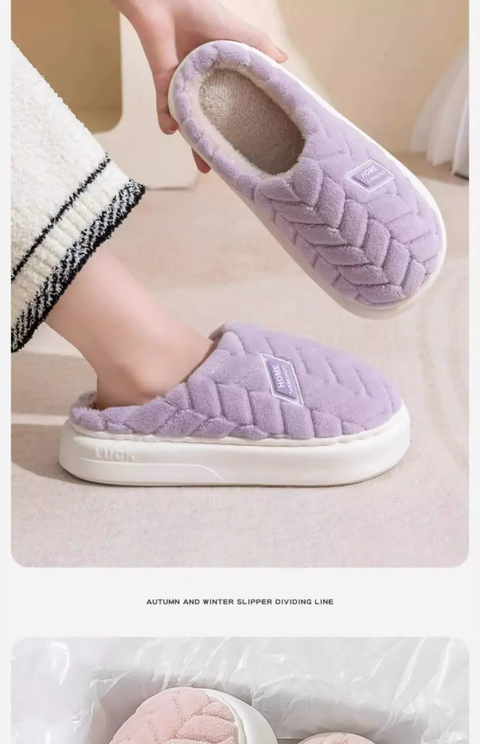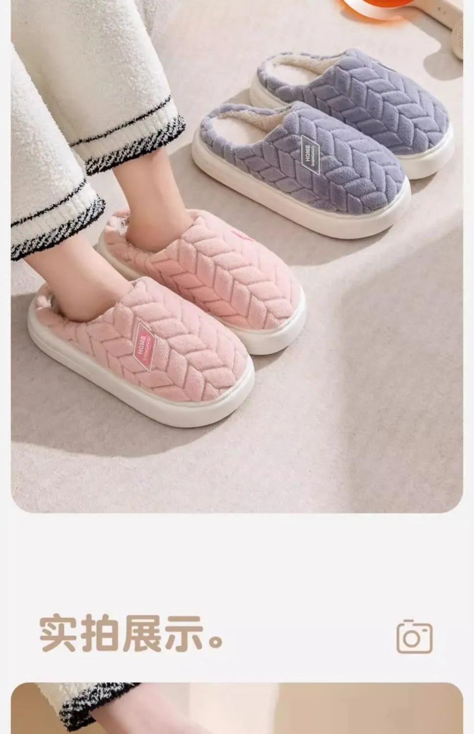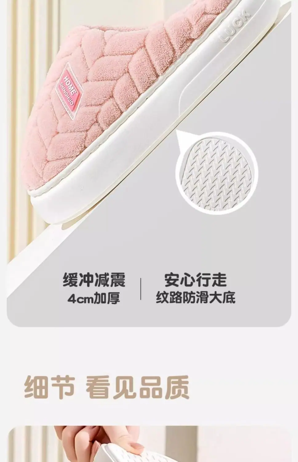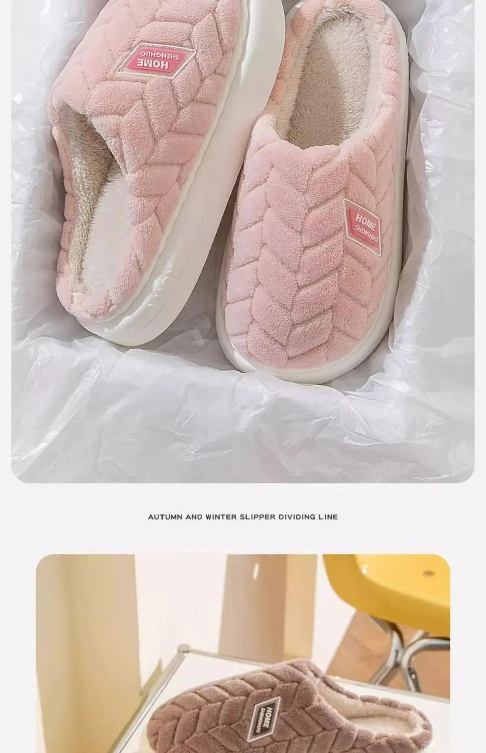Pantuflas de Algodón Cálido de Felpa para Hombre 2025 Nuevo Otoño e Invierno Interior Hogar Antideslizantes Suela Gruesa Sensación de Pisar Mierda Pantuflas de Algodón para Mujer
