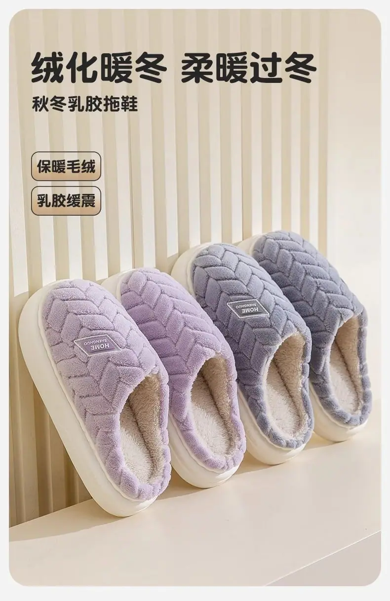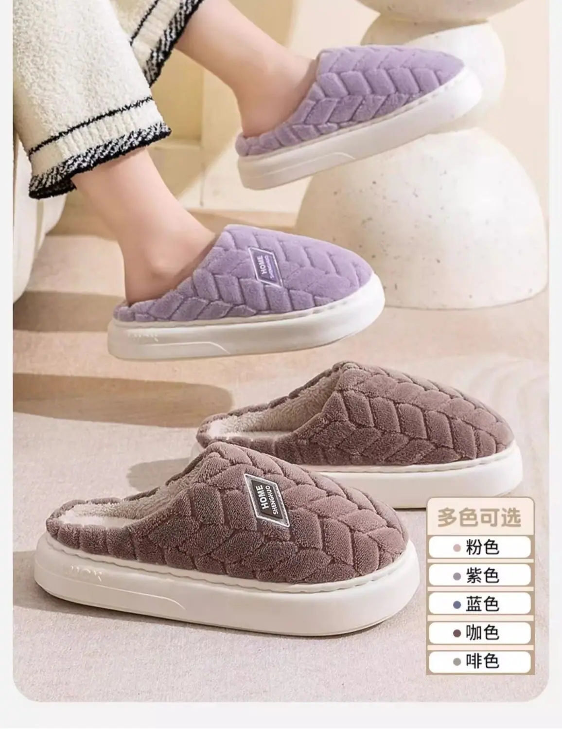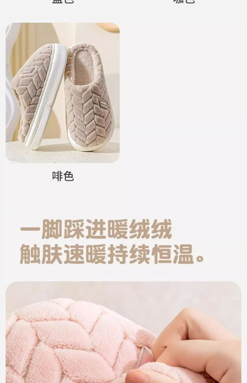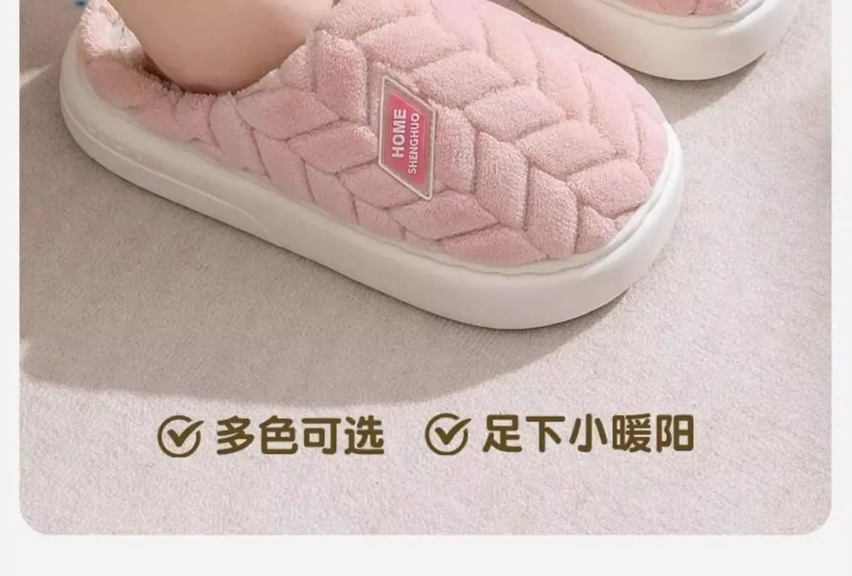 Pantuflas de Algodón Cálido de Felpa para Hombre 2025 Nuevo Otoño e Invierno Interior Hogar Antideslizantes Suela Gruesa Sensación de Pisar Mierda Pantuflas de Algodón para Mujer