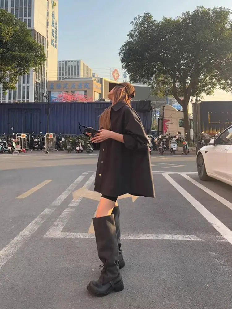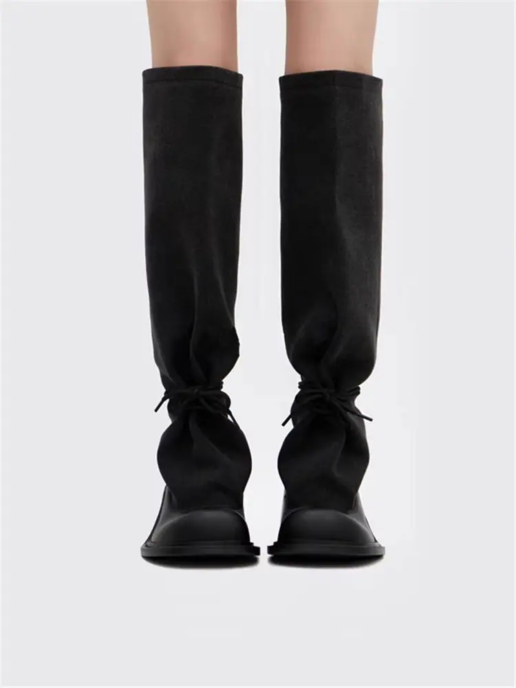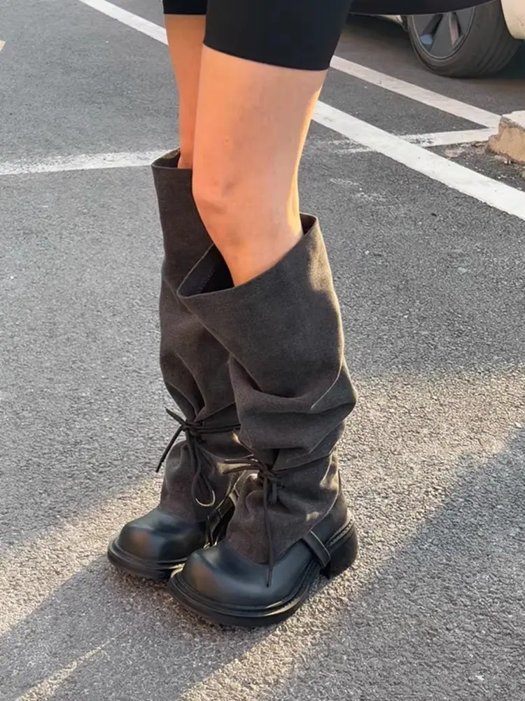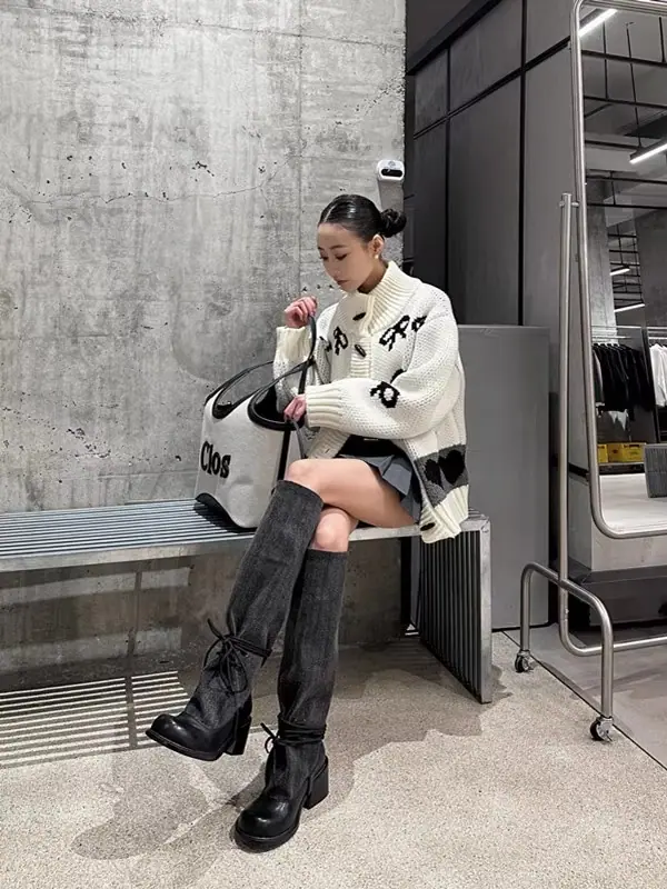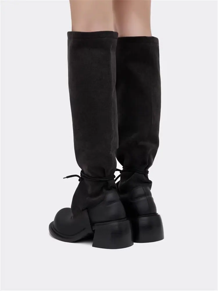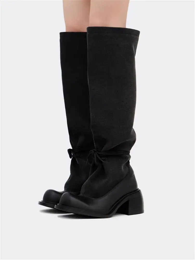 Botas de tacón alto grueso de nicho estilo páramo para mujer 2025 nuevas botas negras adelgazantes con cordones botas mosqueteras hasta la rodilla botas de moda de caballero
