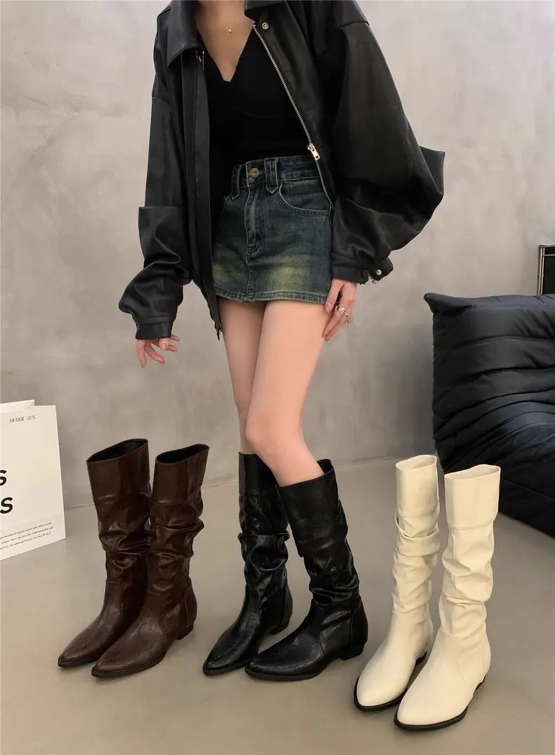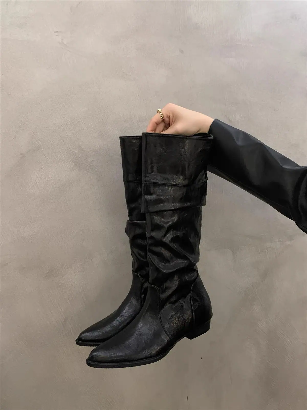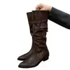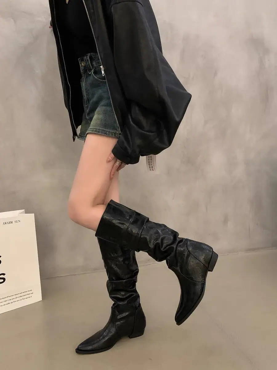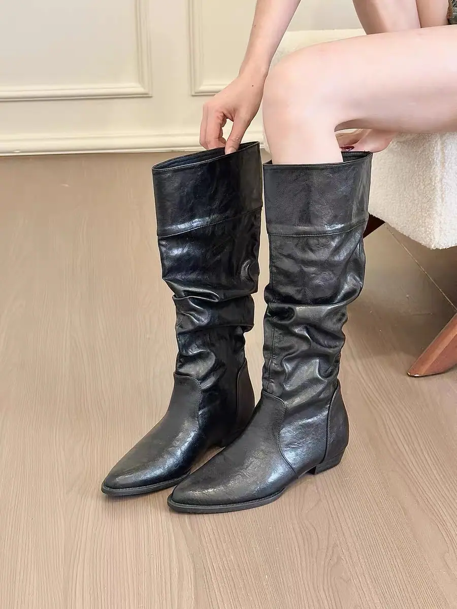 2025 nuevas botas slouchy de otoño e invierno para mujer, botas de tubo alto con aumento de altura interior, botas largas sobre la rodilla, punta cuadrada pequeña, botas de caballero versátiles