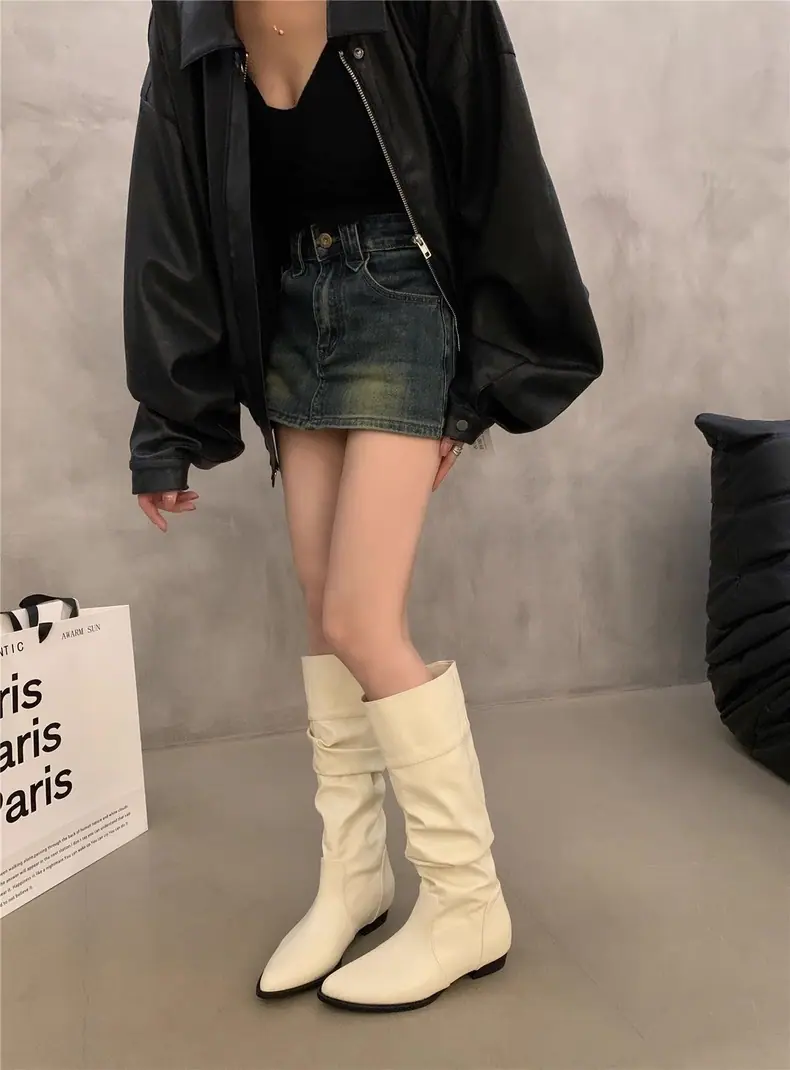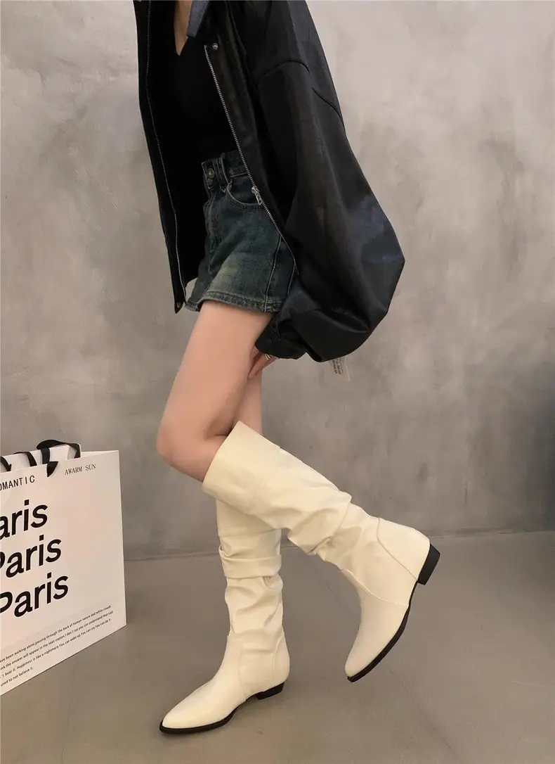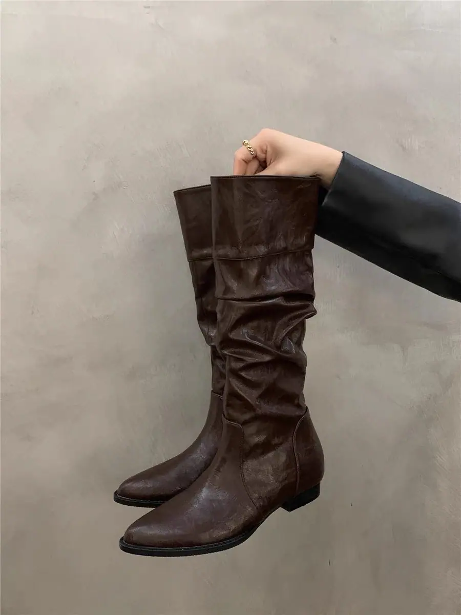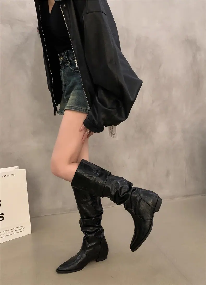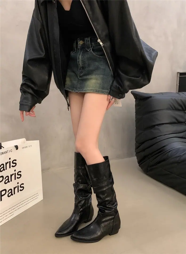 2025 nuevas botas slouchy de otoño e invierno para mujer, botas de tubo alto con aumento de altura interior, botas largas sobre la rodilla, punta cuadrada pequeña, botas de caballero versátiles