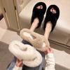 Pantuflas de Algodón Gruesas de Felpa de Nuevo Estilo, Talla Grande Cruz 2025 para Casa Otoño e Invierno Pantuflas de Moda para Mujer, Negro