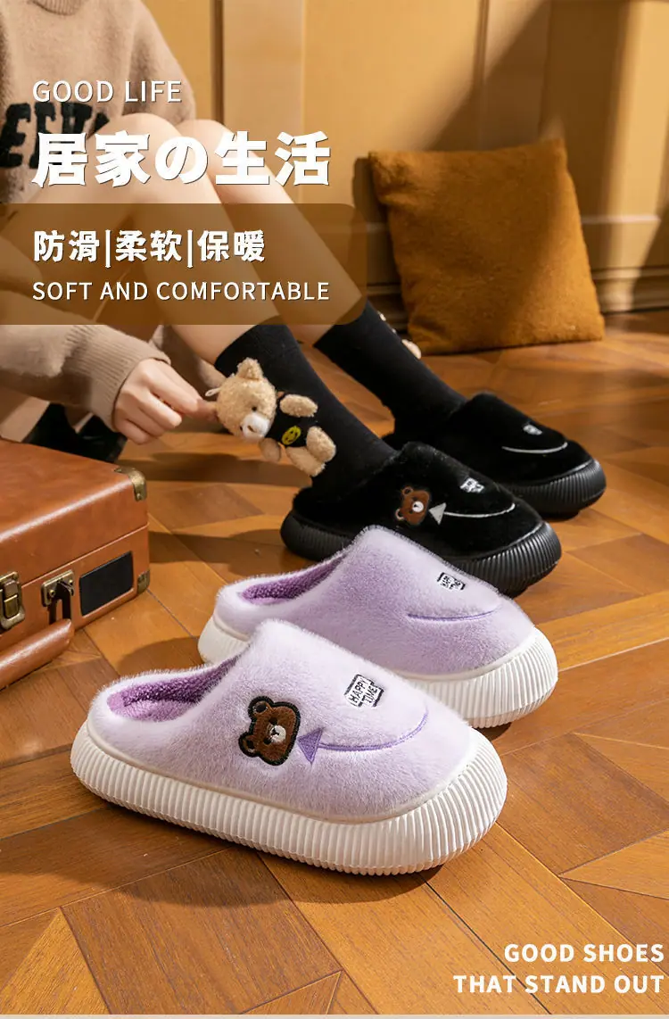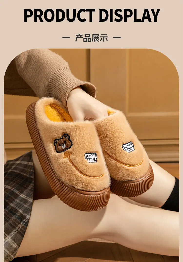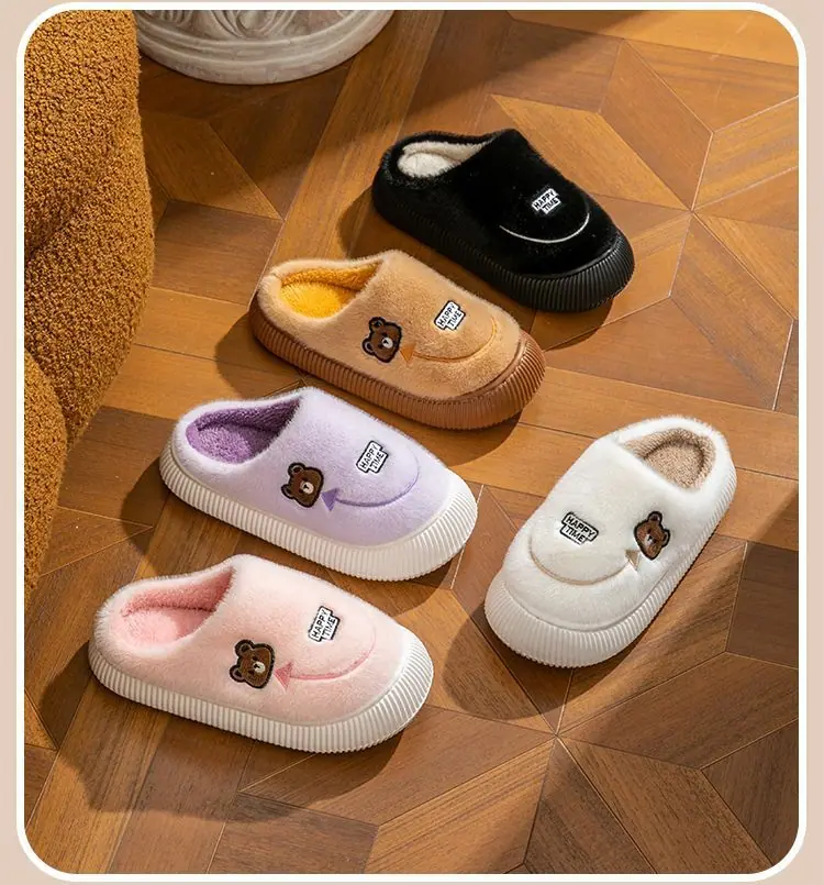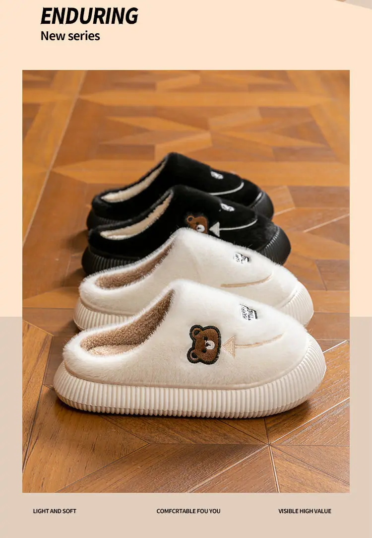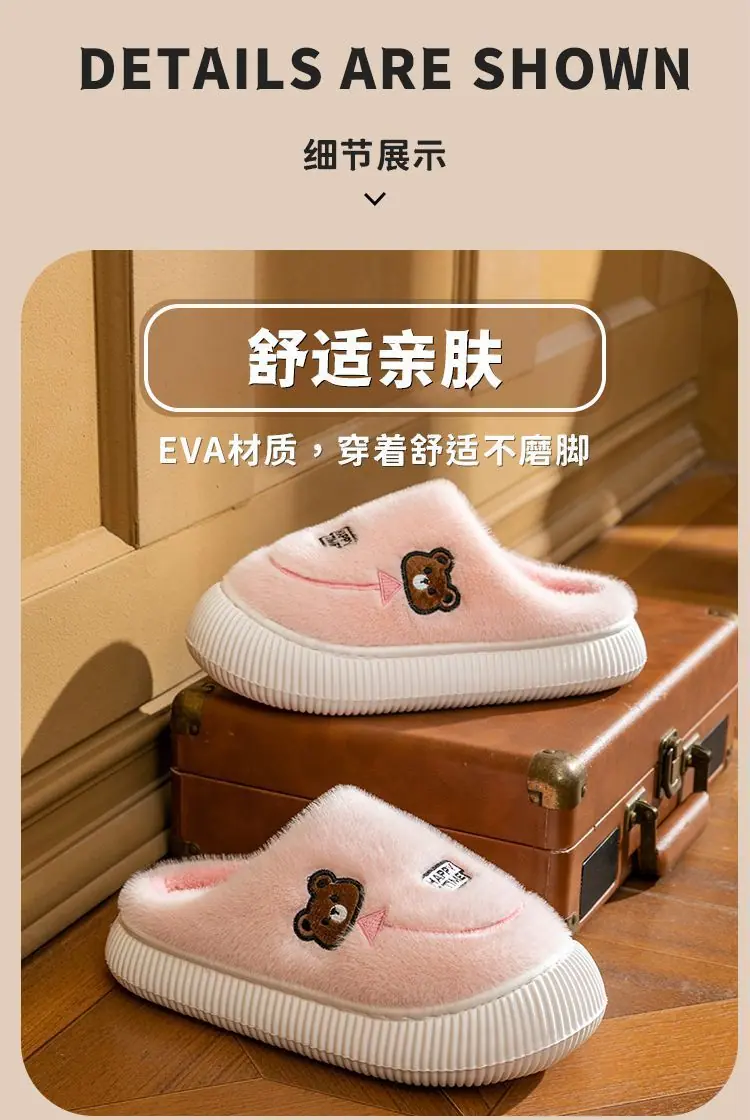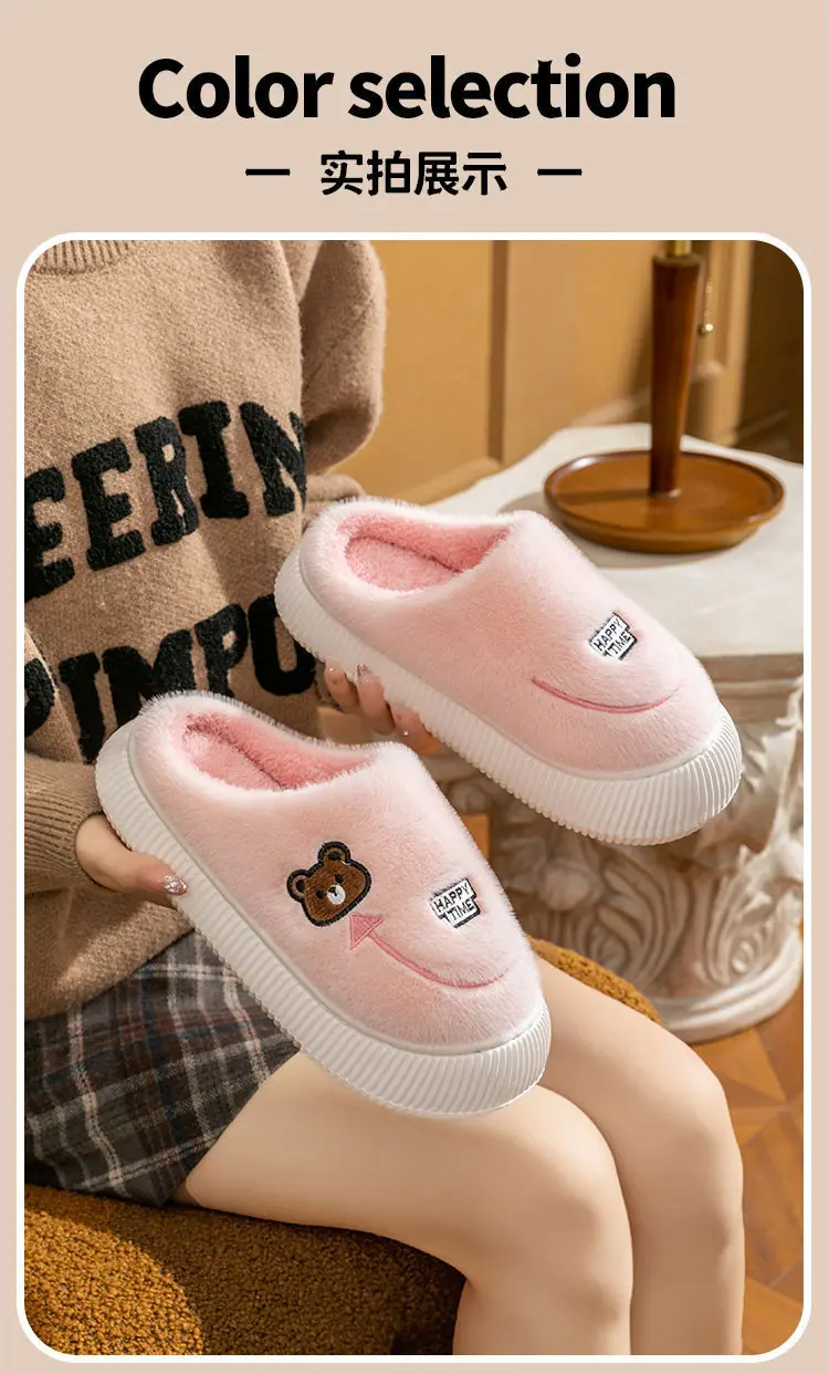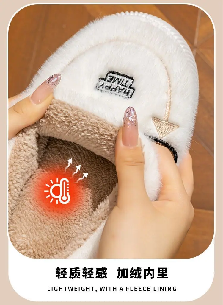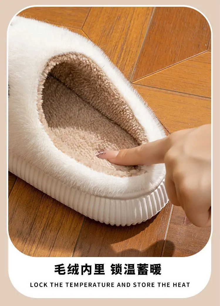 2025 Nuevas Pantuflas de Algodón de Felpa Cálida Antideslizante de Suela Gruesa para Interior de Otoño e Invierno para Mujer