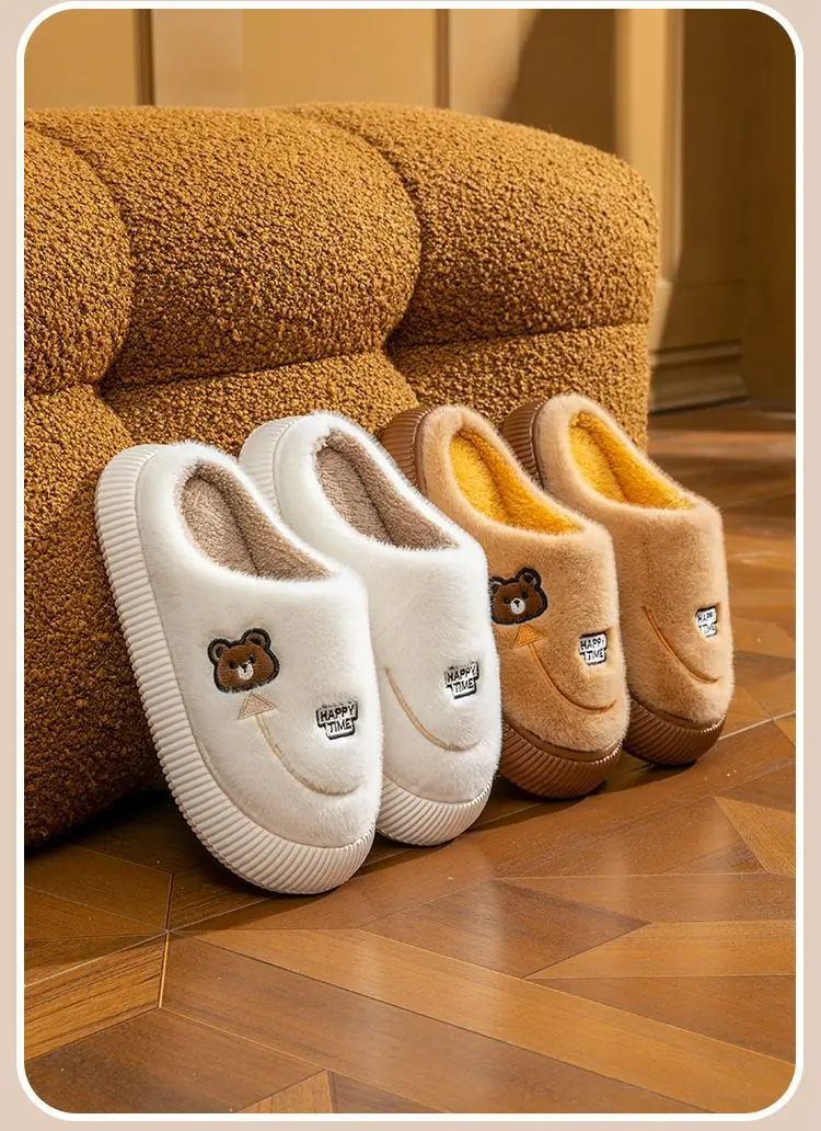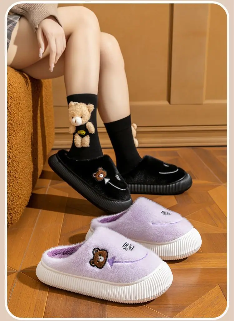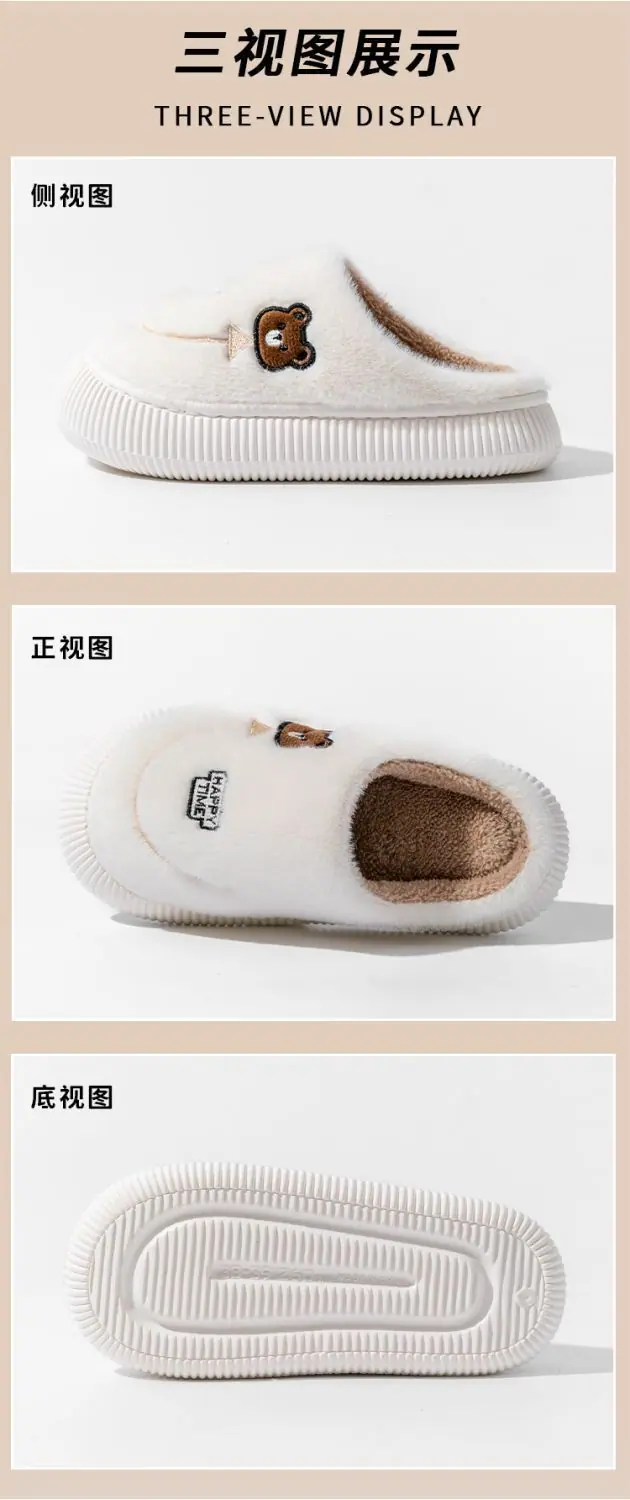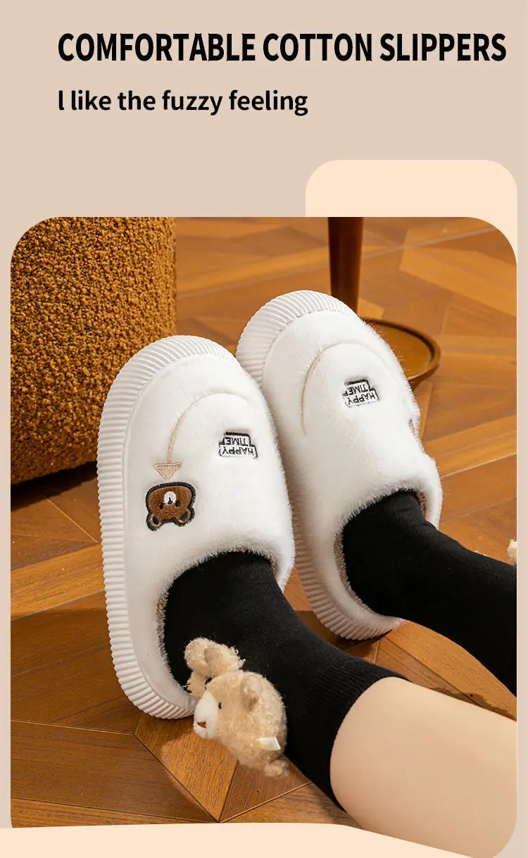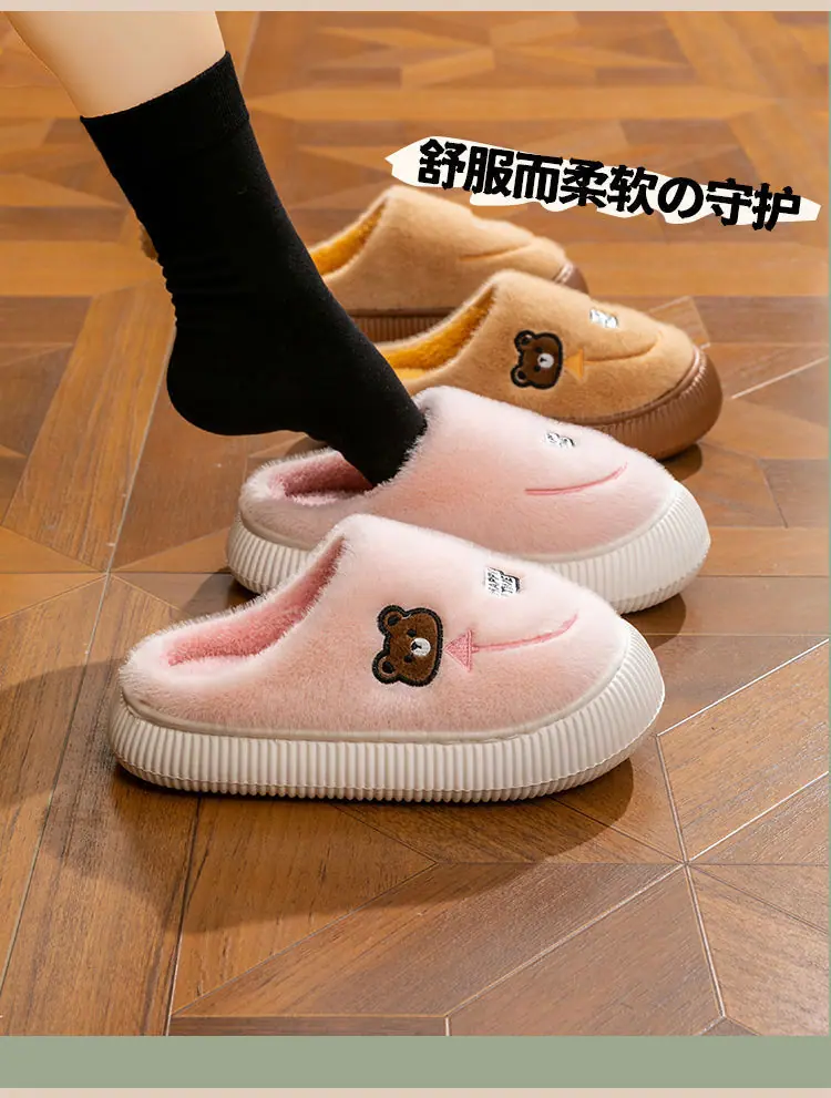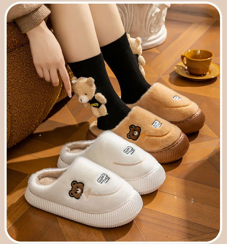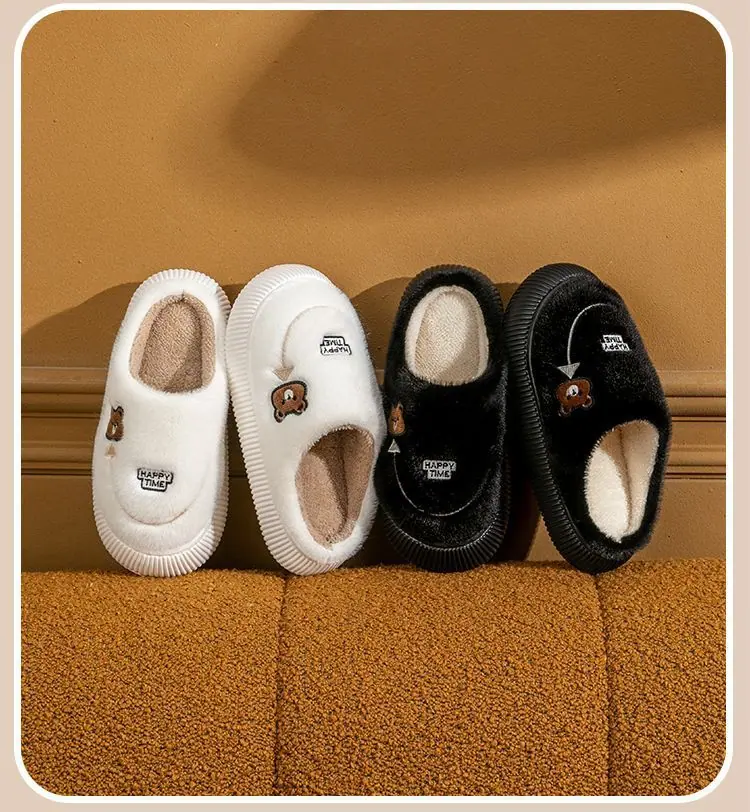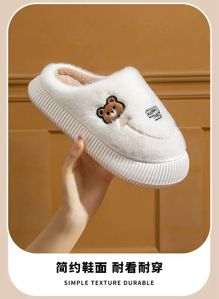 2025 Nuevas Pantuflas de Algodón de Felpa Cálida Antideslizante de Suela Gruesa para Interior de Otoño e Invierno para Mujer