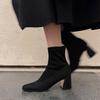 Botas Elásticas Ajustadas Elegantes Nuevas Otoño e Invierno de 7cm Estilo Coreano Modernas Versátiles Punta Cuadrada Tacón Grueso de Una Pierna Botines de Tacón Alto