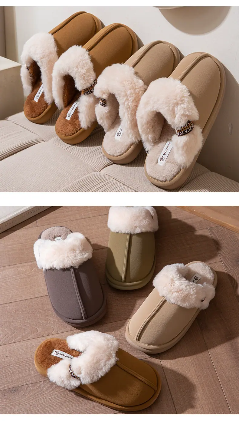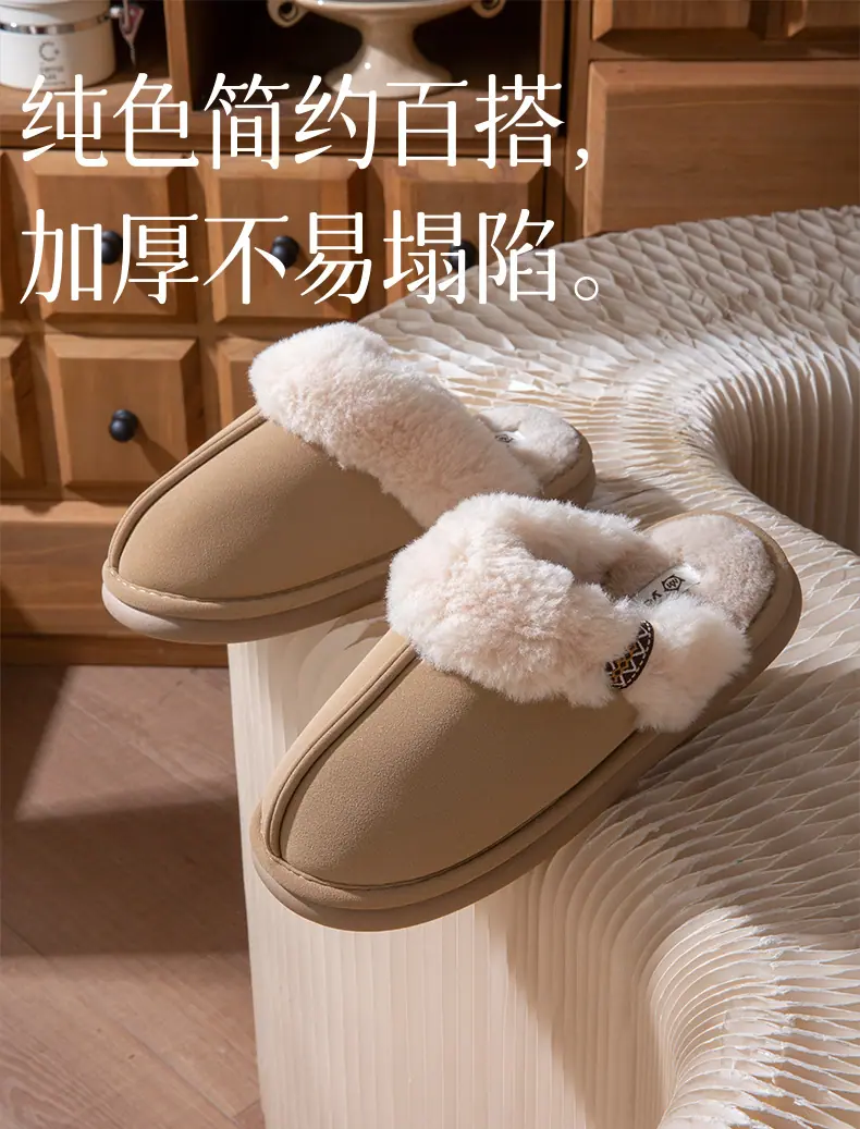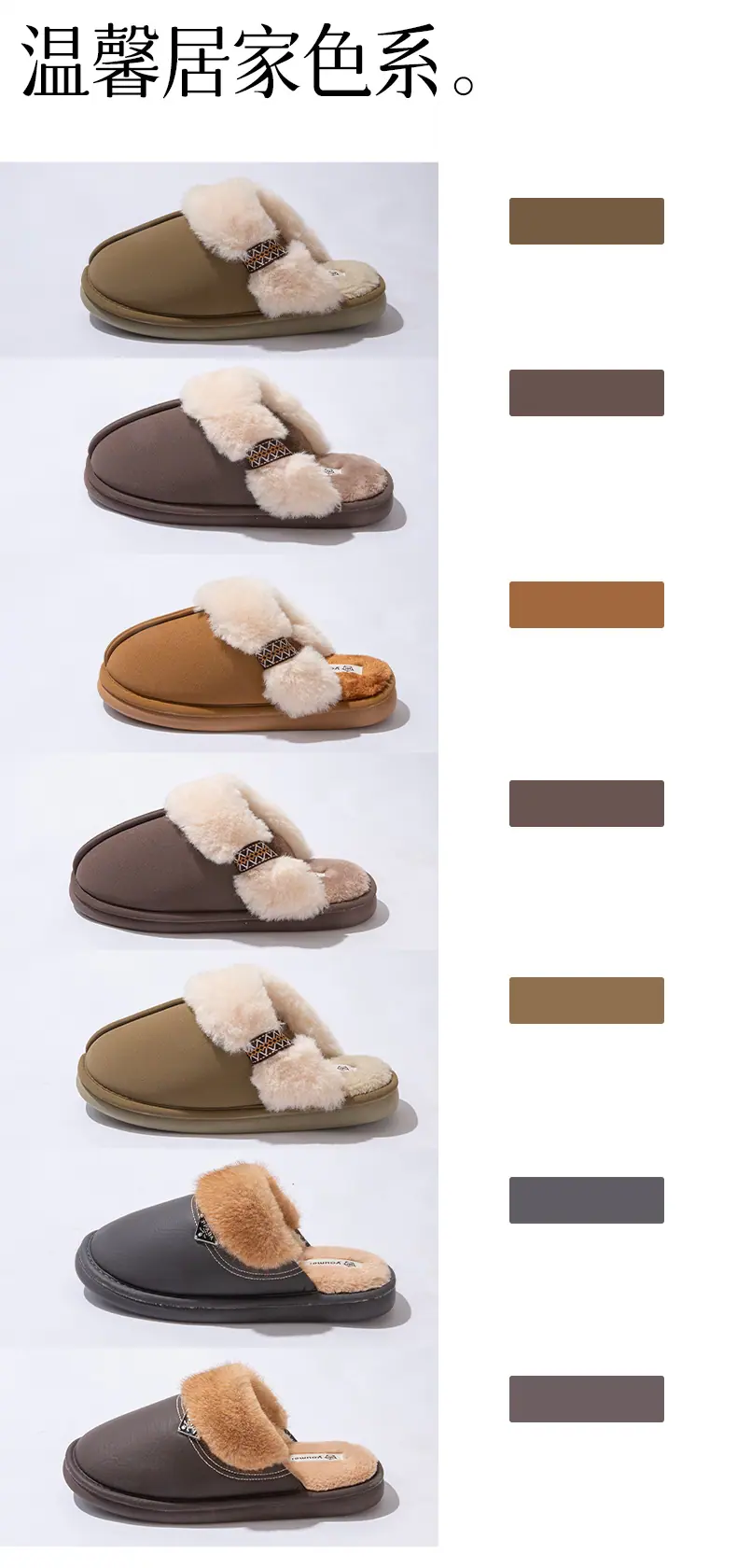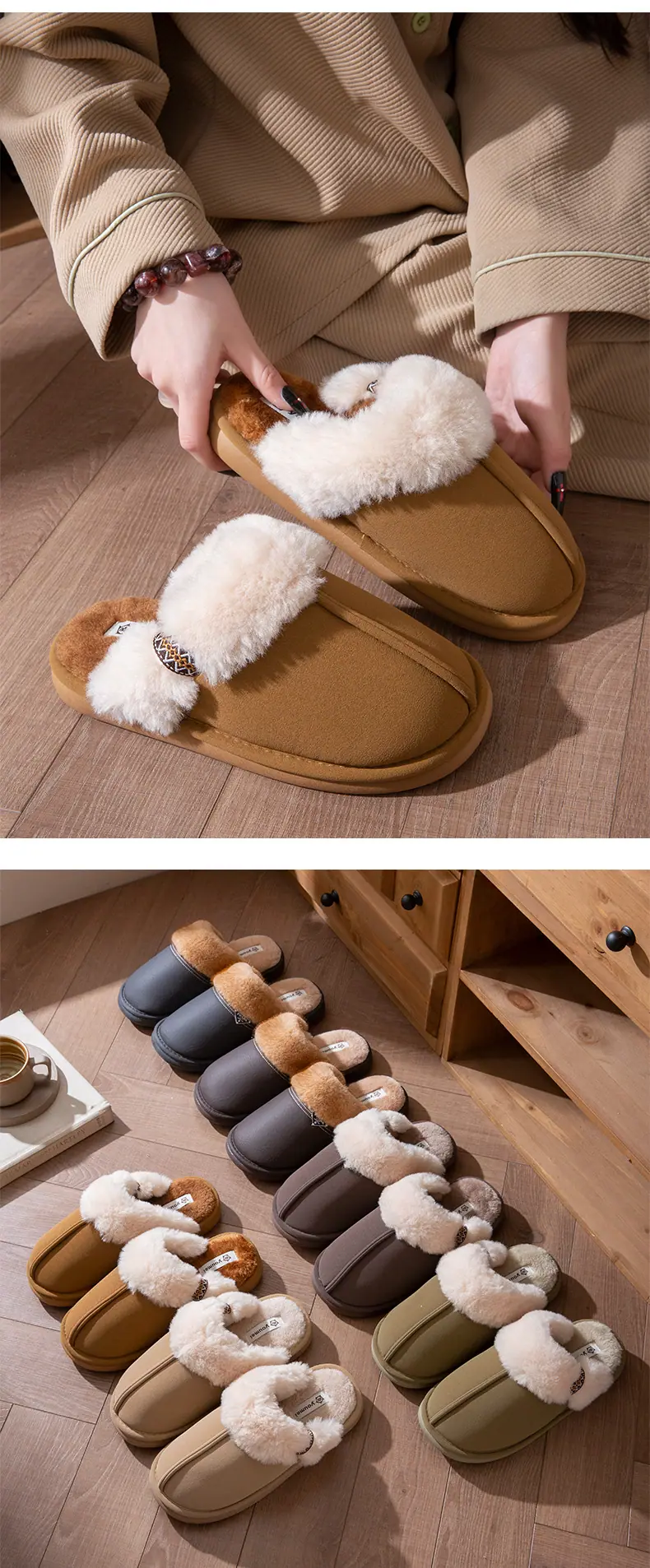 Pantuflas de Algodón para Mujer Otoño Invierno 2025 Nuevas Cálidas Felpa Interior Hogar Suela Gruesa Antideslizante Exterior Pantuflas Peludas para Hombre