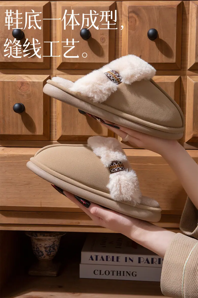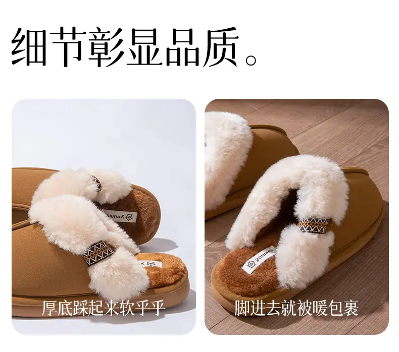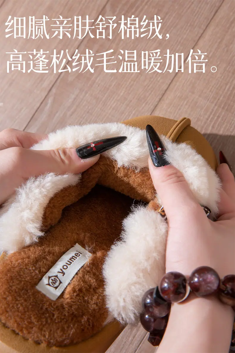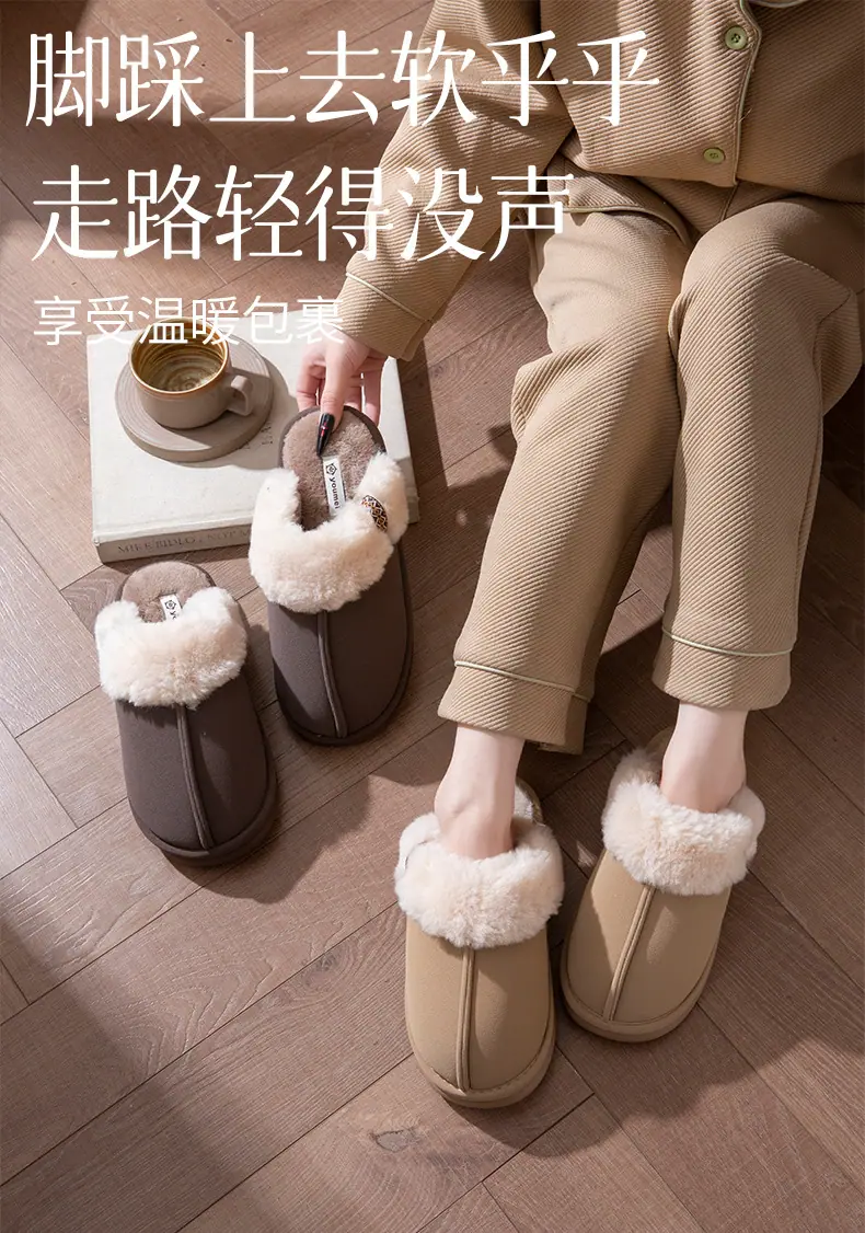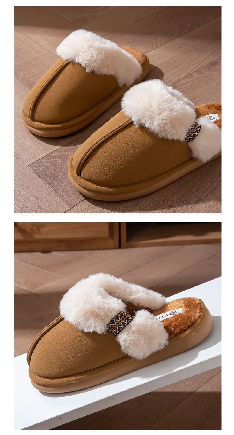 Pantuflas de Algodón para Mujer Otoño Invierno 2025 Nuevas Cálidas Felpa Interior Hogar Suela Gruesa Antideslizante Exterior Pantuflas Peludas para Hombre