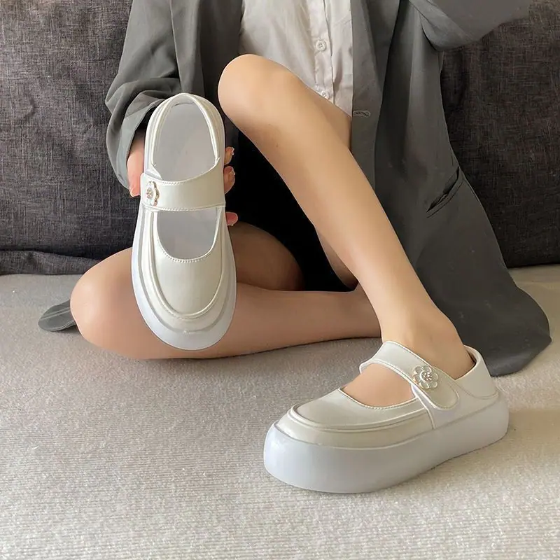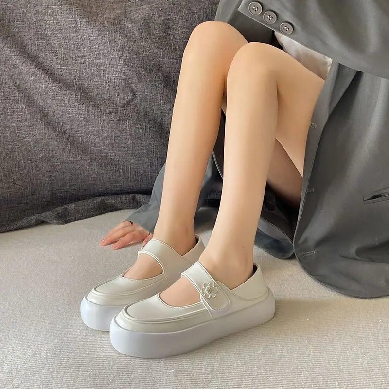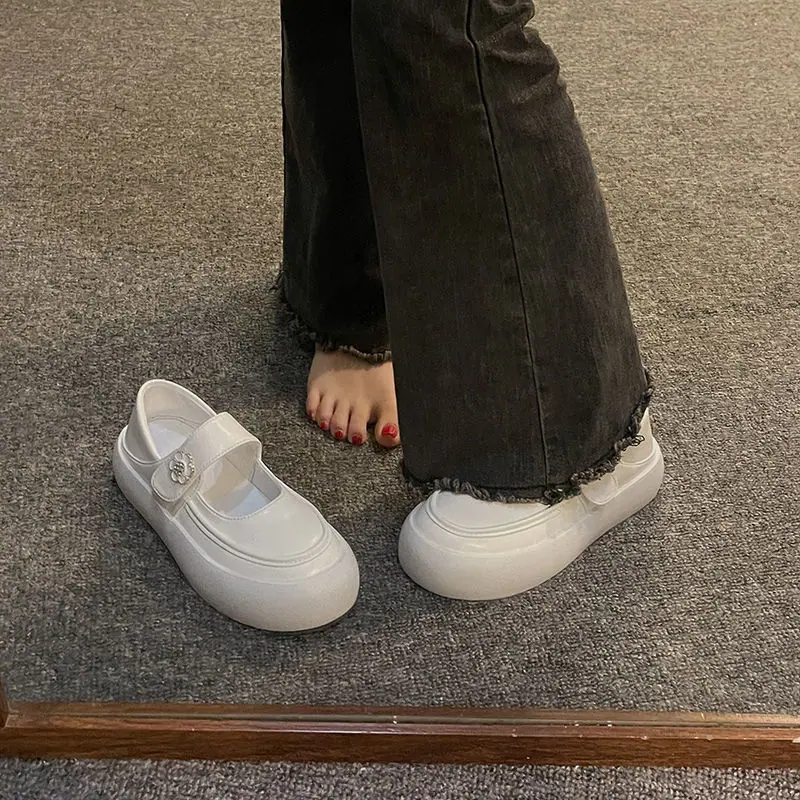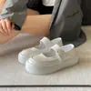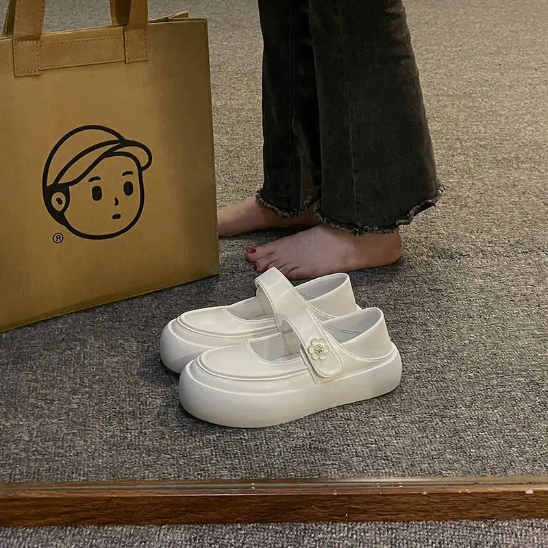 Pies zapatos individuales zapatos blancos de suela gruesa mujeres primavera verano cansados versátiles zapatos de cuero pequeños 2025 transpirables zapatos de enfermera no