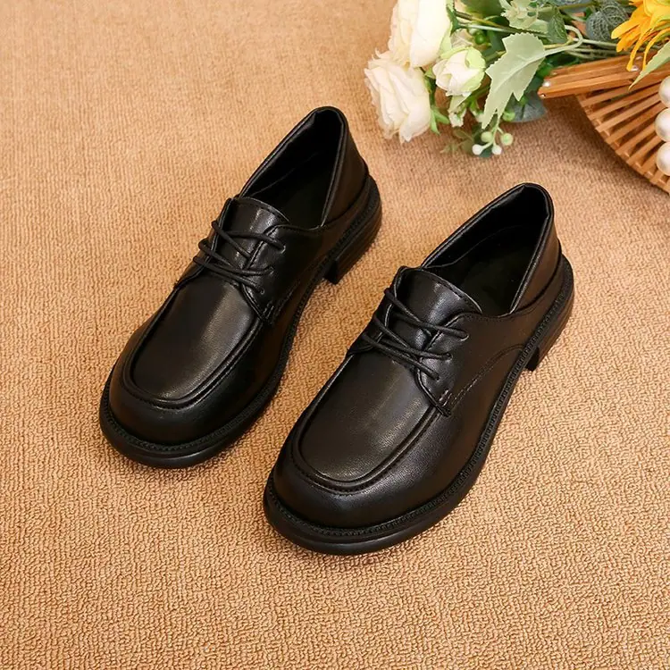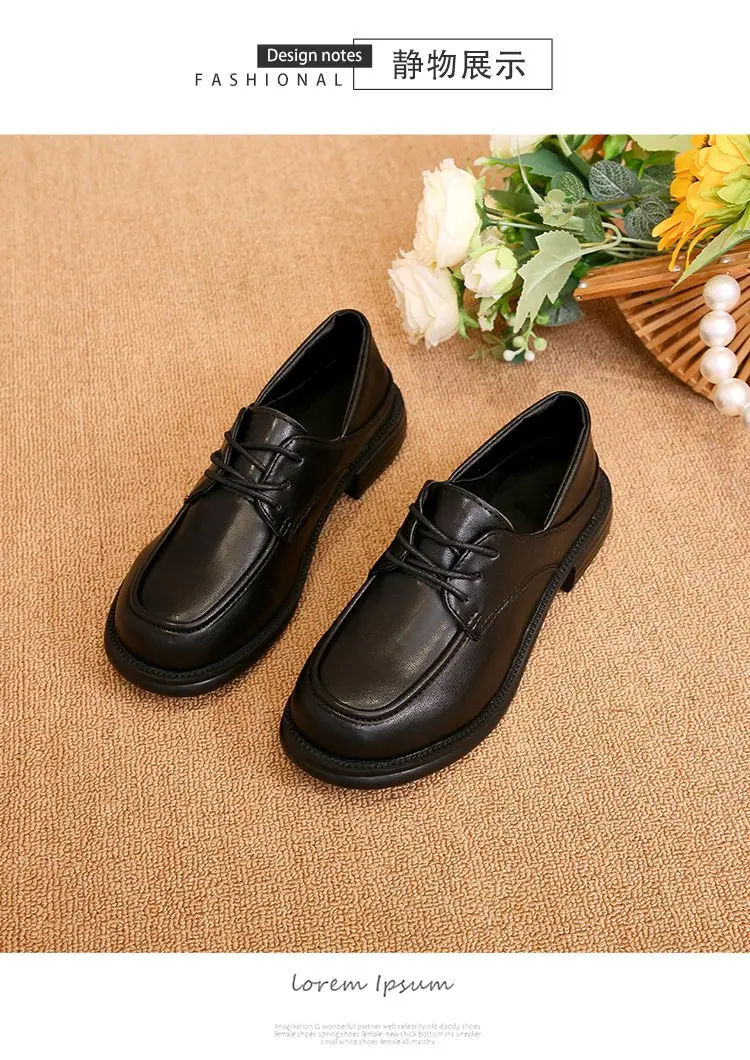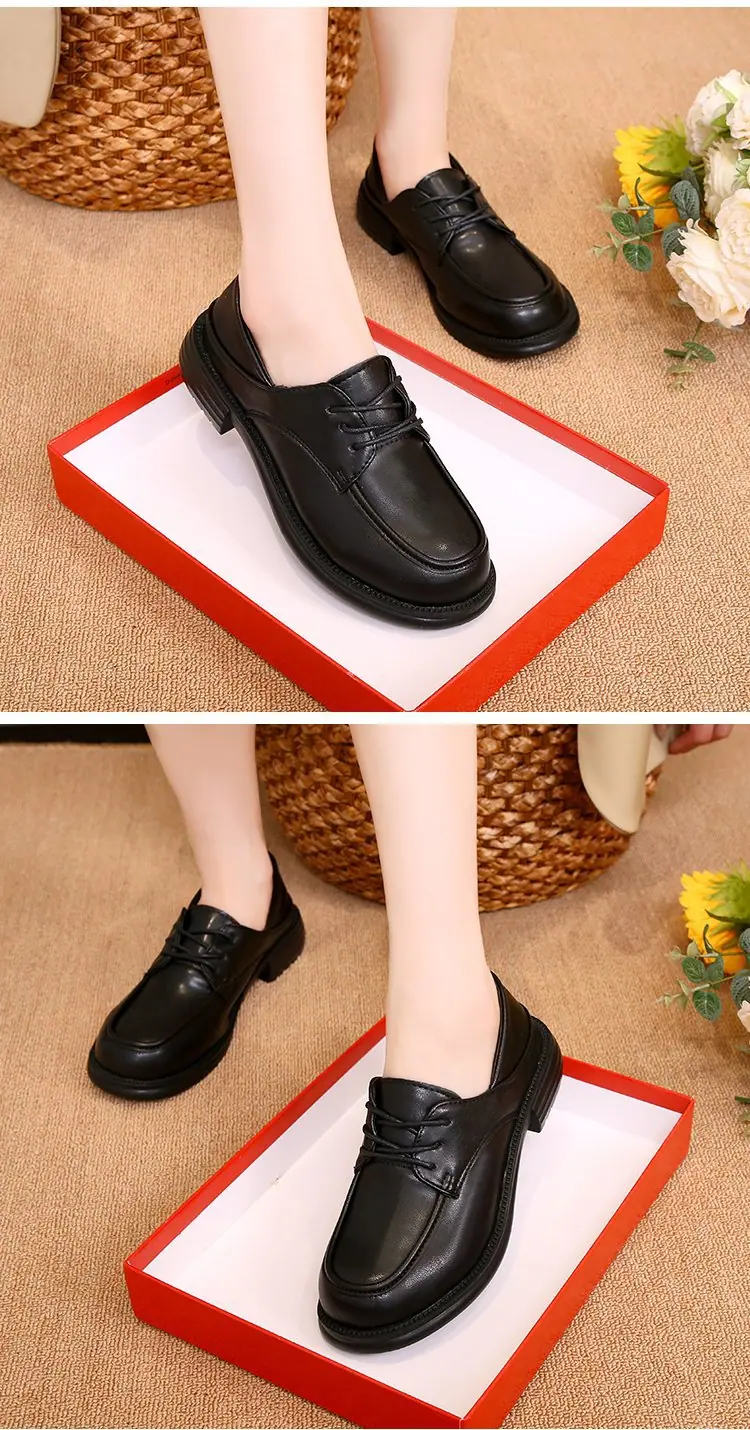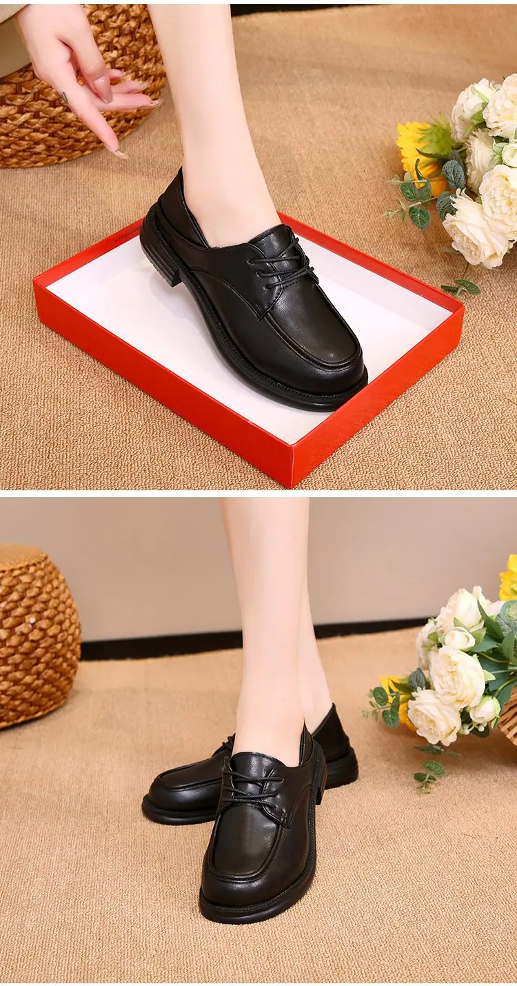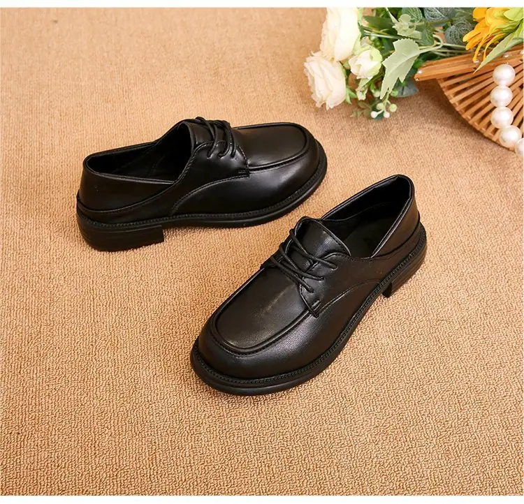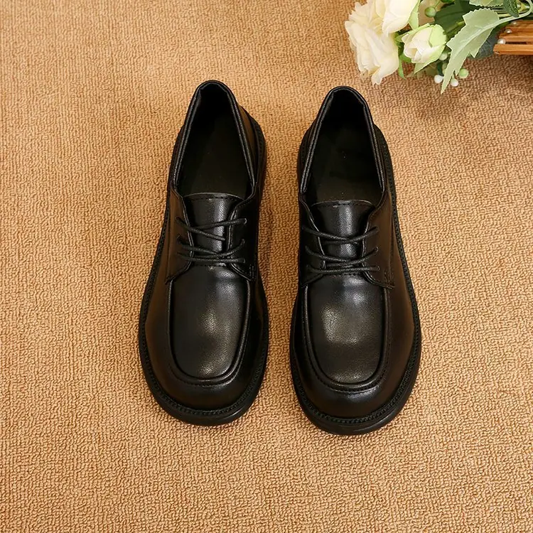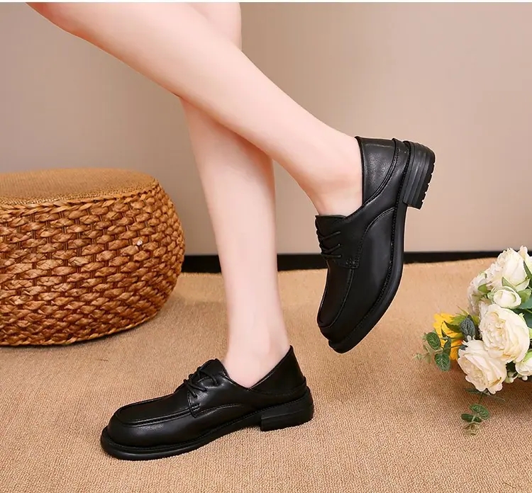 2025 nuevos zapatos individuales con cordones zapatos planos británicos de otoño para mujer mocasines casuales zapatos de cuero versátiles zapatos de trabajo suela blanda