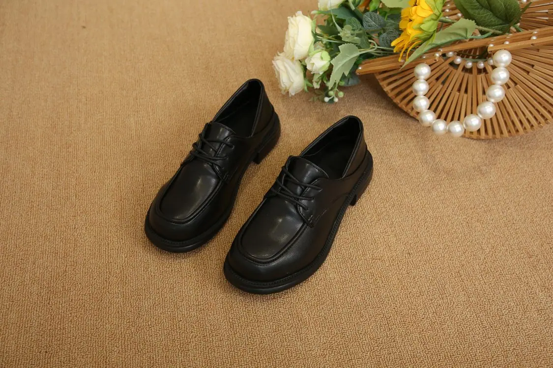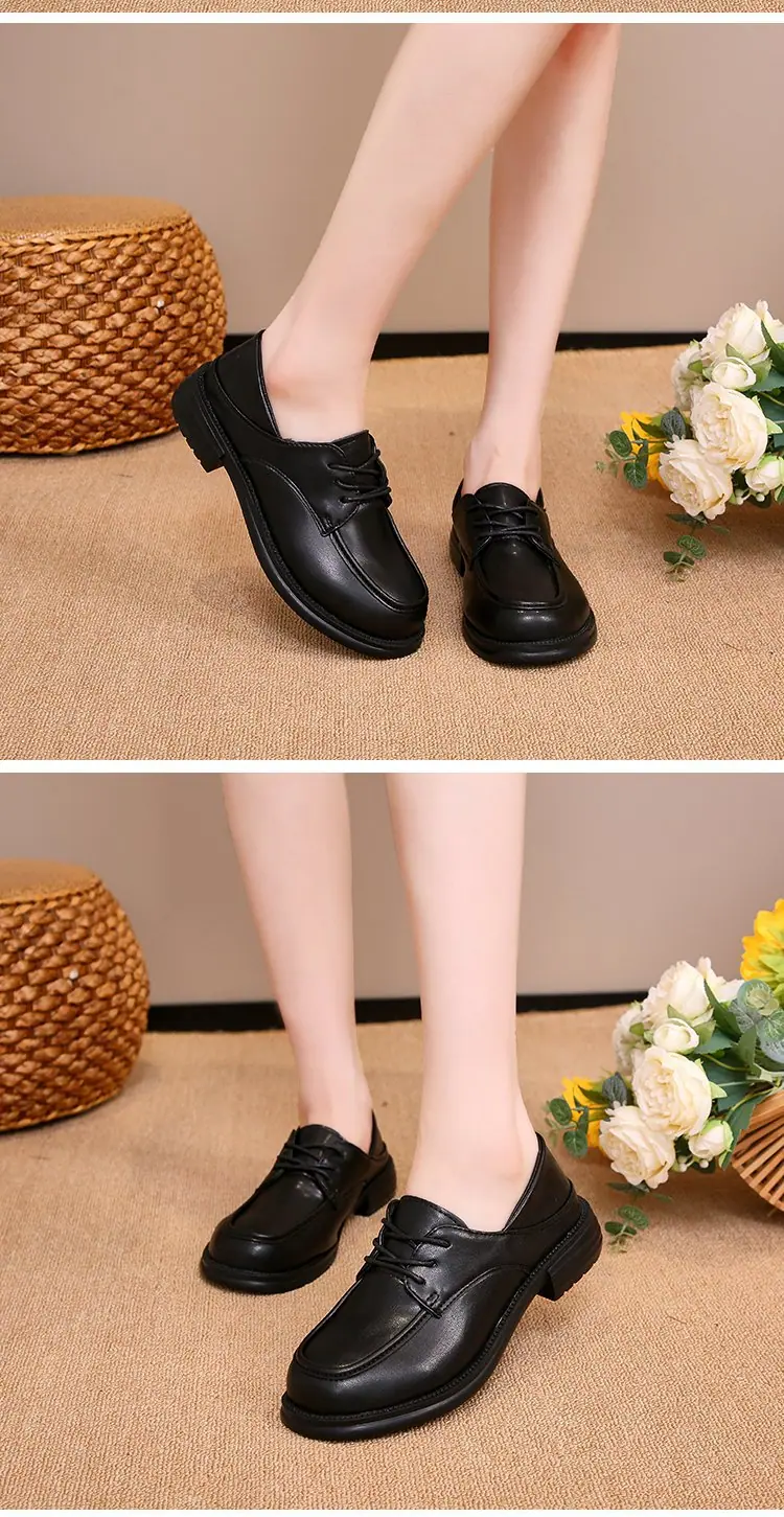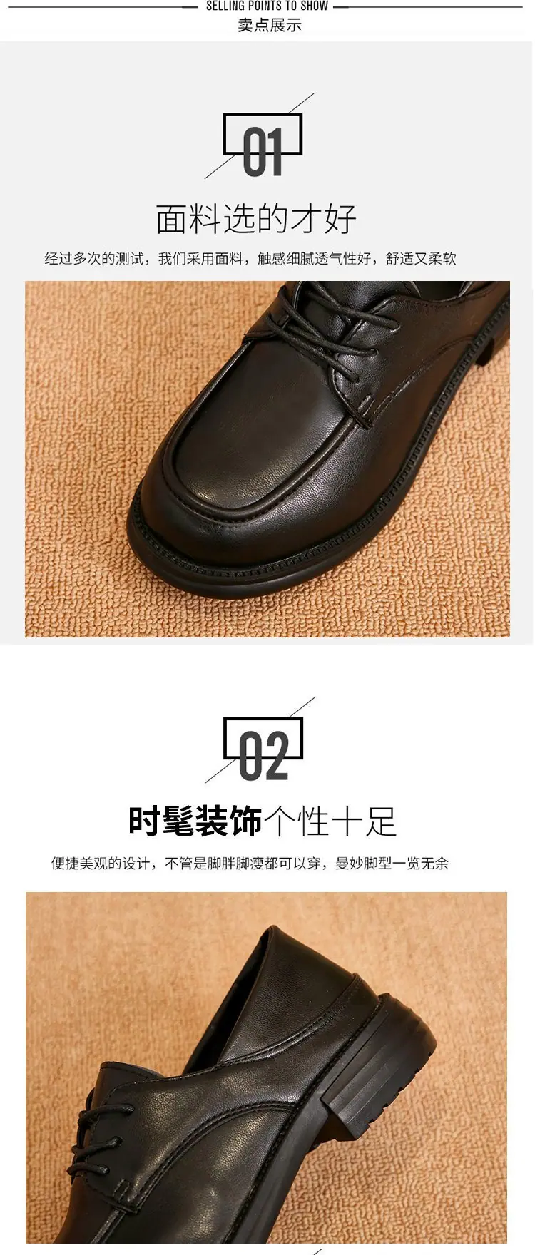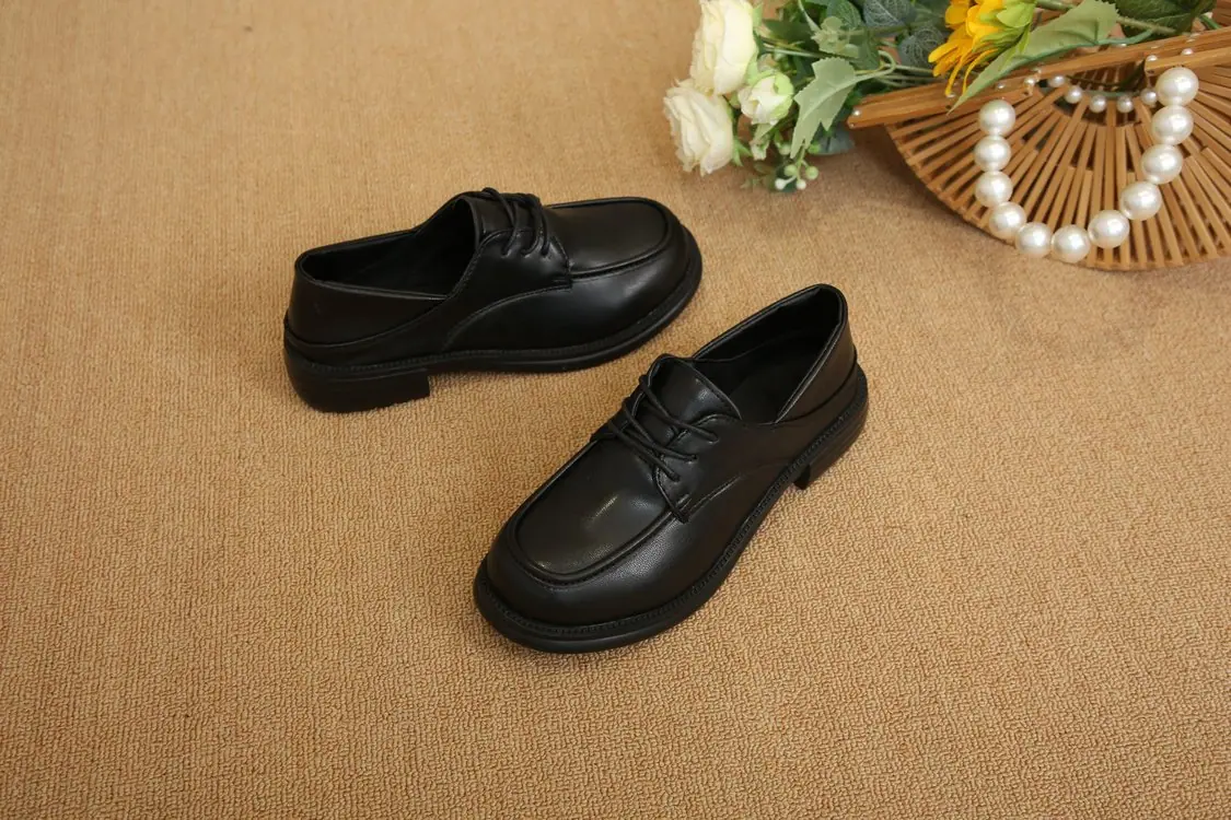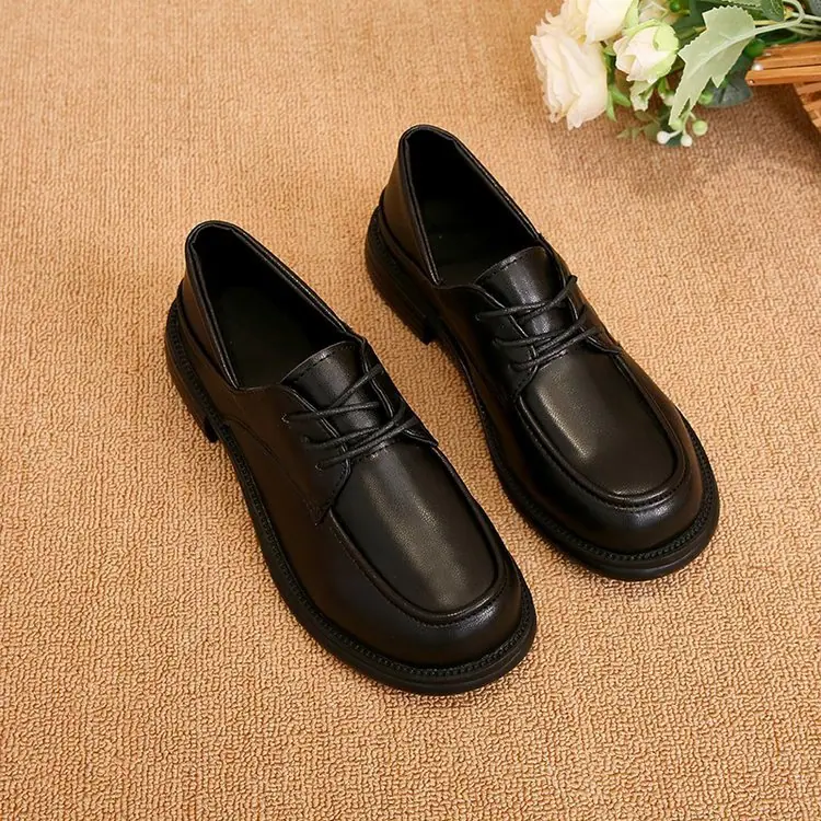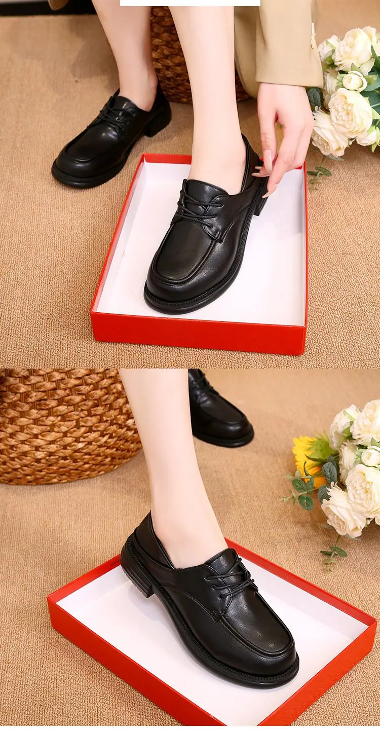 2025 nuevos zapatos individuales con cordones zapatos planos británicos de otoño para mujer mocasines casuales zapatos de cuero versátiles zapatos de trabajo suela blanda