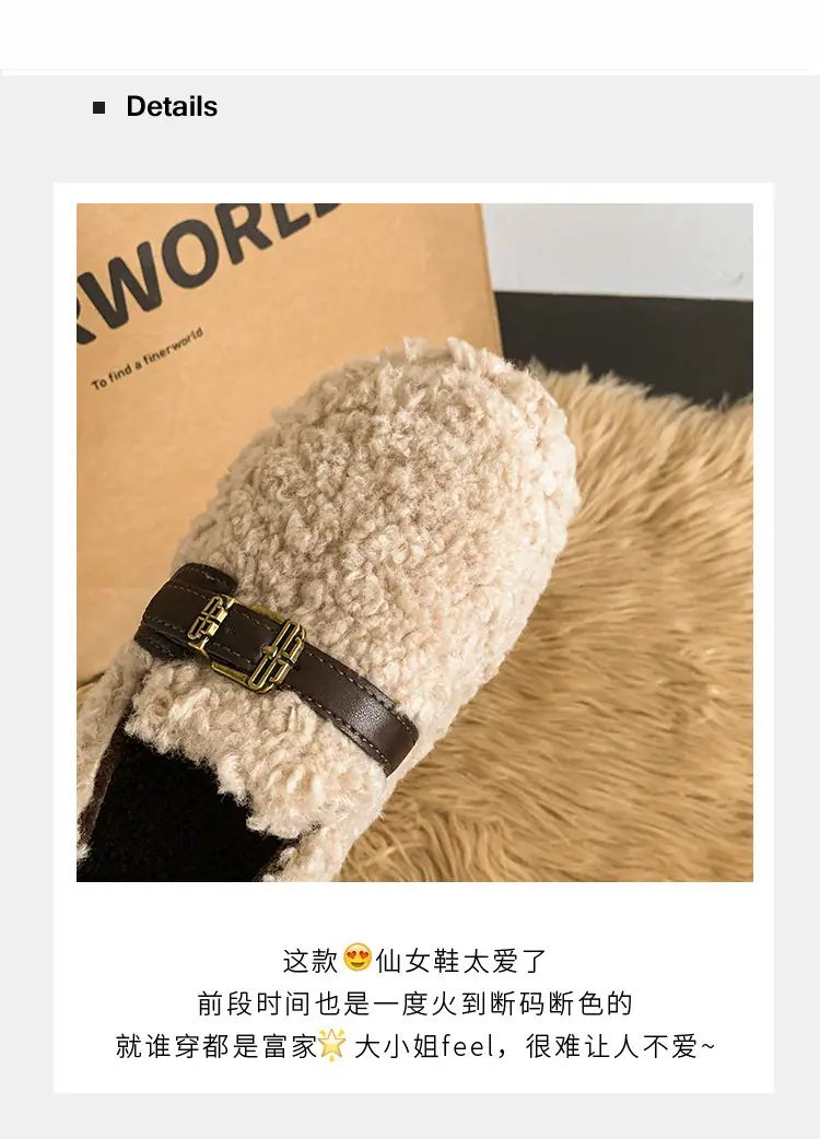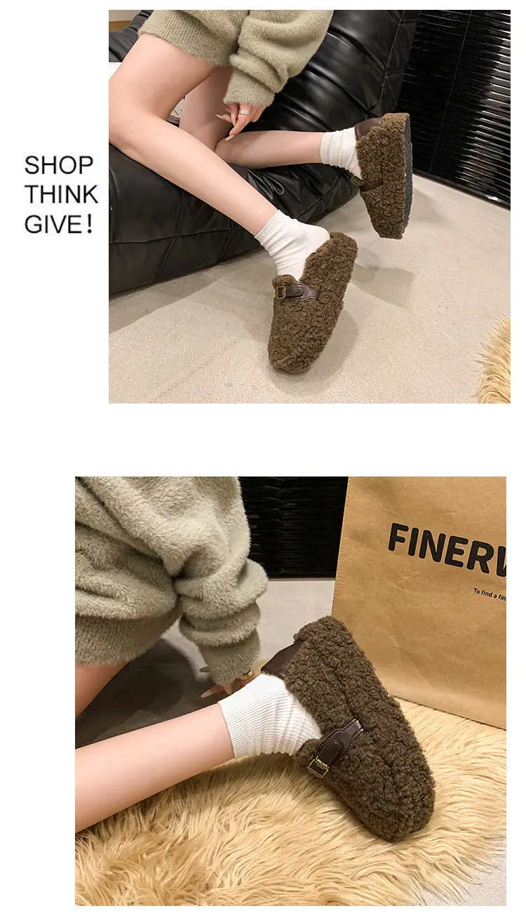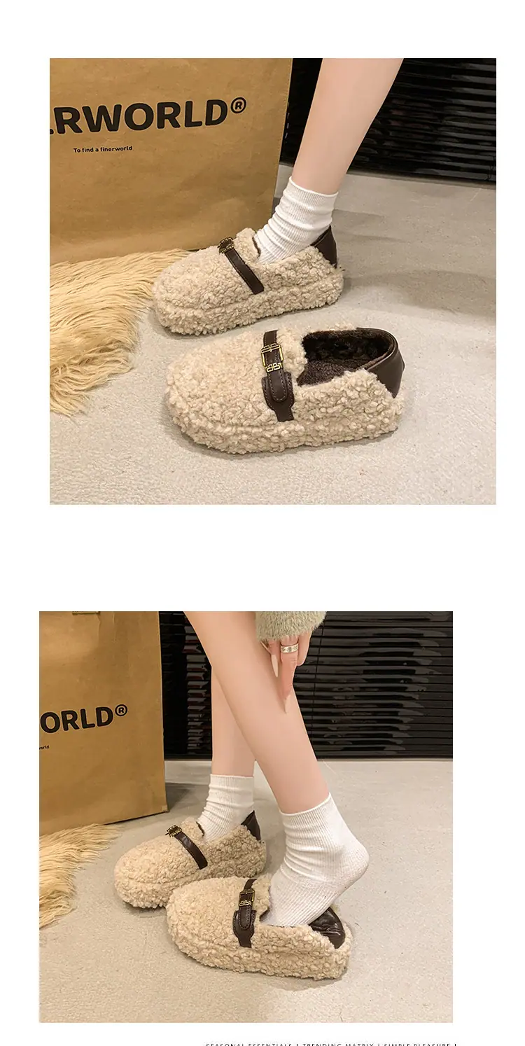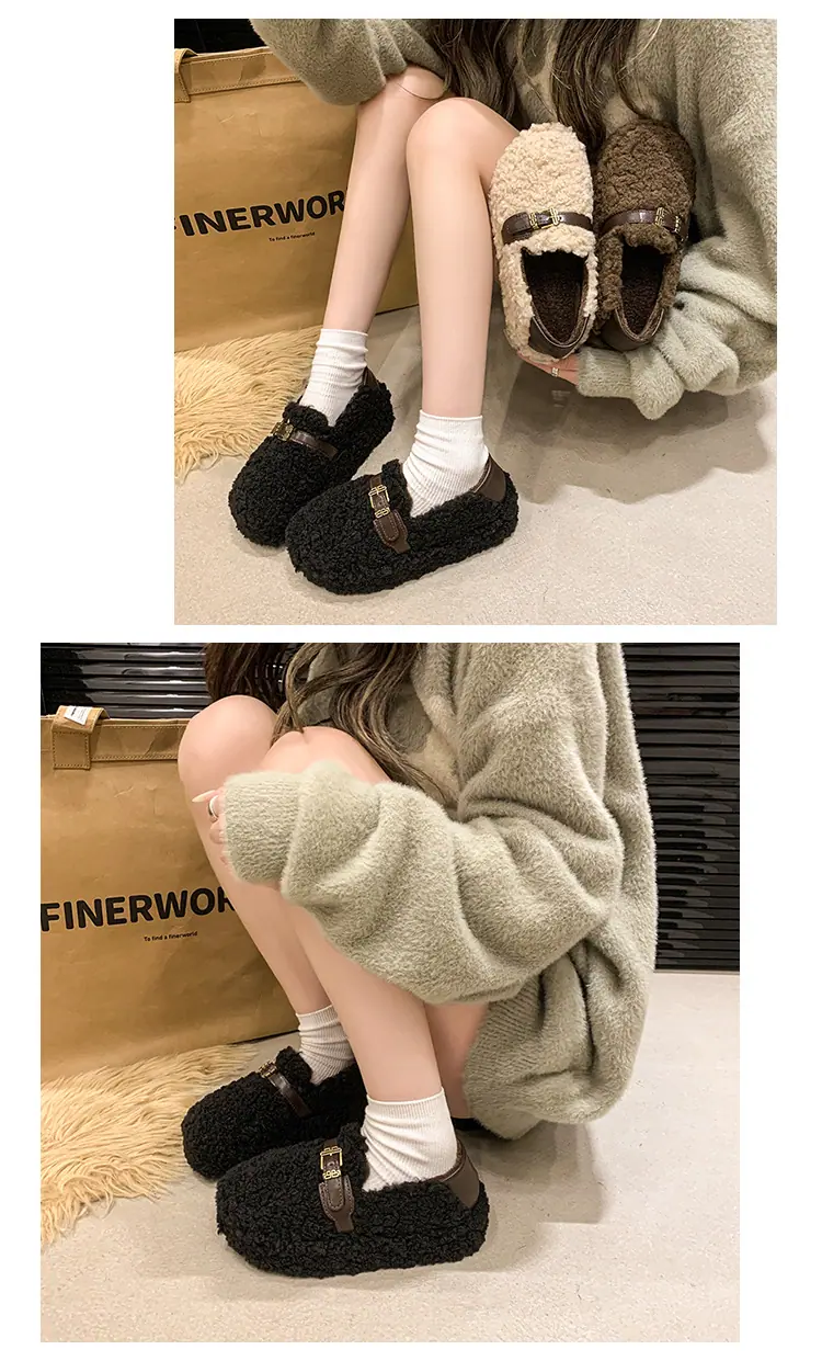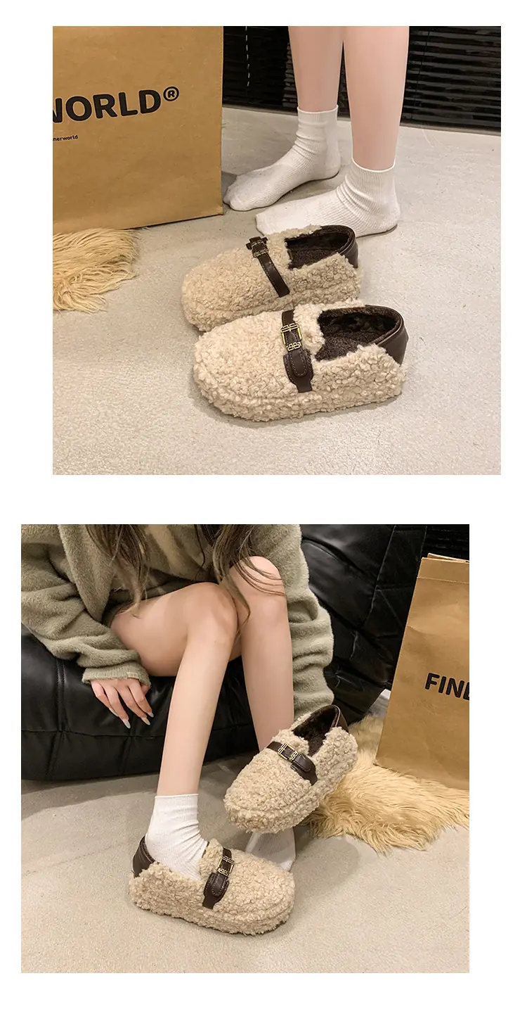 Pantuflas Peludas Retro de Suela Gruesa para Mujer Ropa de Exterior 2025 Otoño/Invierno Estilo Coreano Cómodas Pantuflas de Pelo Rizado de Una Tira Pantuflas de Algodón Zapatos de Mujer