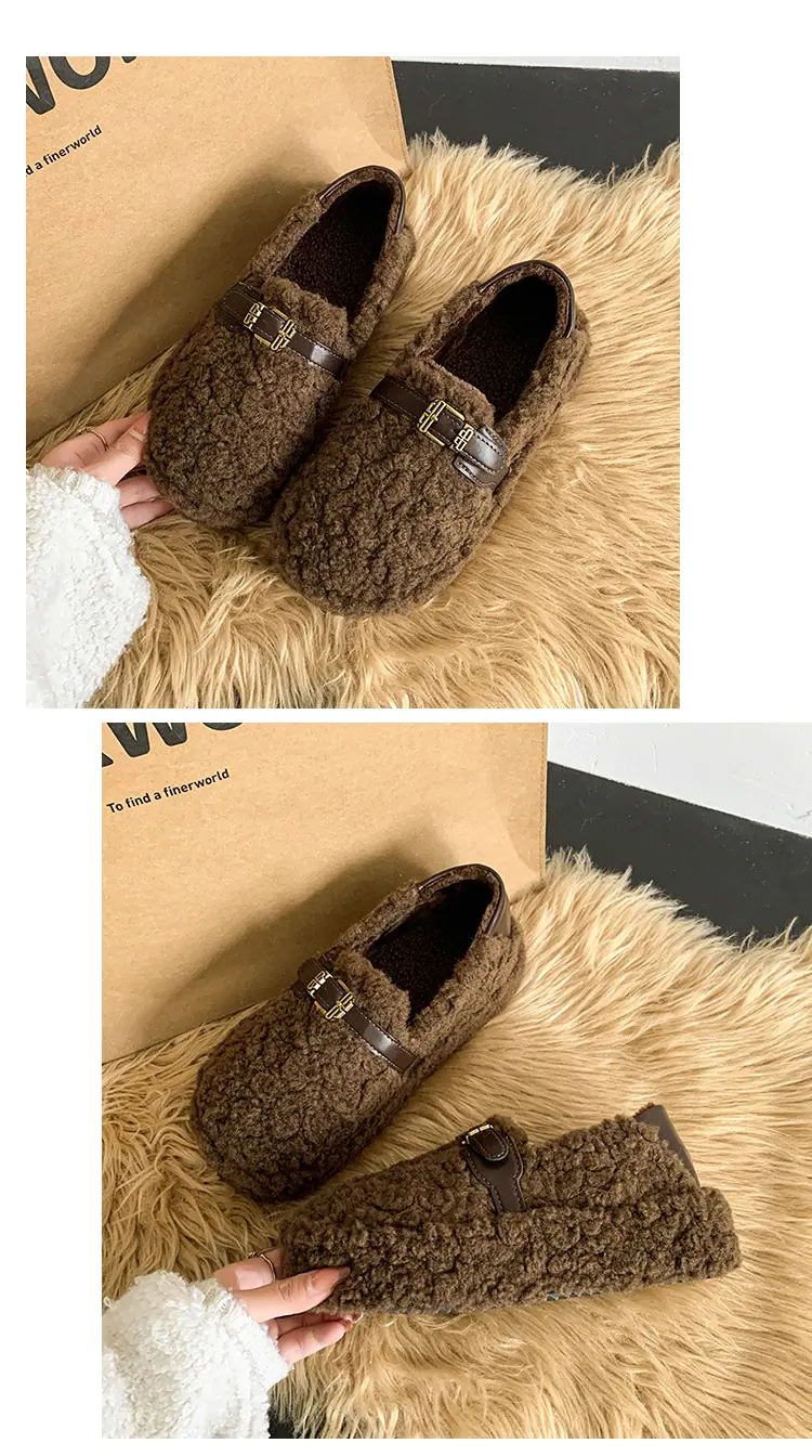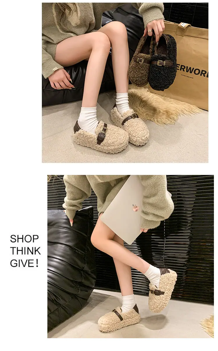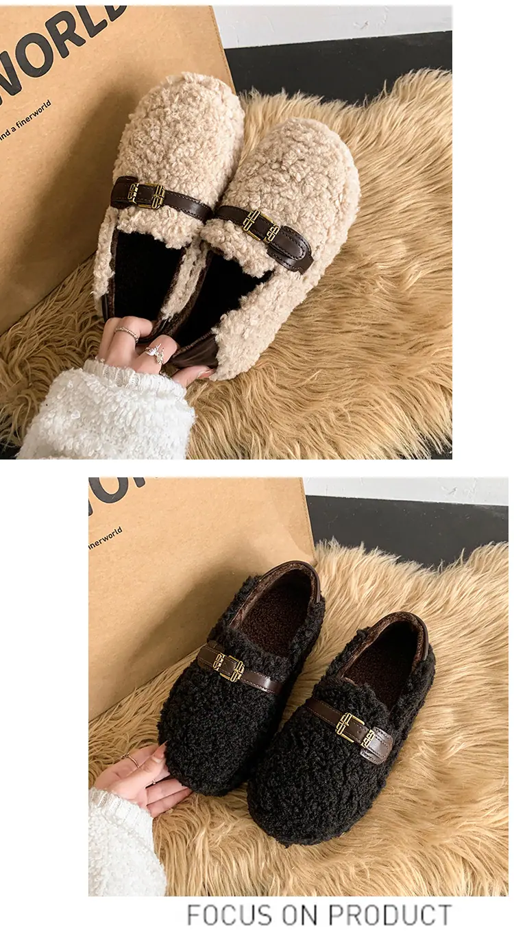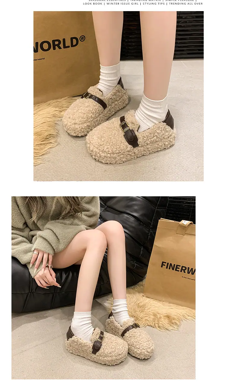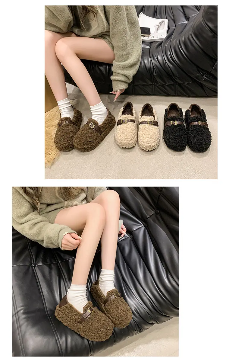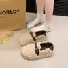 Pantuflas Peludas Retro de Suela Gruesa para Mujer Ropa de Exterior 2025 Otoño/Invierno Estilo Coreano Cómodas Pantuflas de Pelo Rizado de Una Tira Pantuflas de Algodón Zapatos de Mujer
