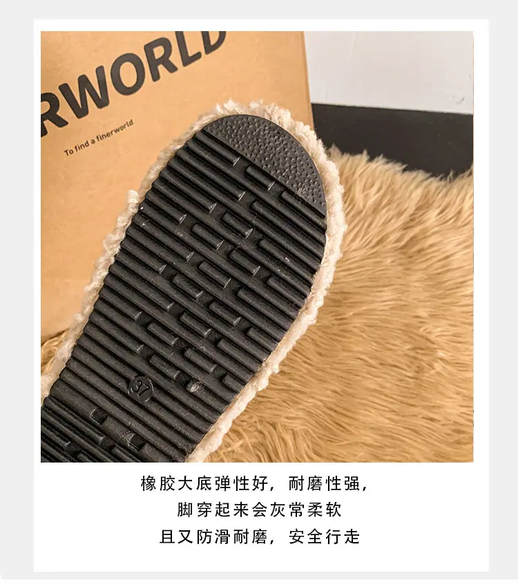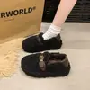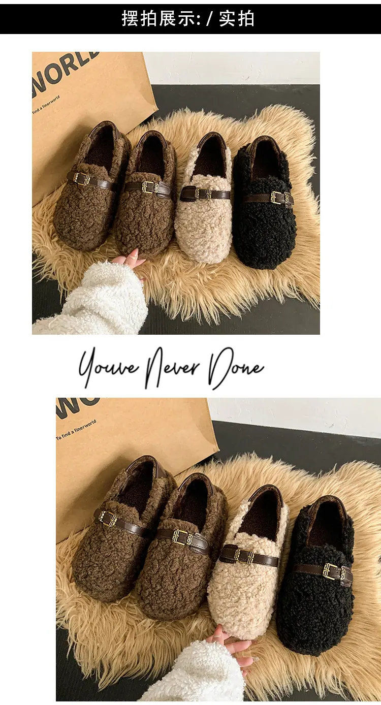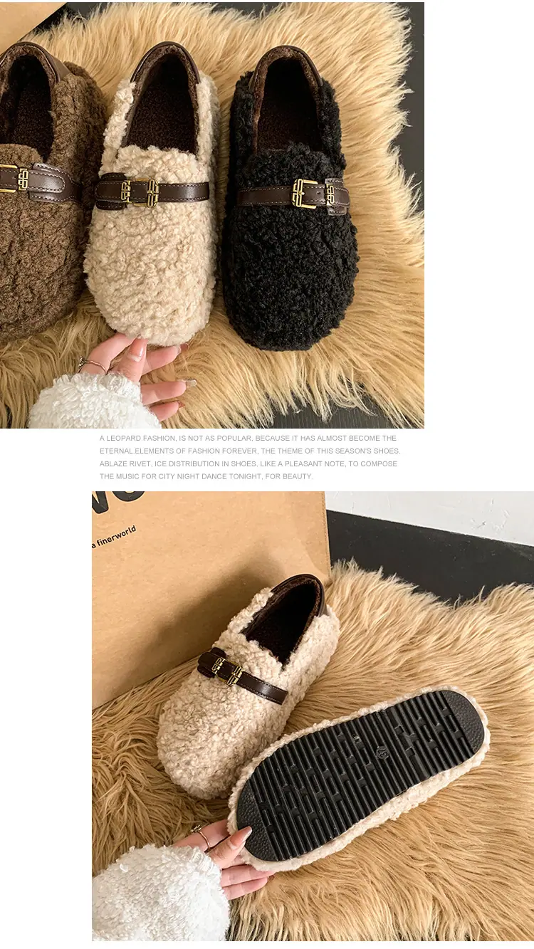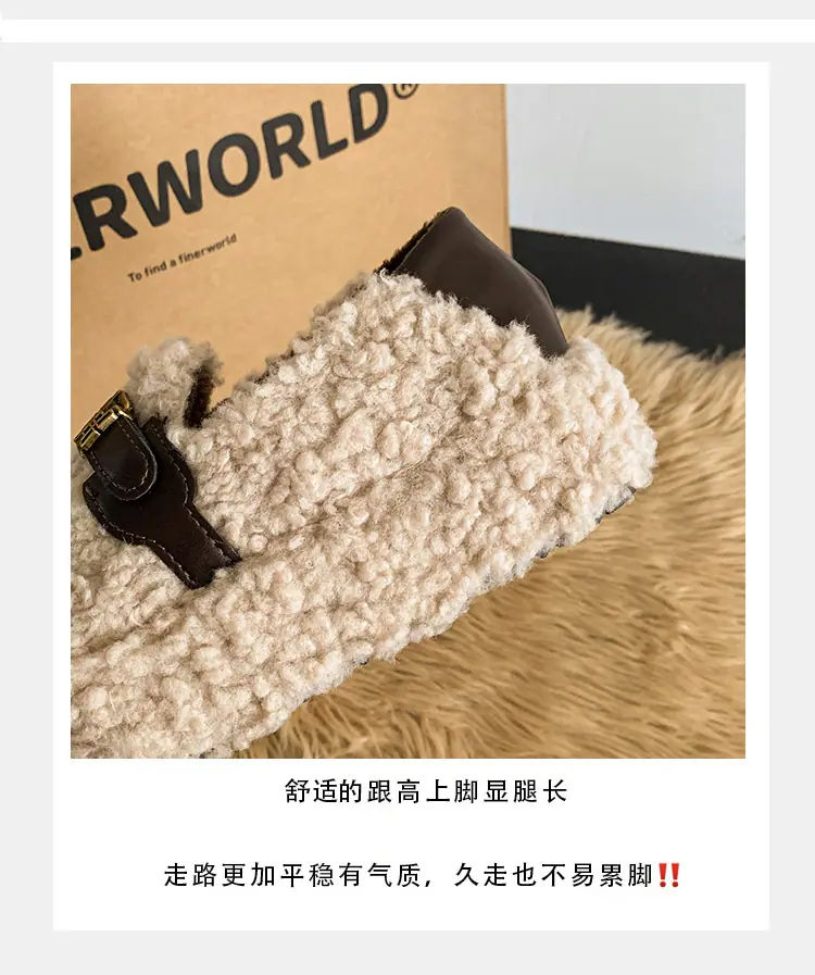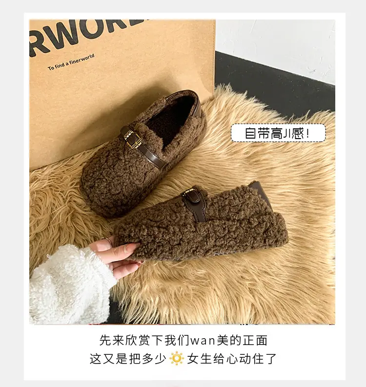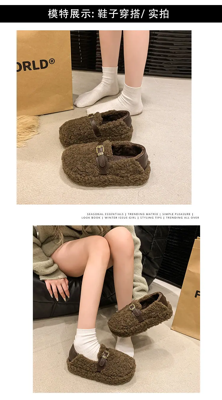 Pantuflas Peludas Retro de Suela Gruesa para Mujer Ropa de Exterior 2025 Otoño/Invierno Estilo Coreano Cómodas Pantuflas de Pelo Rizado de Una Tira Pantuflas de Algodón Zapatos de Mujer