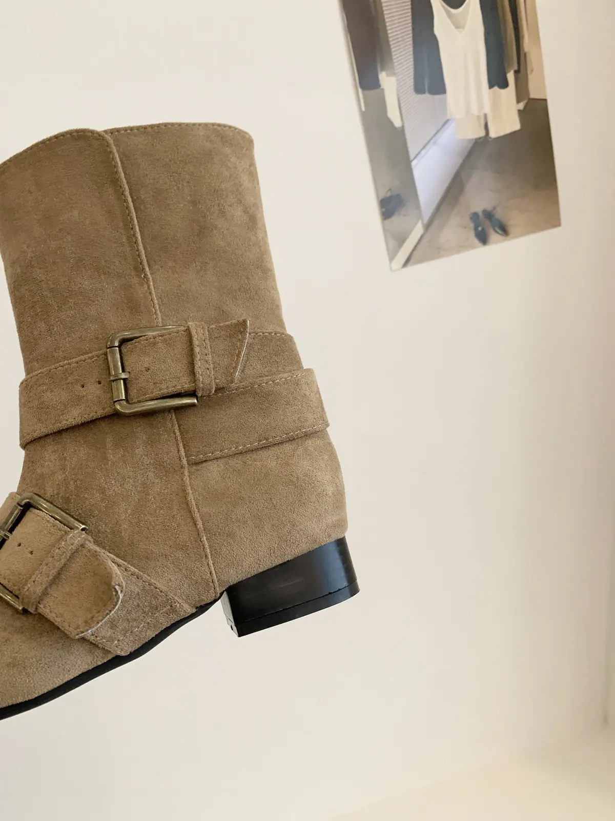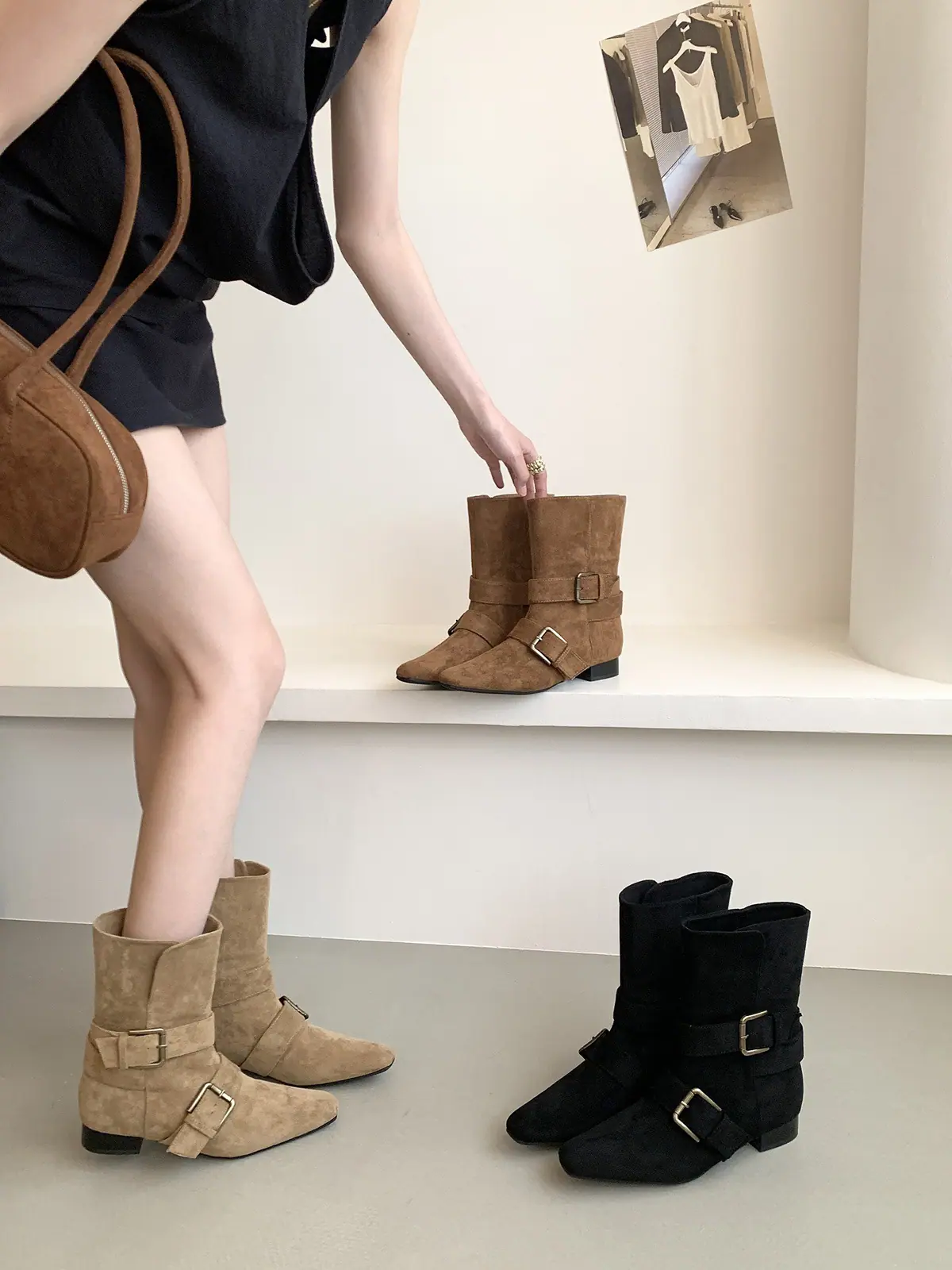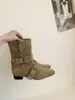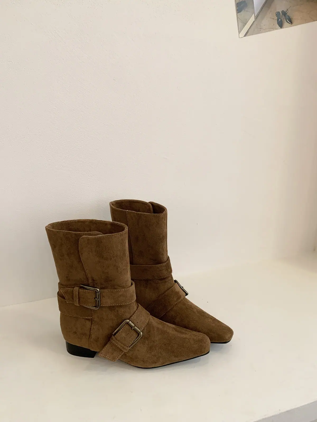 Botines Retro Franceses de Diseño Nicho de Punta Cuadrada y Tacón Grueso para Mujer 2025 Nuevas Botas Vaqueras Botas de Media Caña Botas de Mujer