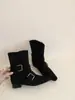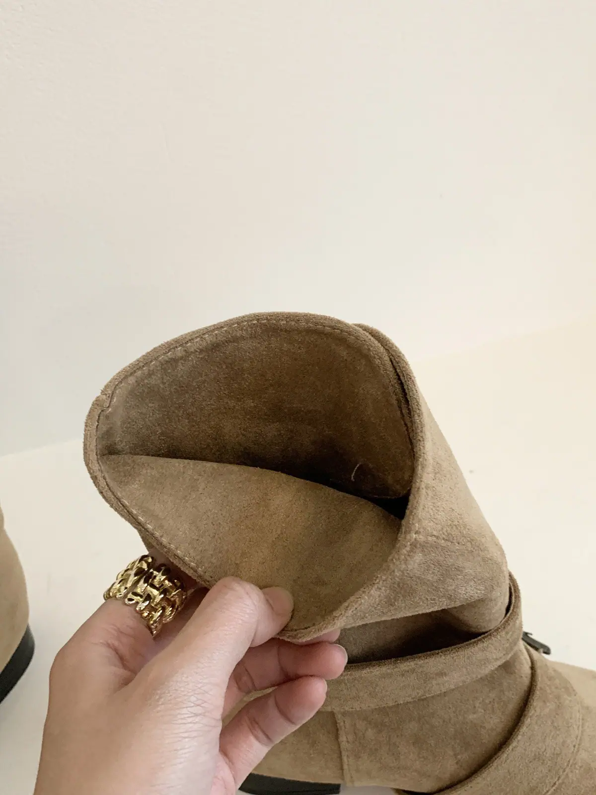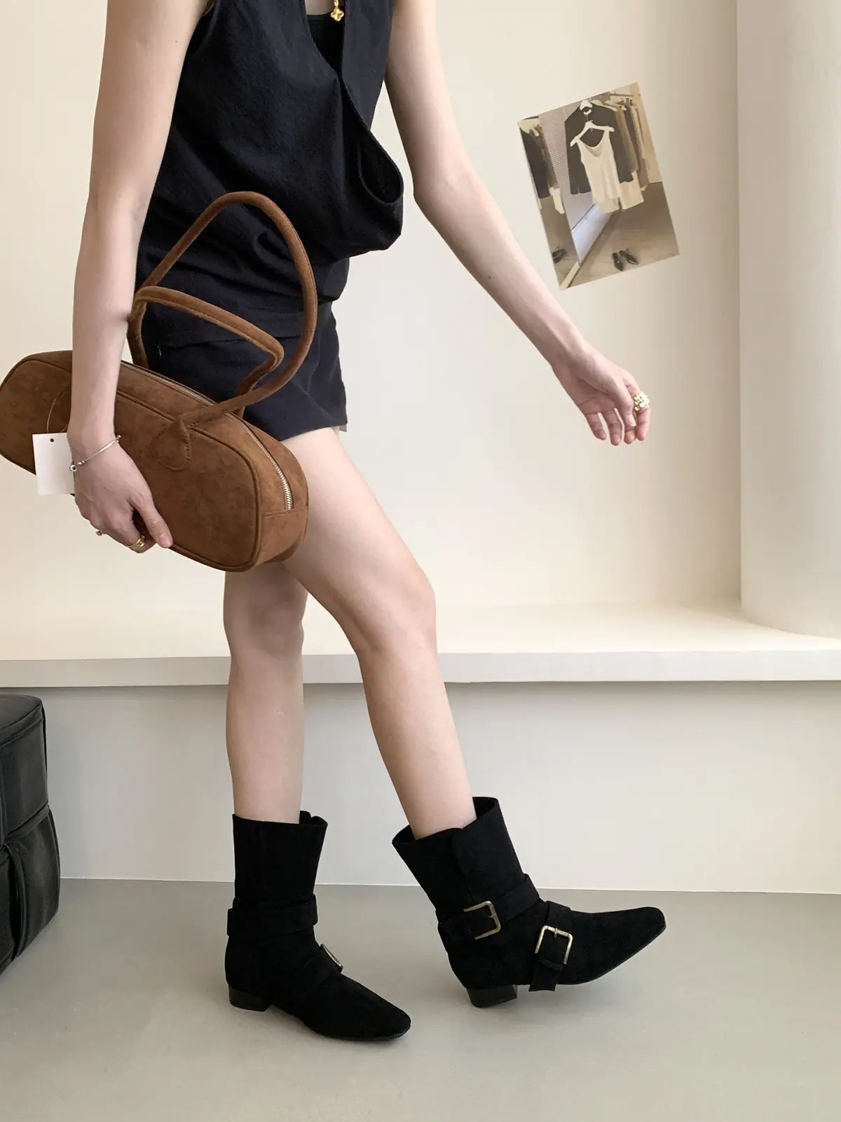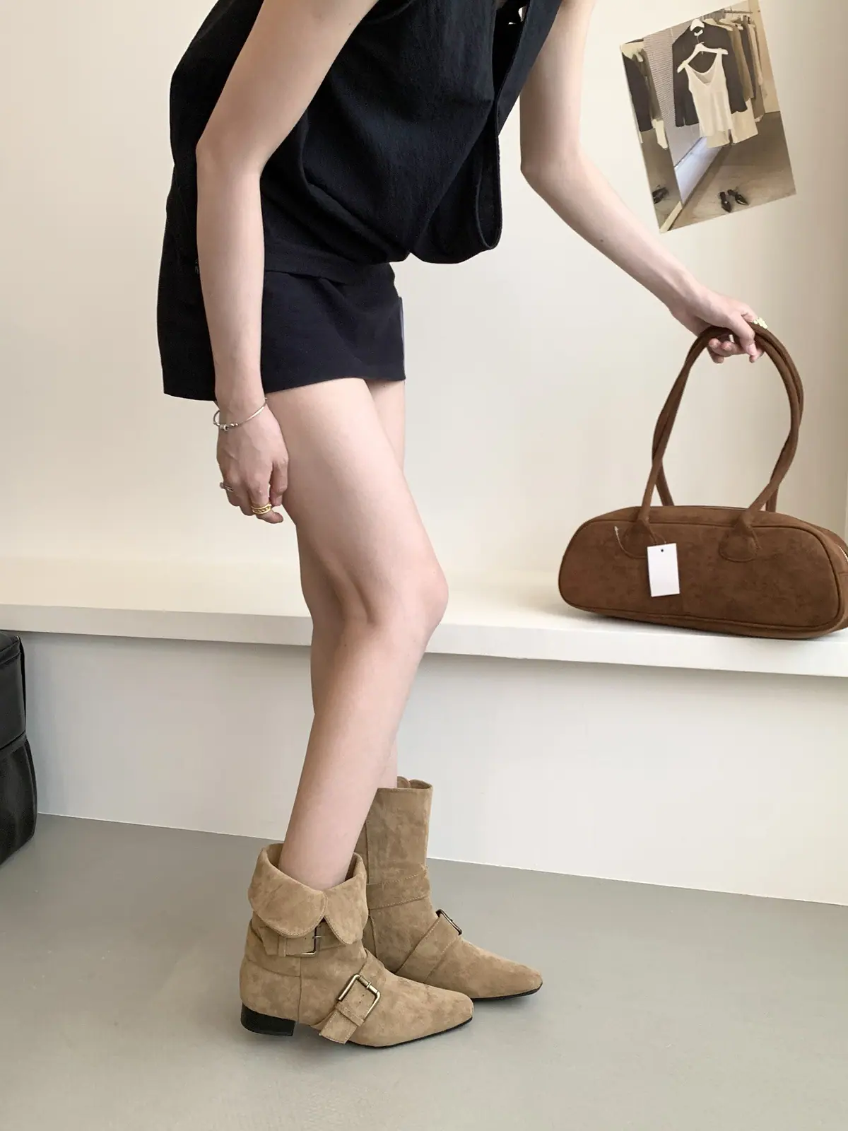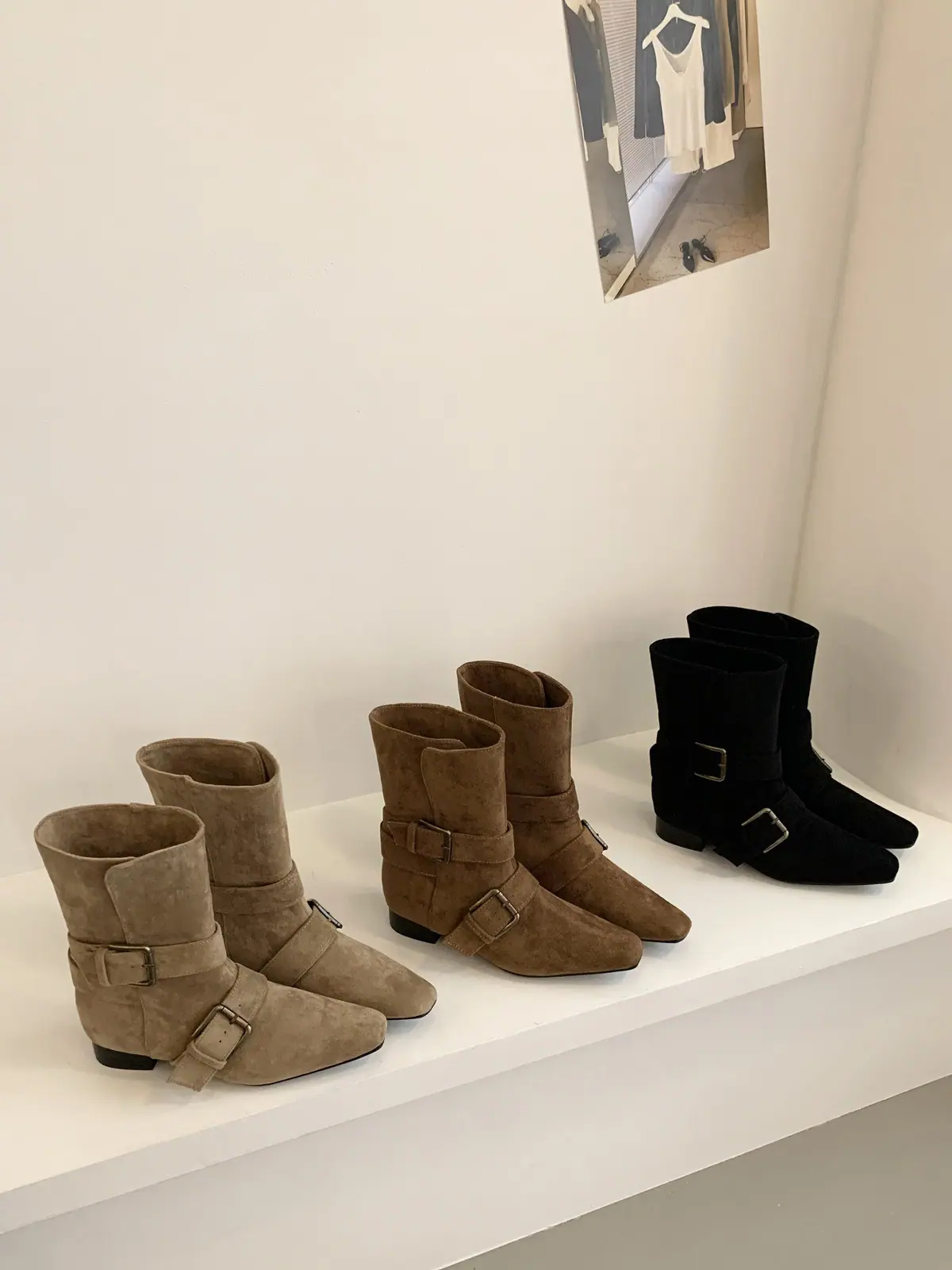 Botines Retro Franceses de Diseño Nicho de Punta Cuadrada y Tacón Grueso para Mujer 2025 Nuevas Botas Vaqueras Botas de Media Caña Botas de Mujer