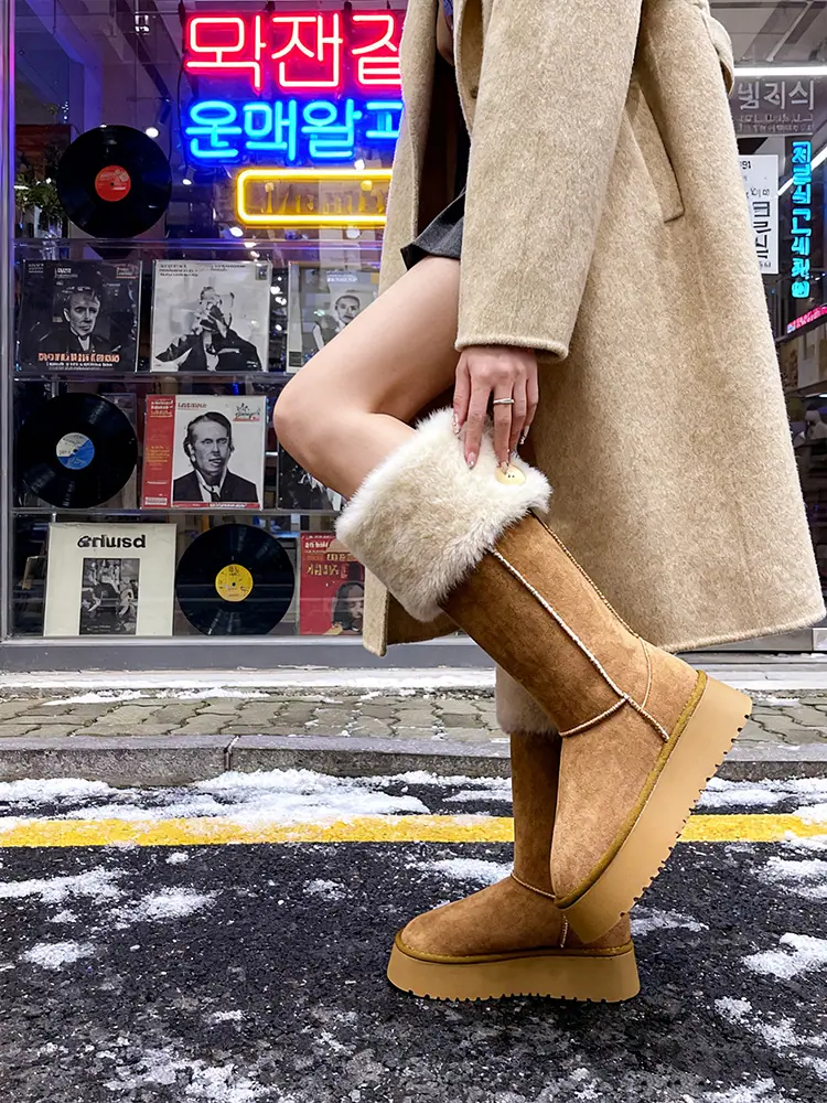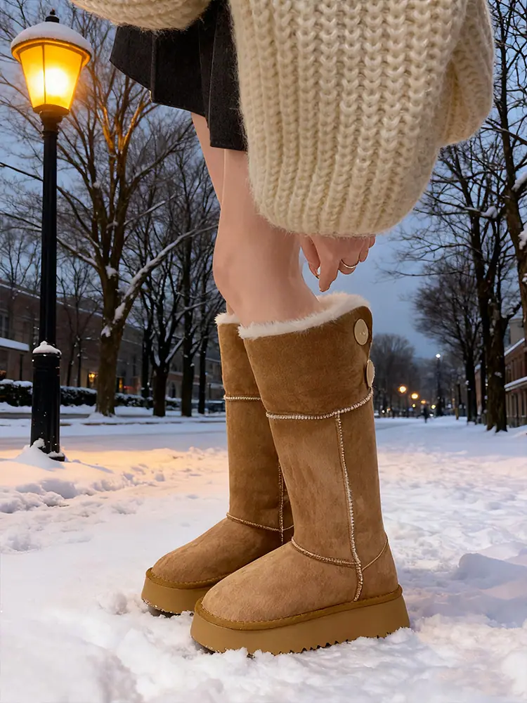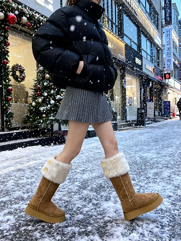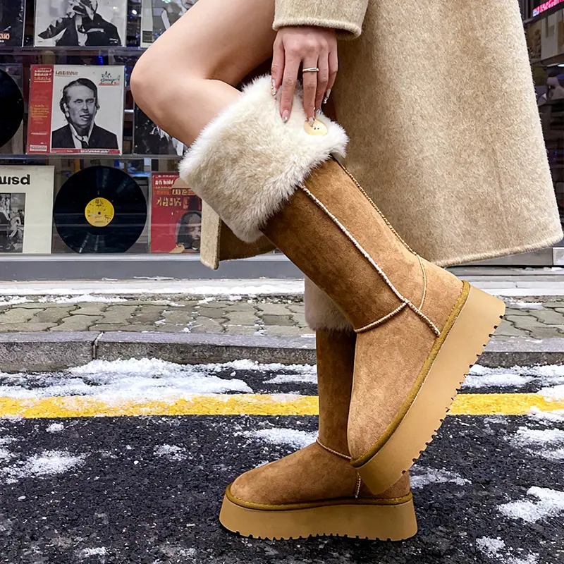 Botas de nieve de suela gruesa para mujer 2025 invierno nuevo dos usos botas largas Noreste forro polar engrosado de caña alta botas de algodón