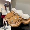 Pantuflas Peludas de Suela Gruesa para Mujer para Uso en Exteriores 2025 Nuevo Otoño/Invierno Simples Versátiles Algodón que Aumenta la Altura Pantuflas para Mujer