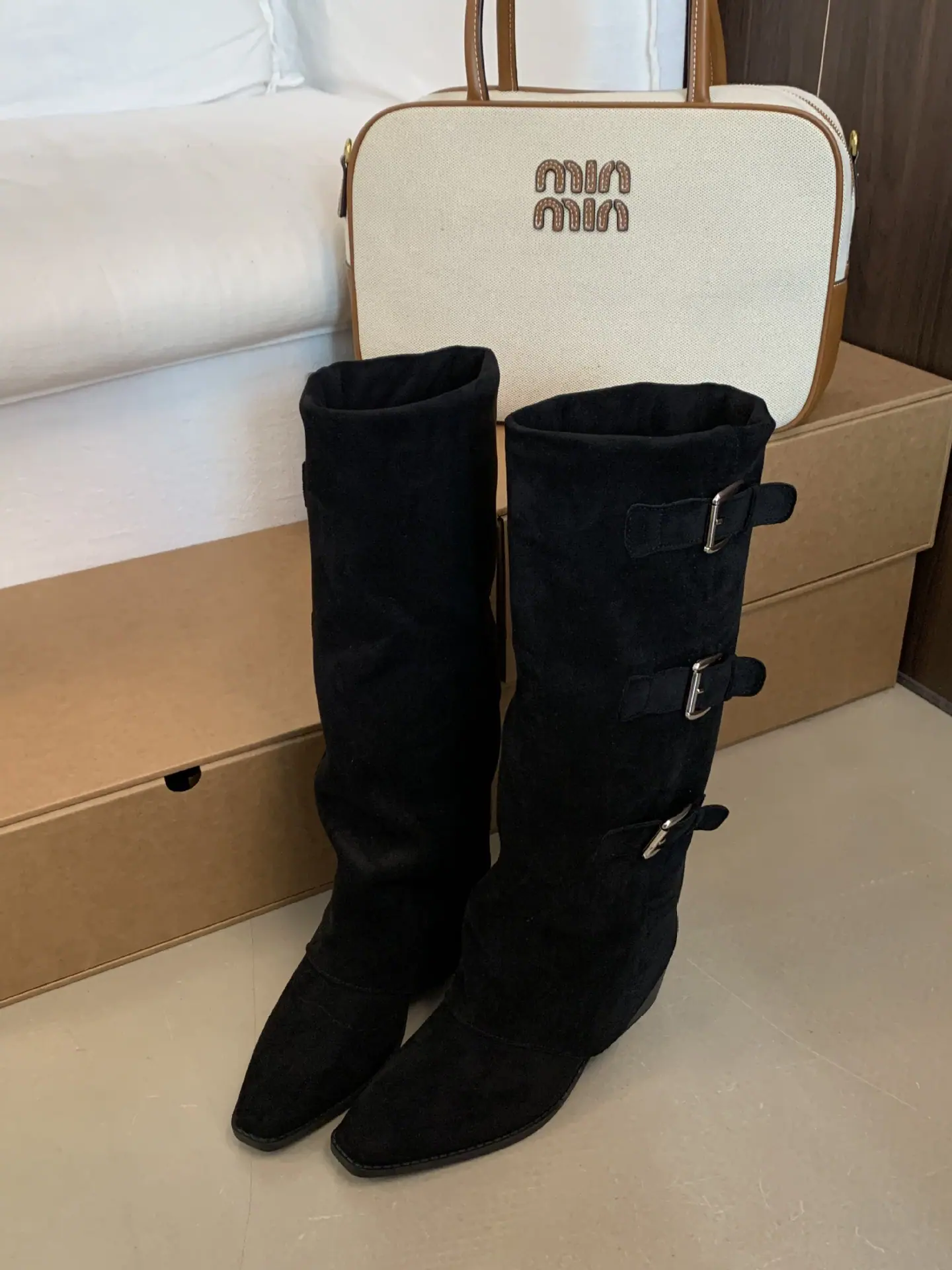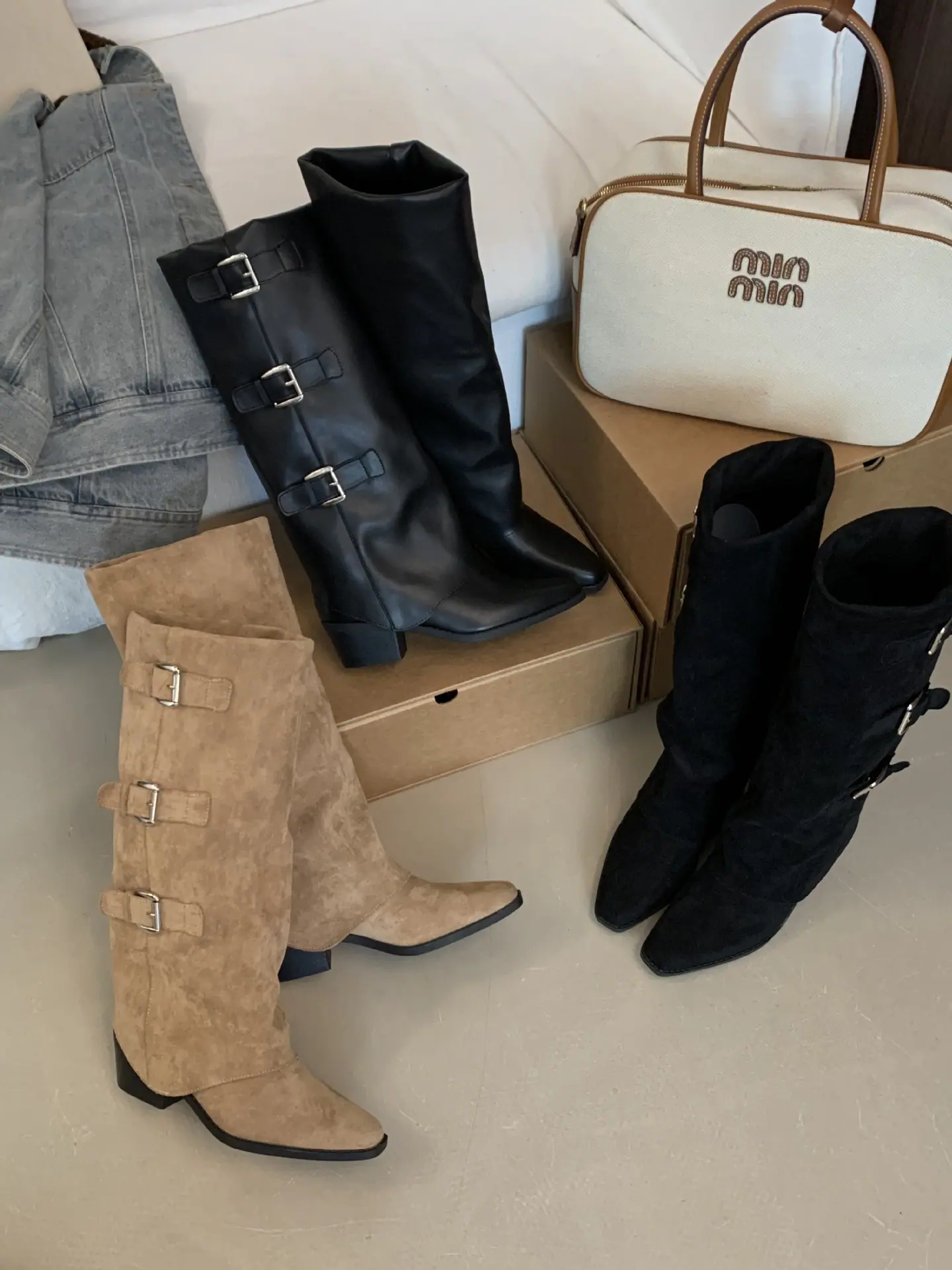 Black PU, Khaki, Black suede