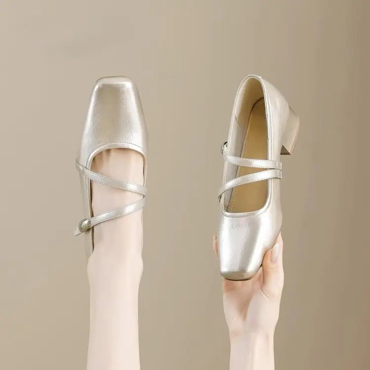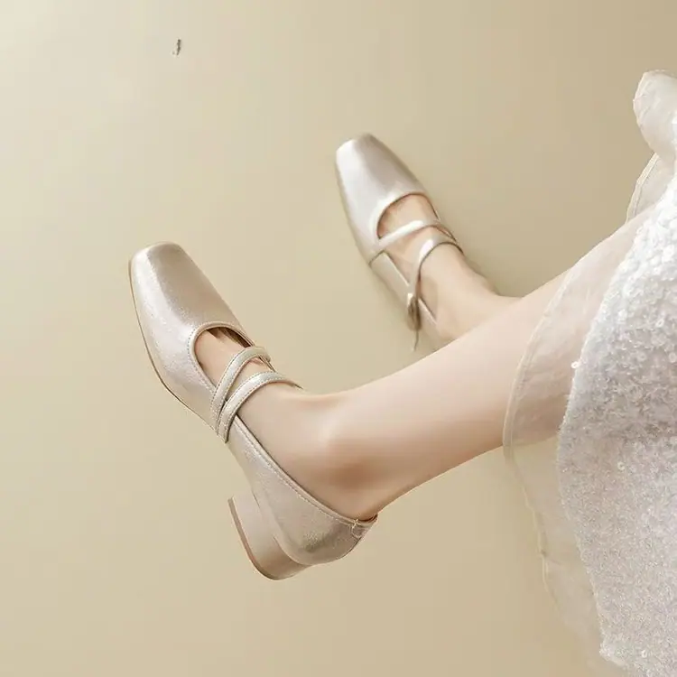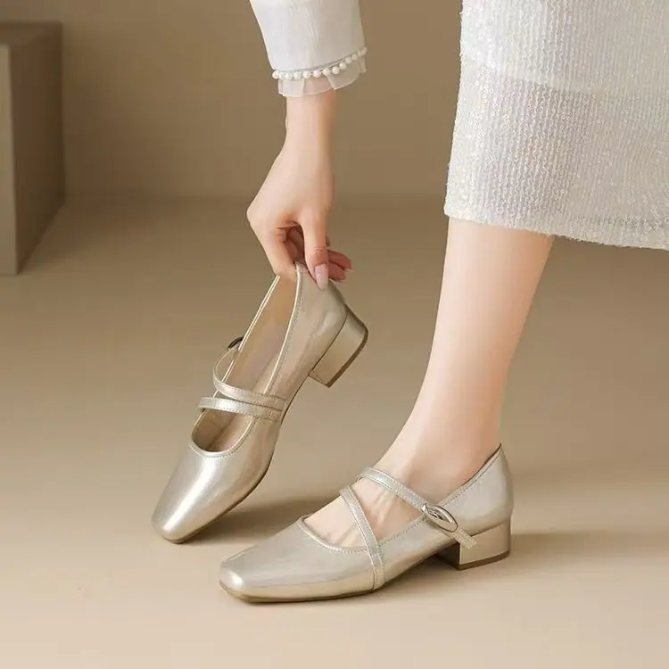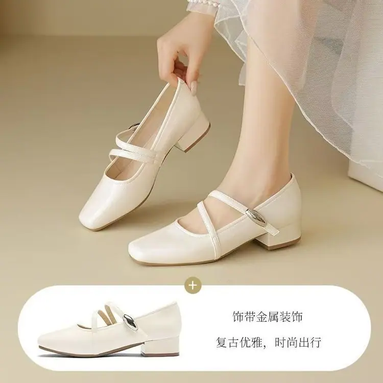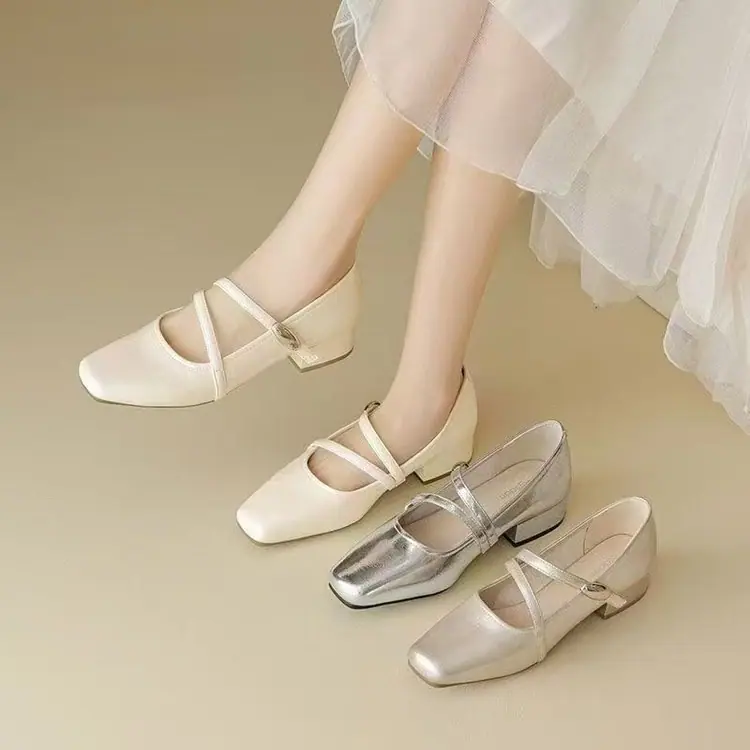 Zapatos Mary Jane franceses otoño 2025 nueva moda para vestir estilo hada combinar vestido corte bajo tacón medio temperamento zapatos individuales