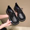 Zapatos pequeños de cuero para mujer de suela gruesa y tacón grueso, nuevos para el invierno 2024, estilo retro británico, versátiles mocasines con cordones para mujer