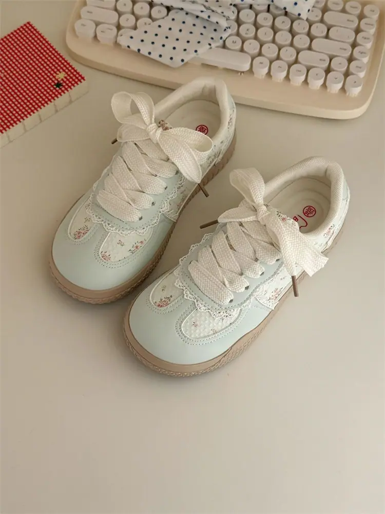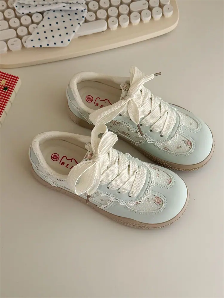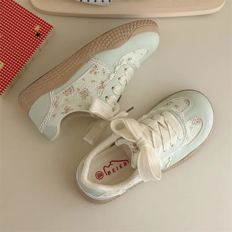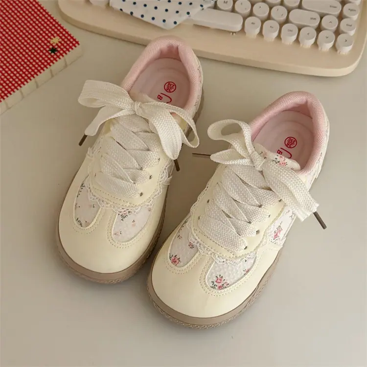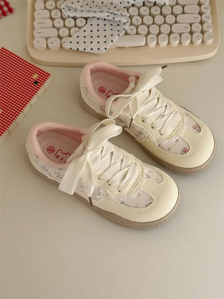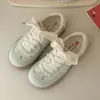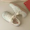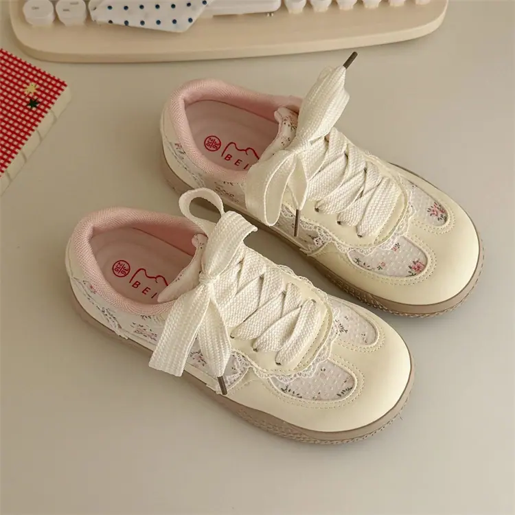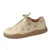 Tenis blancos versátiles de suela gruesa zapatos deportivos para estudiantes de mujer otoño 2025 nuevo estampado nicho estilo coreano zapatos de lona transpirables