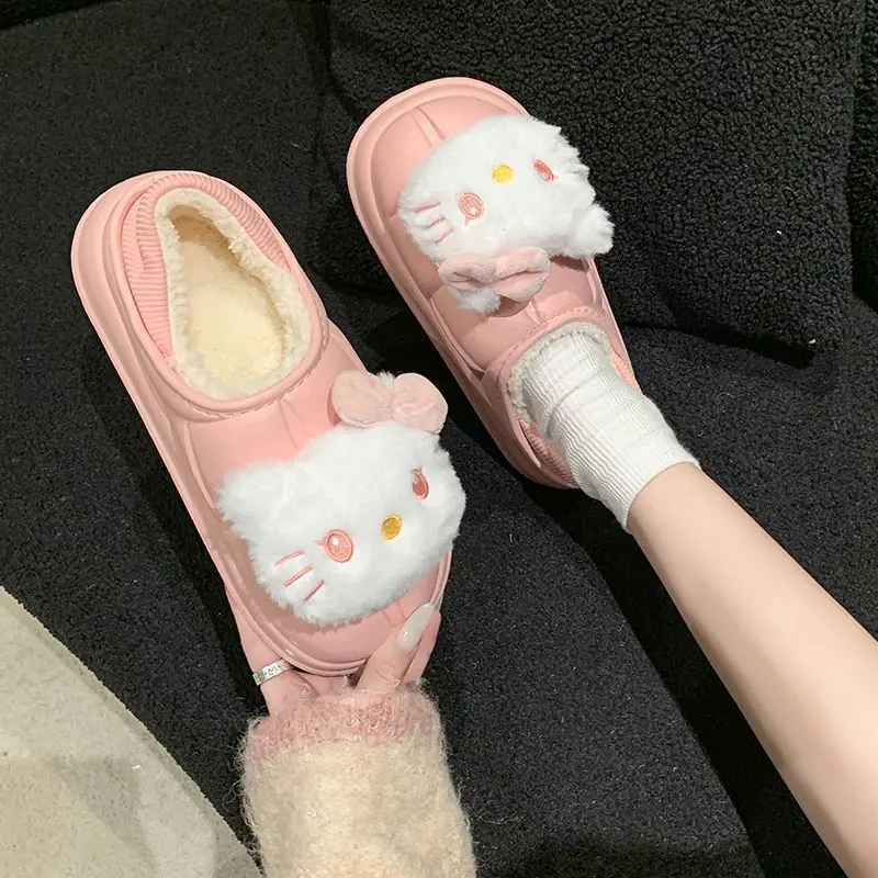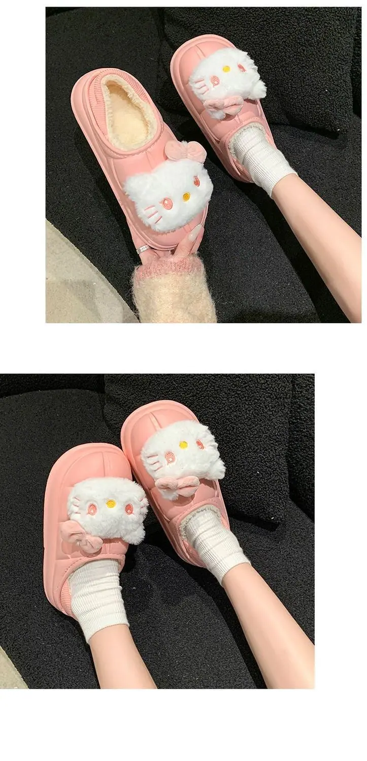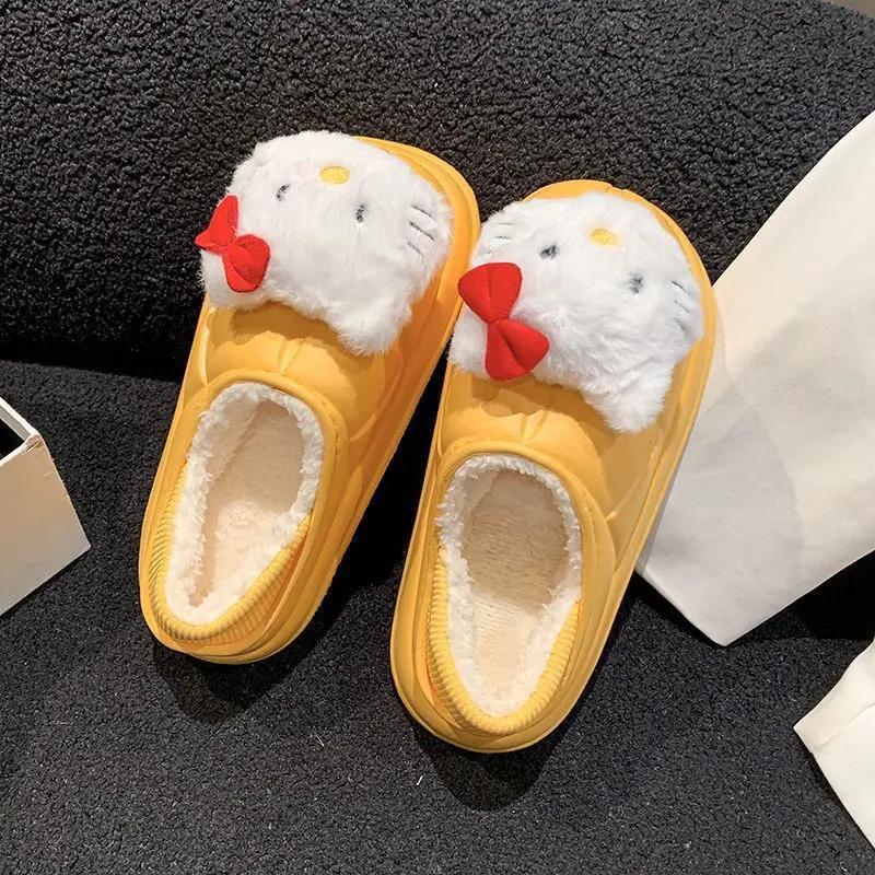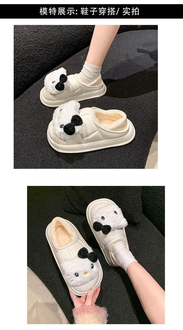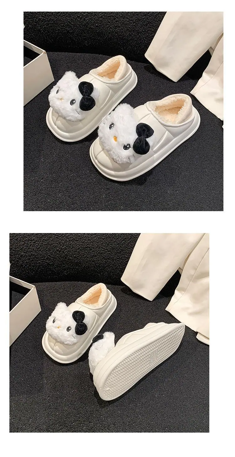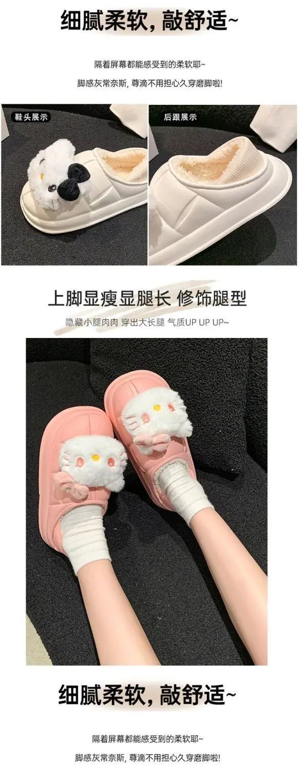 Lindas Zapatillas de Algodón Antideslizantes para Mujer para el Hogar Ropa de Exterior para Mujer 2025 Invierno Nuevo Estilo Talón Cerrado Suela Plana Cálidas Pantuflas de Algodón de Dibujos Animados