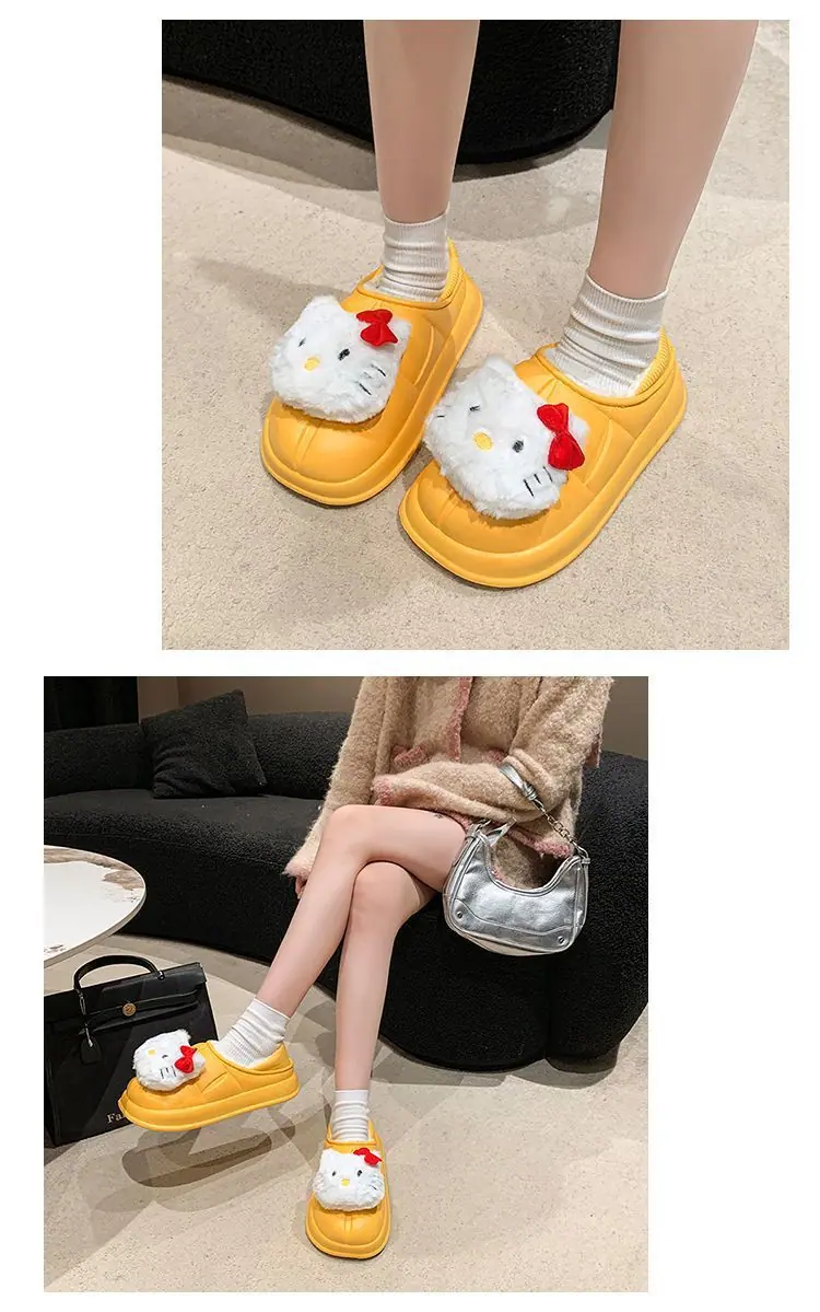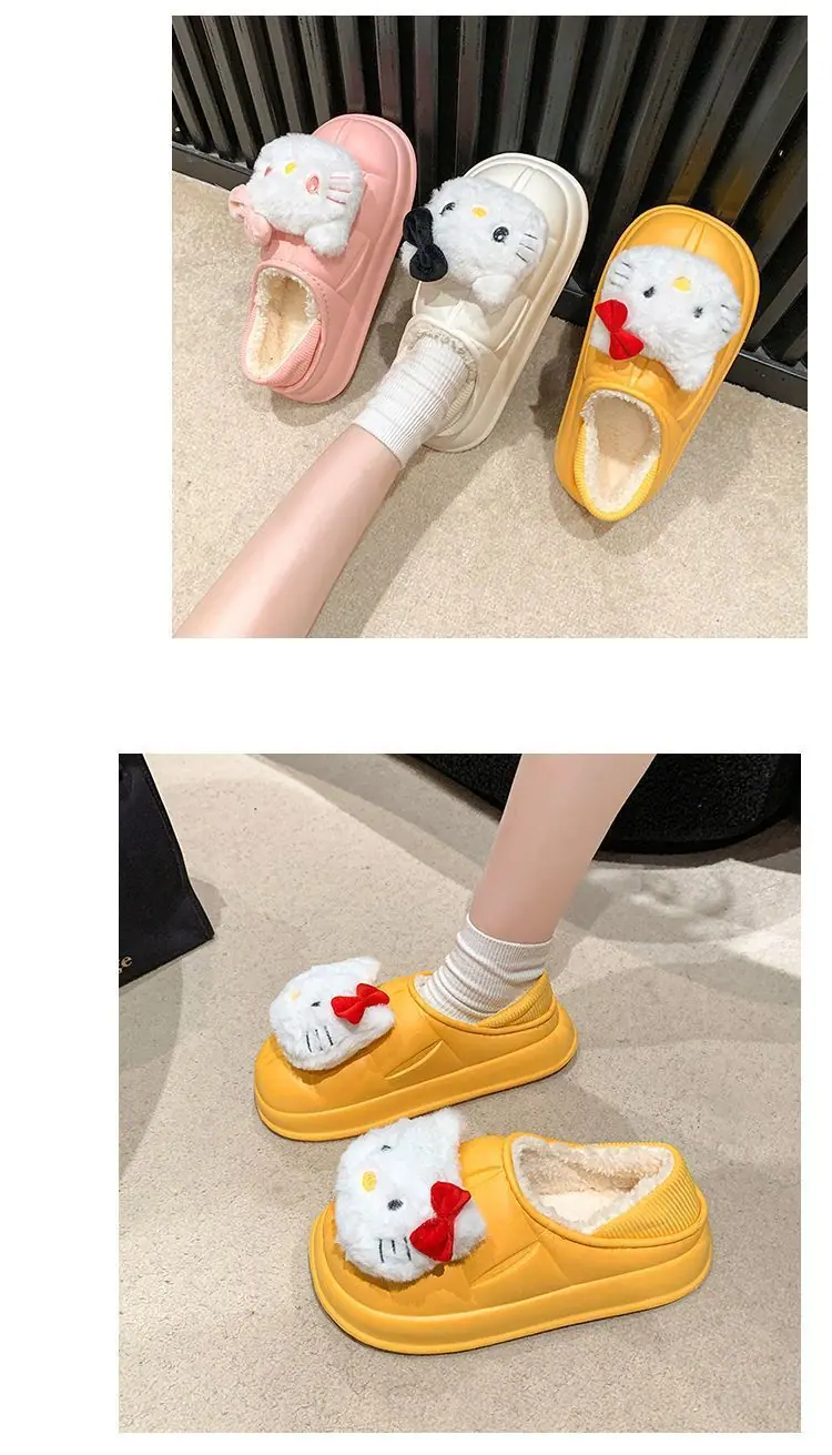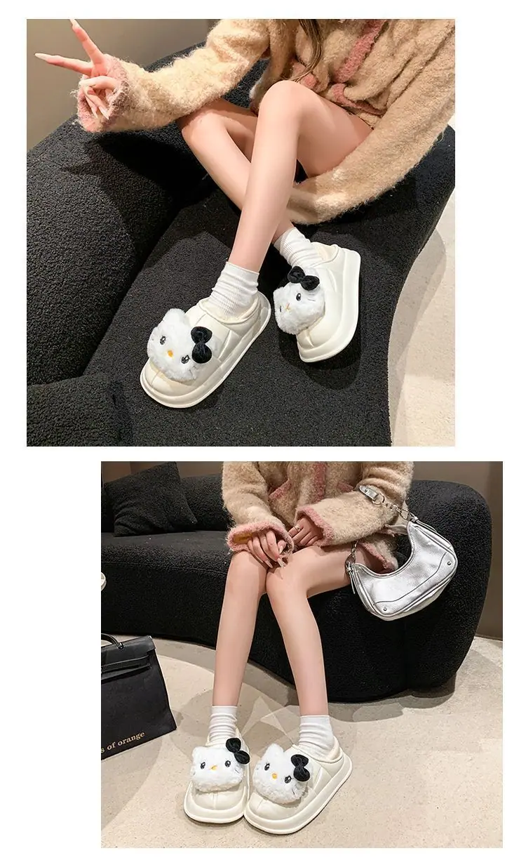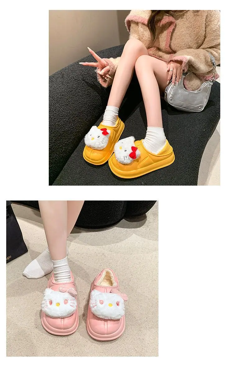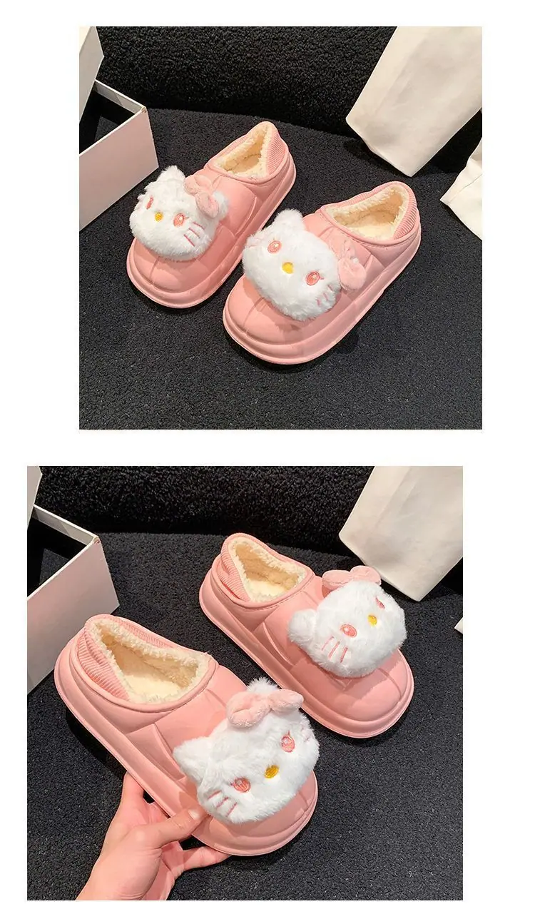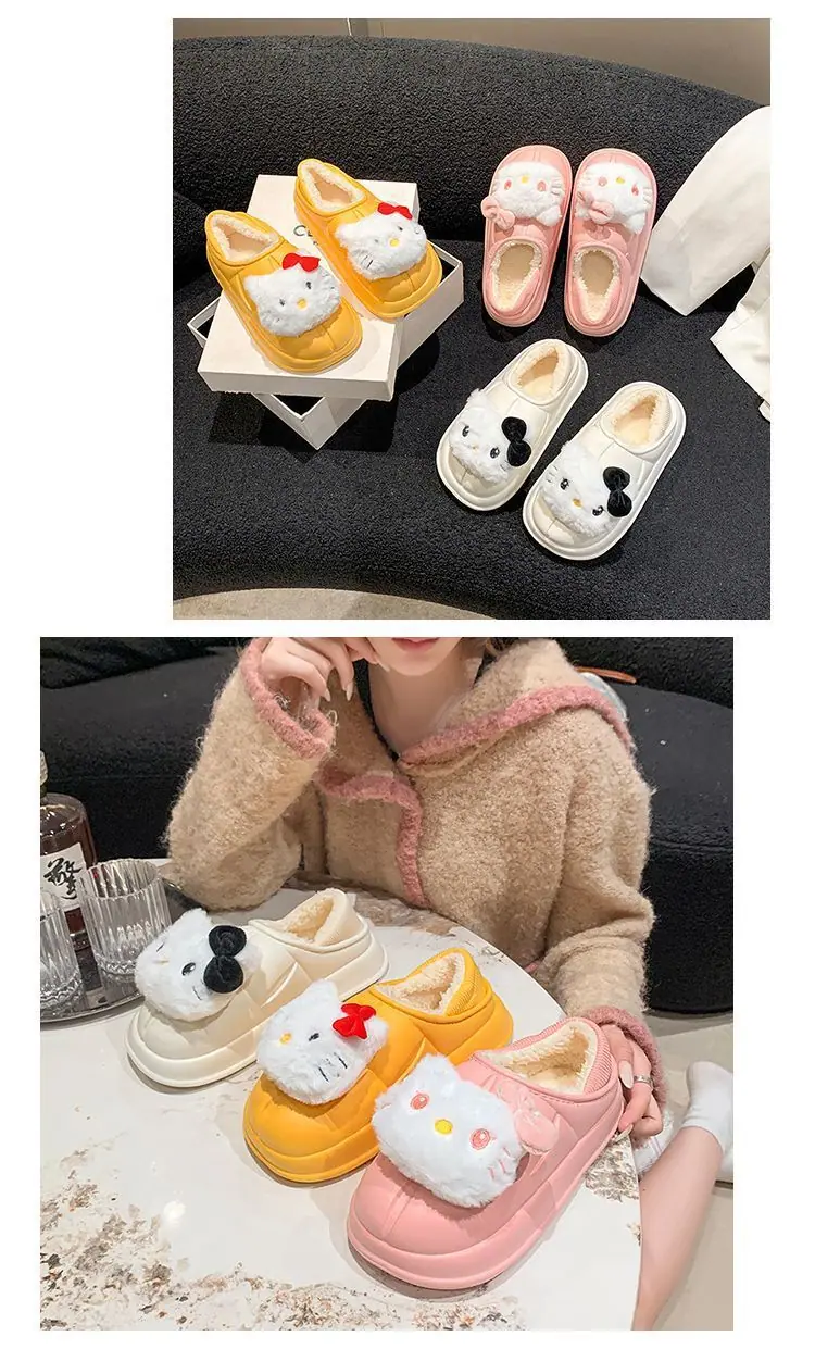 Lindas Zapatillas de Algodón Antideslizantes para Mujer para el Hogar Ropa de Exterior para Mujer 2025 Invierno Nuevo Estilo Talón Cerrado Suela Plana Cálidas Pantuflas de Algodón de Dibujos Animados