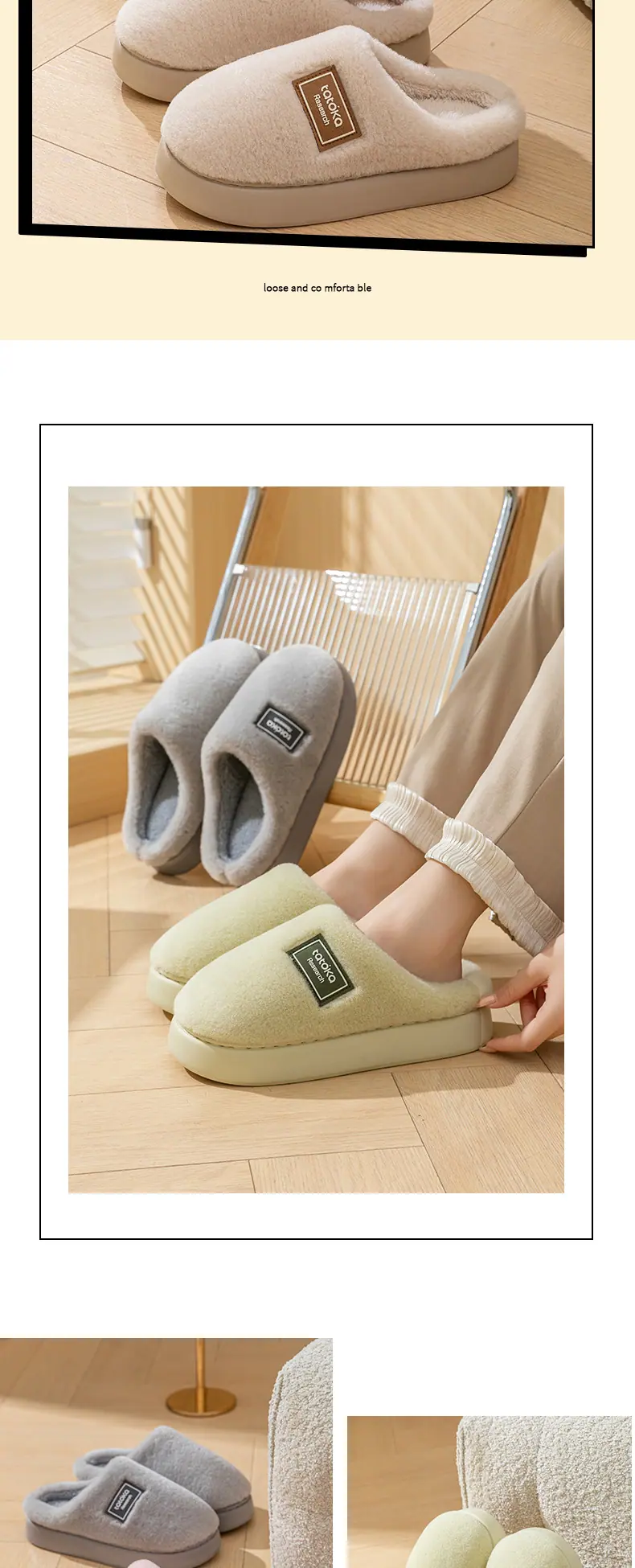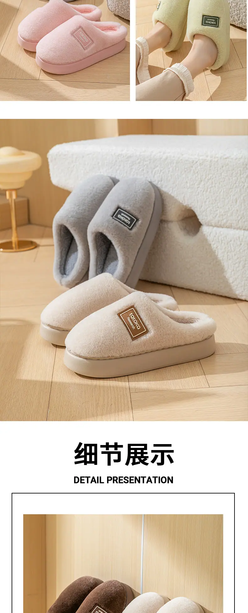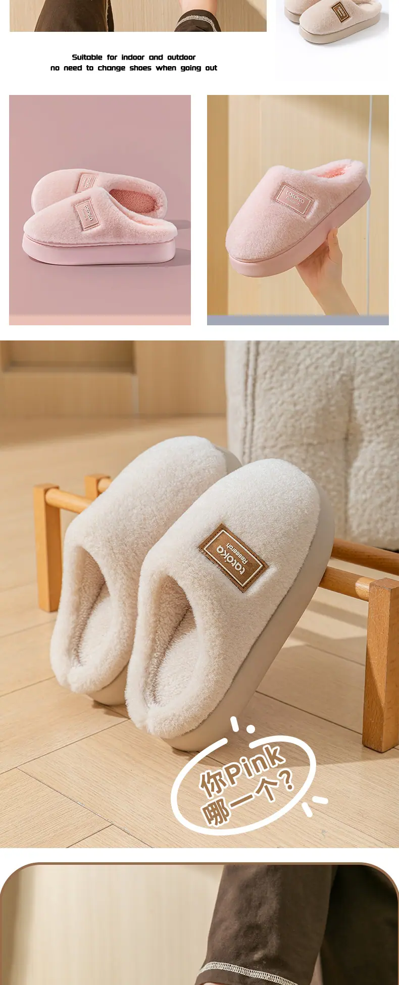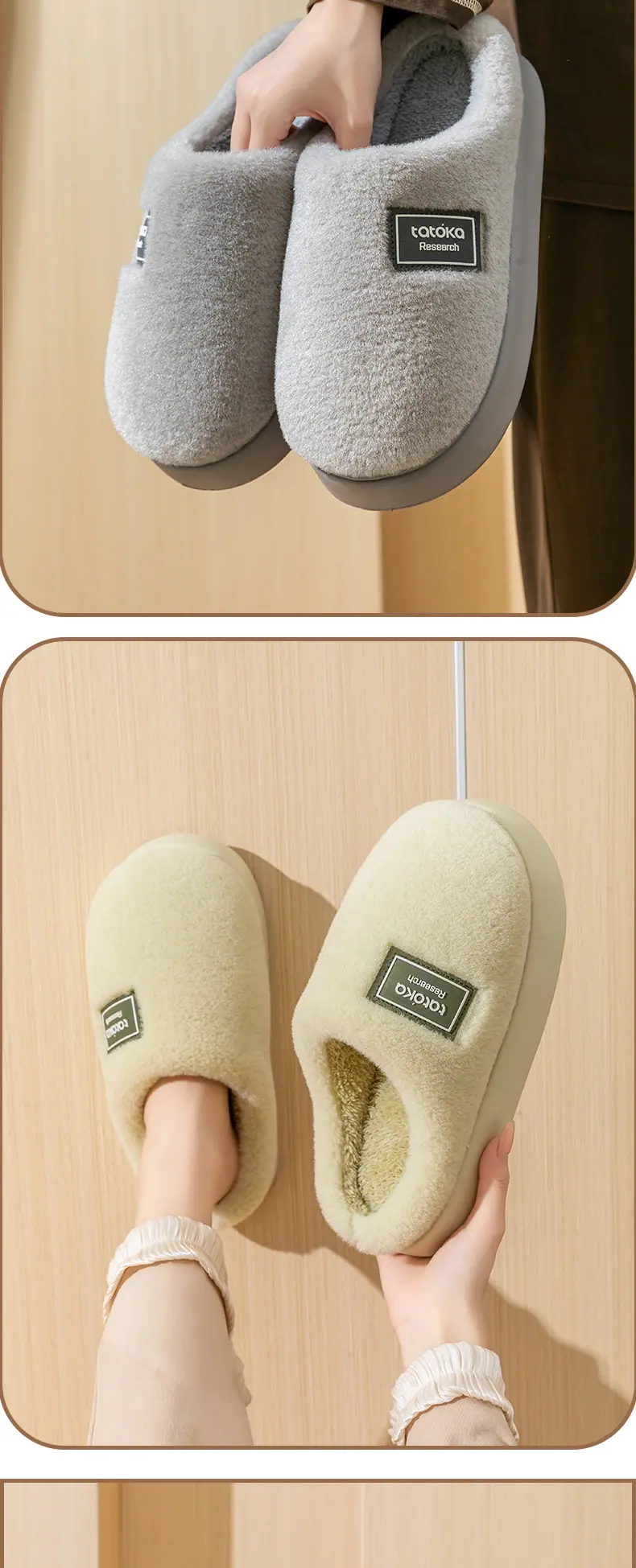 Pisar Mierda Sentir Pantuflas de Algodón para Pareja de Mujer 2025 Nuevo Otoño e Invierno para Interior Hogar Peludas Cálidas Antideslizantes de Algodón