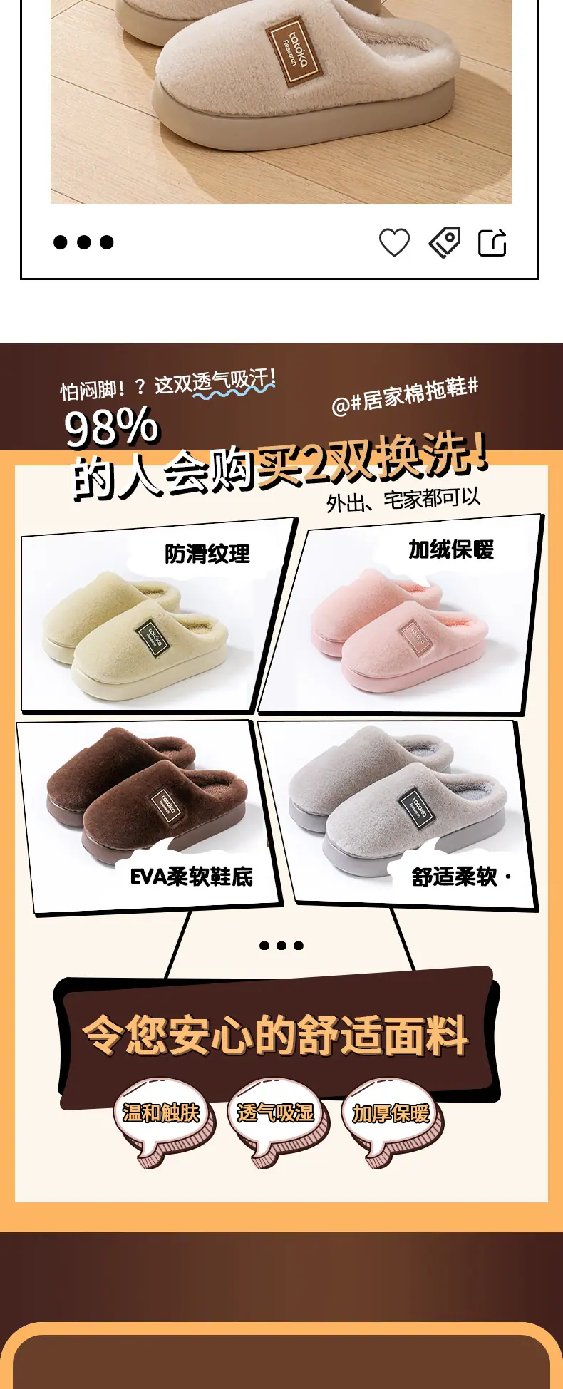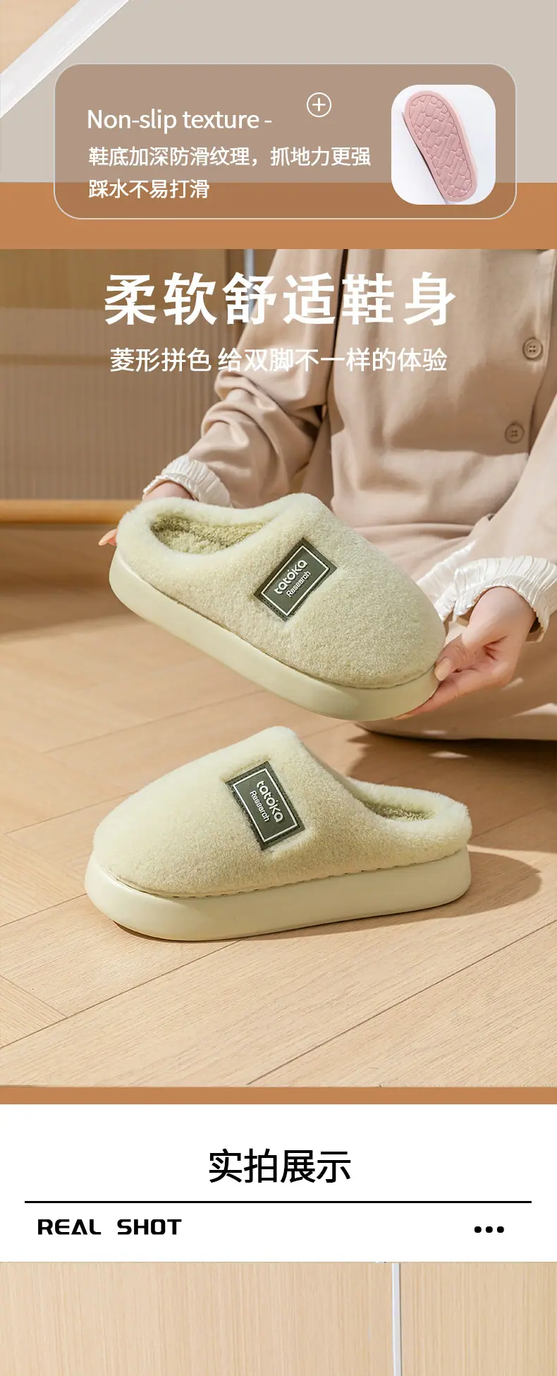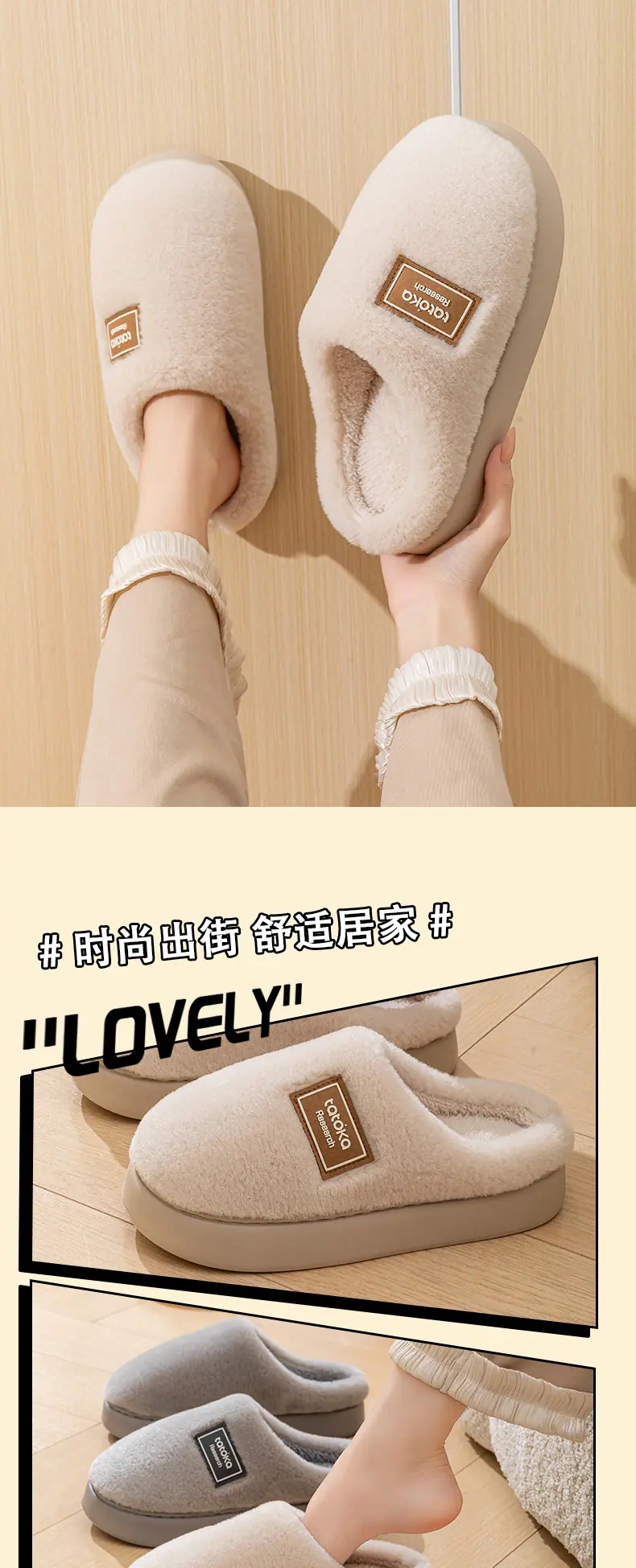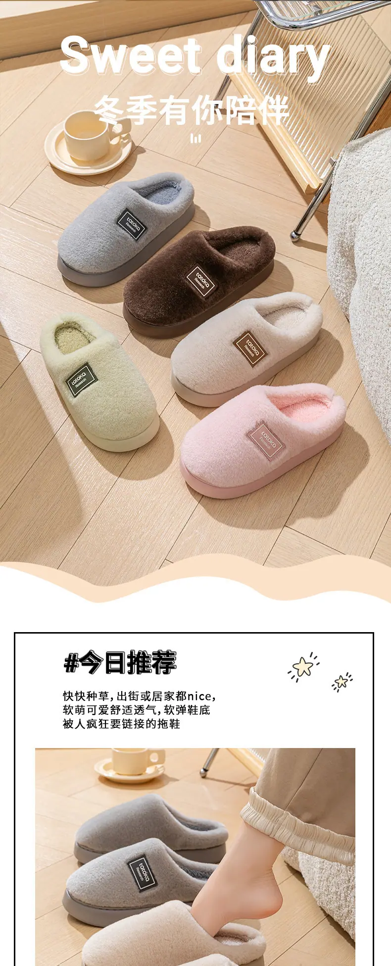 Pisar Mierda Sentir Pantuflas de Algodón para Pareja de Mujer 2025 Nuevo Otoño e Invierno para Interior Hogar Peludas Cálidas Antideslizantes de Algodón
