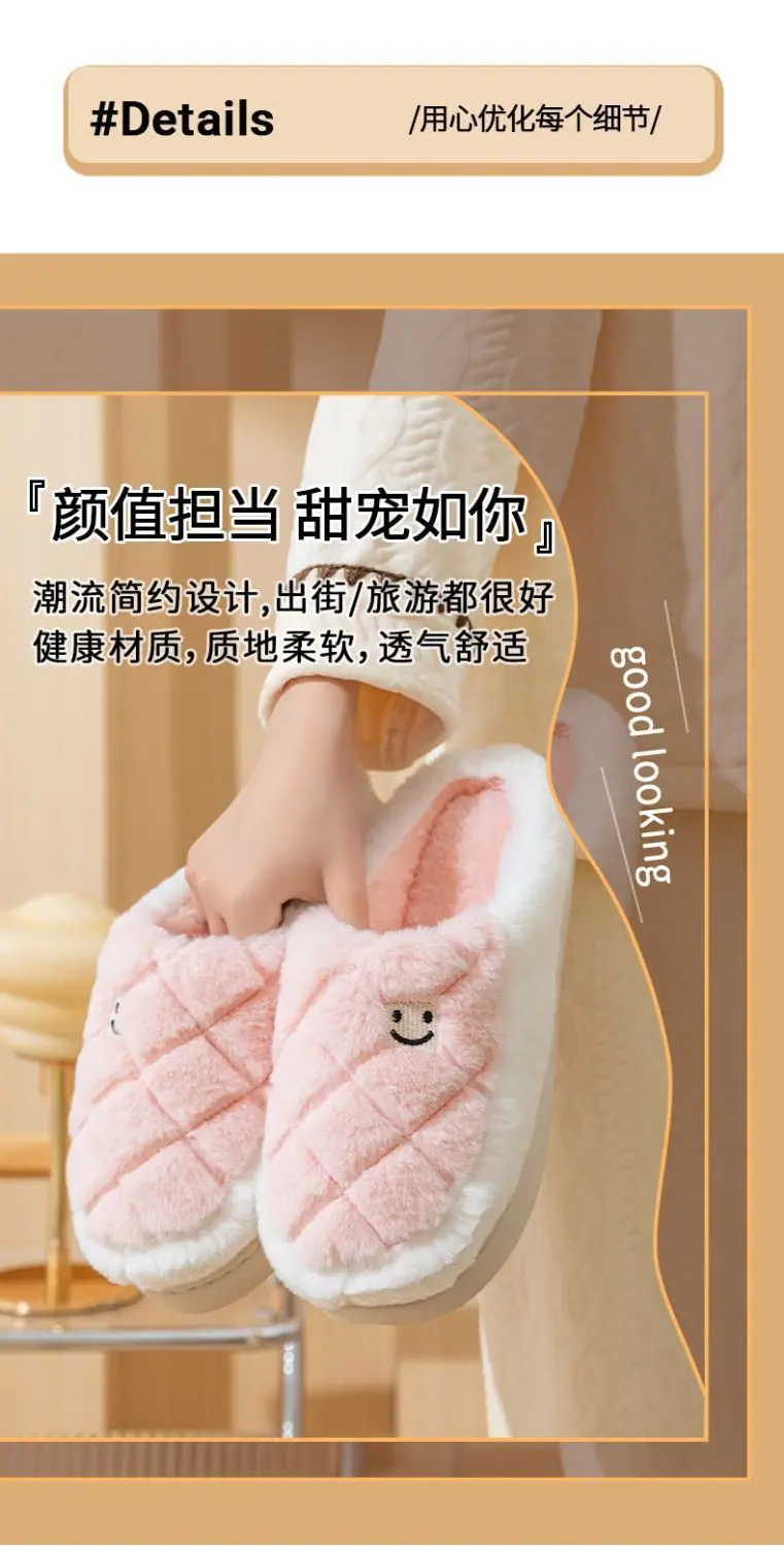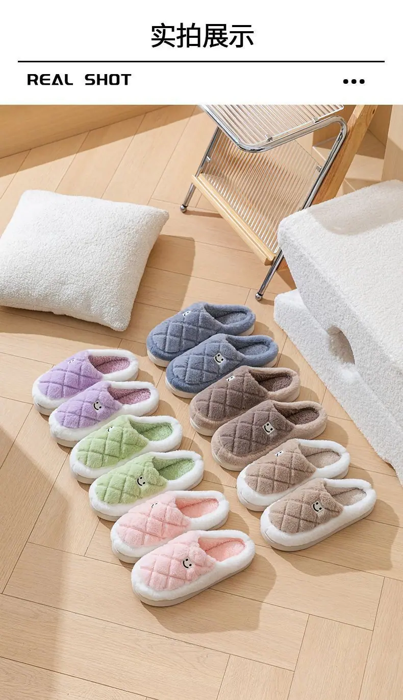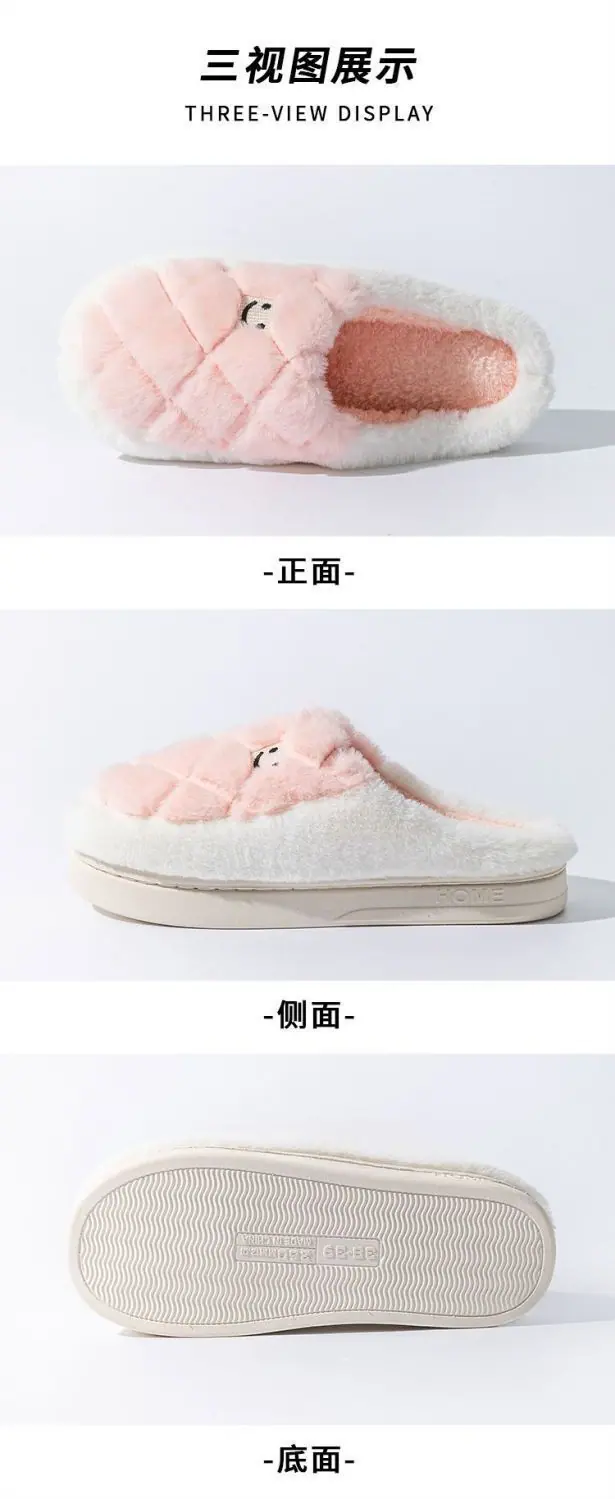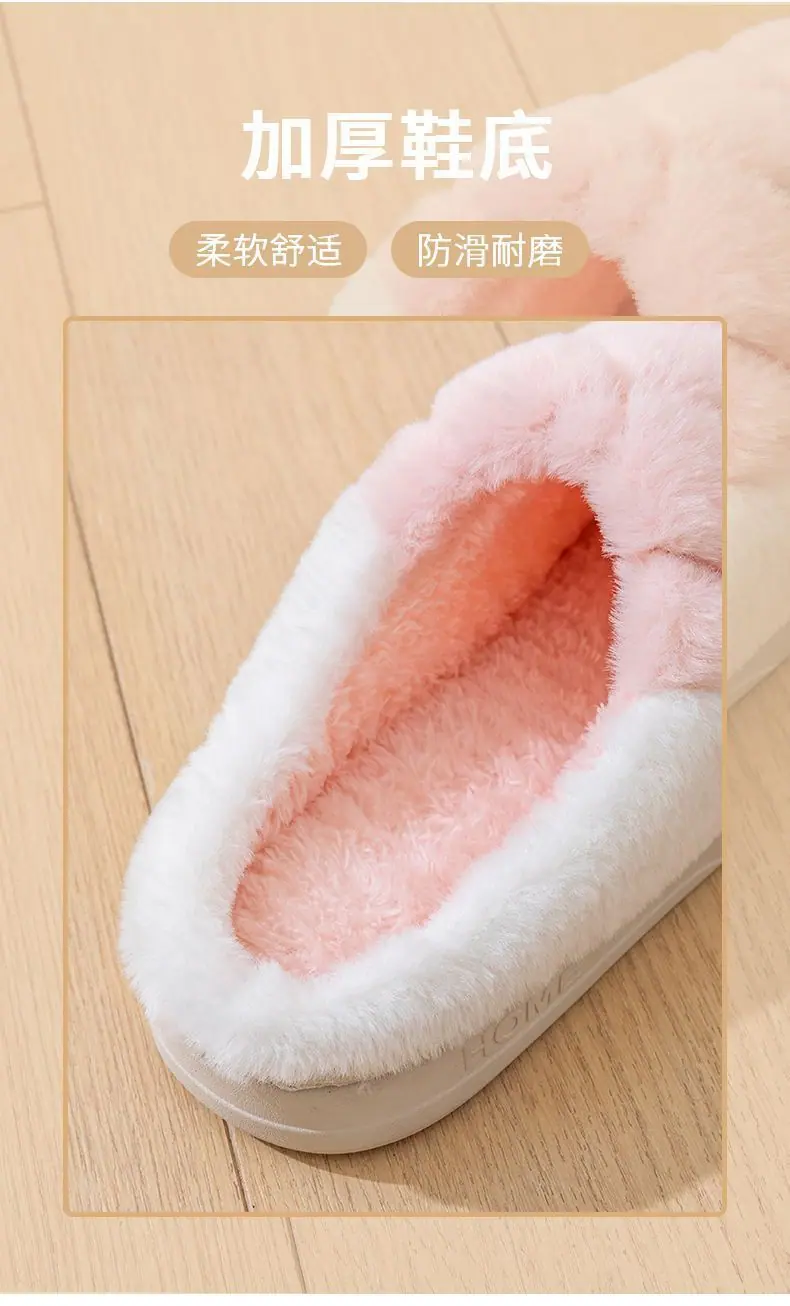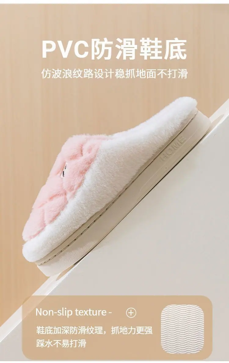Pantuflas de Algodón Felpa Antideslizantes de Suela Gruesa para Casa para Mujer Otoño e Invierno Lindas Moda Casual Cómodas Interior Invierno Pantuflas de Algodón