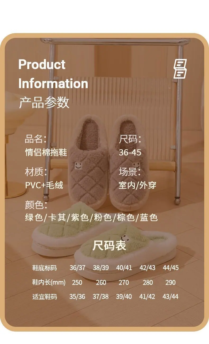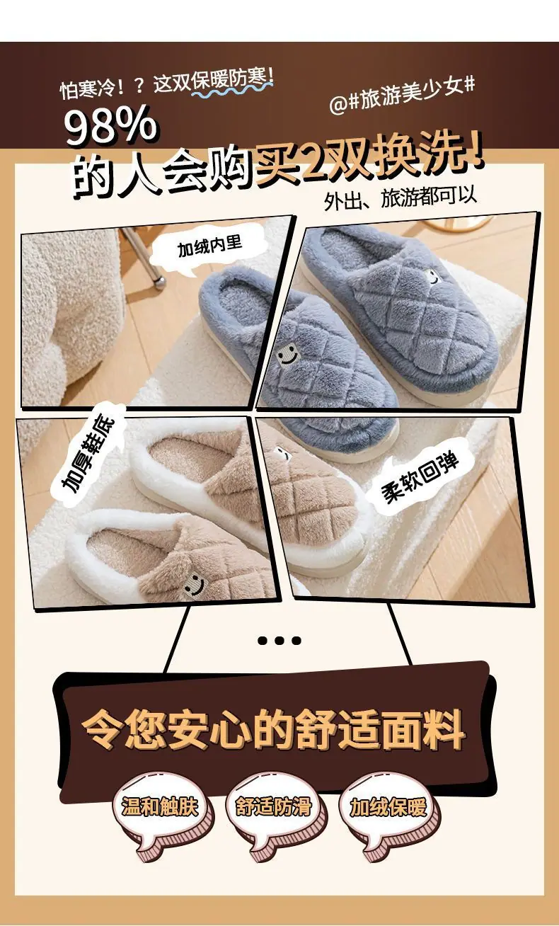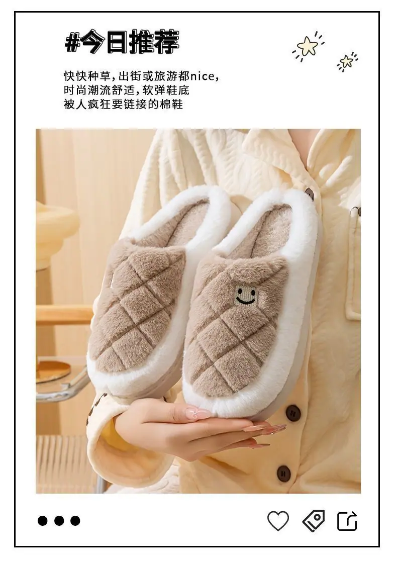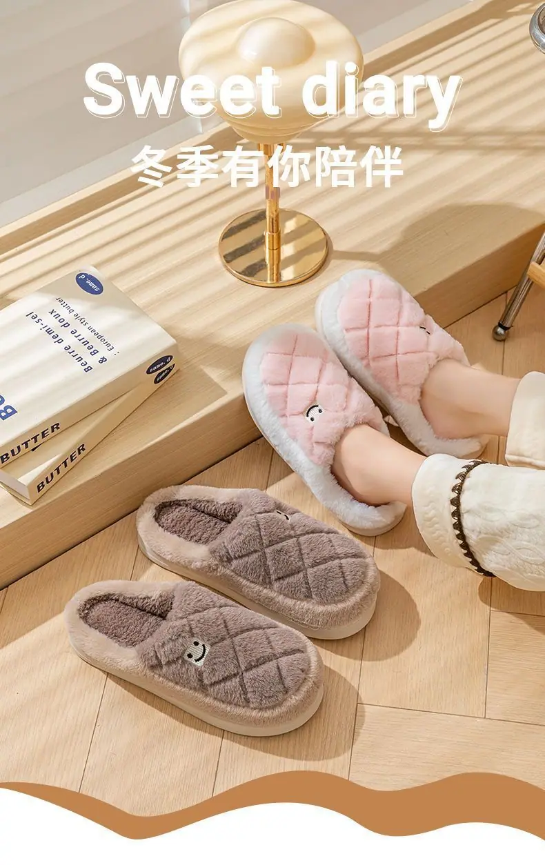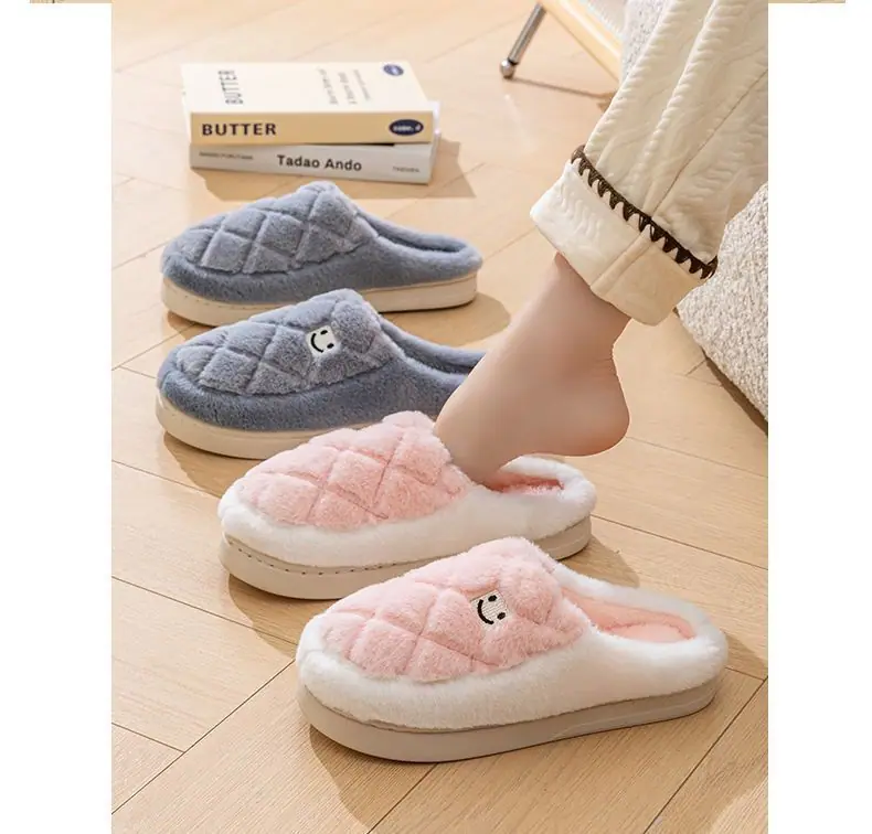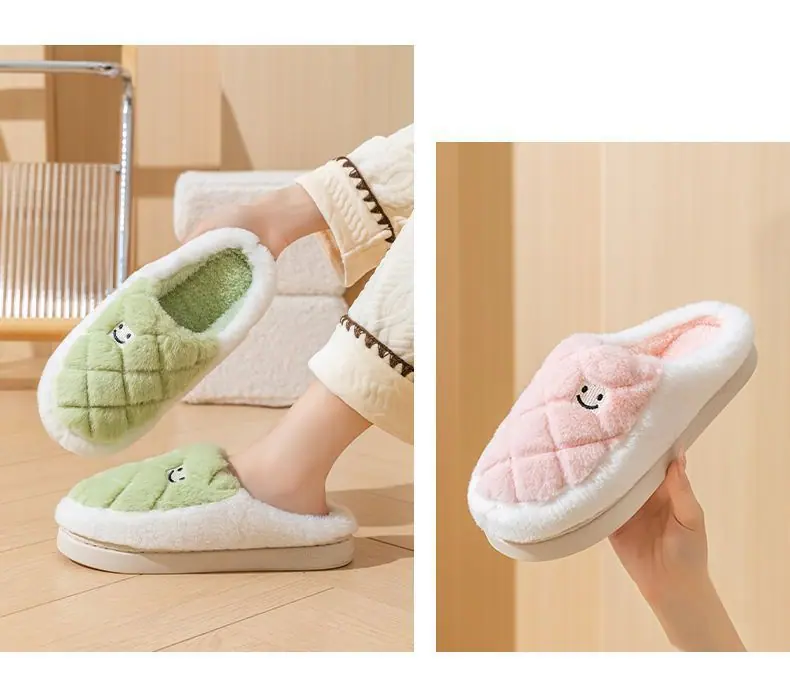 Pantuflas de Algodón Felpa Antideslizantes de Suela Gruesa para Casa para Mujer Otoño e Invierno Lindas Moda Casual Cómodas Interior Invierno Pantuflas de Algodón