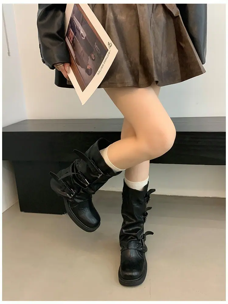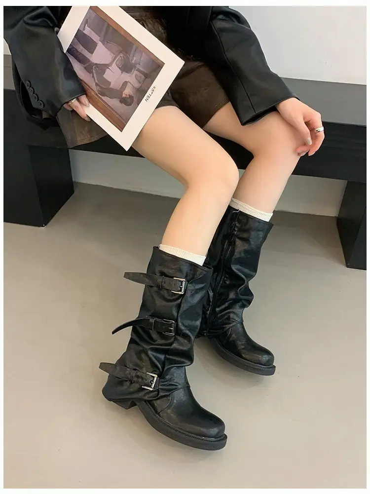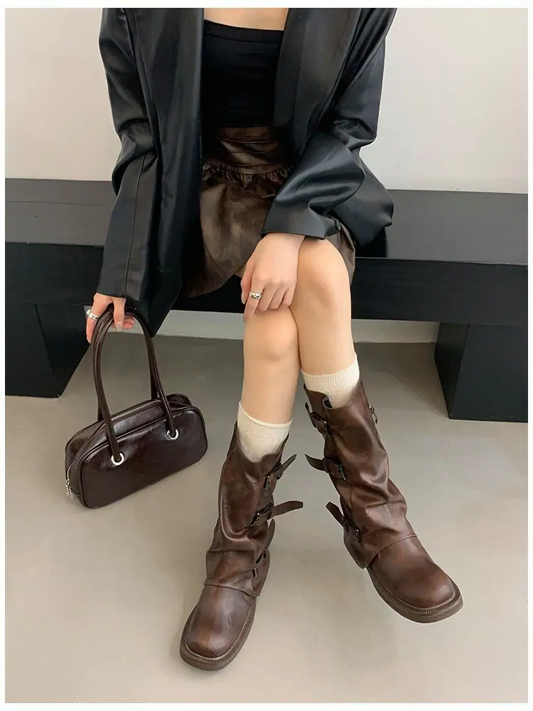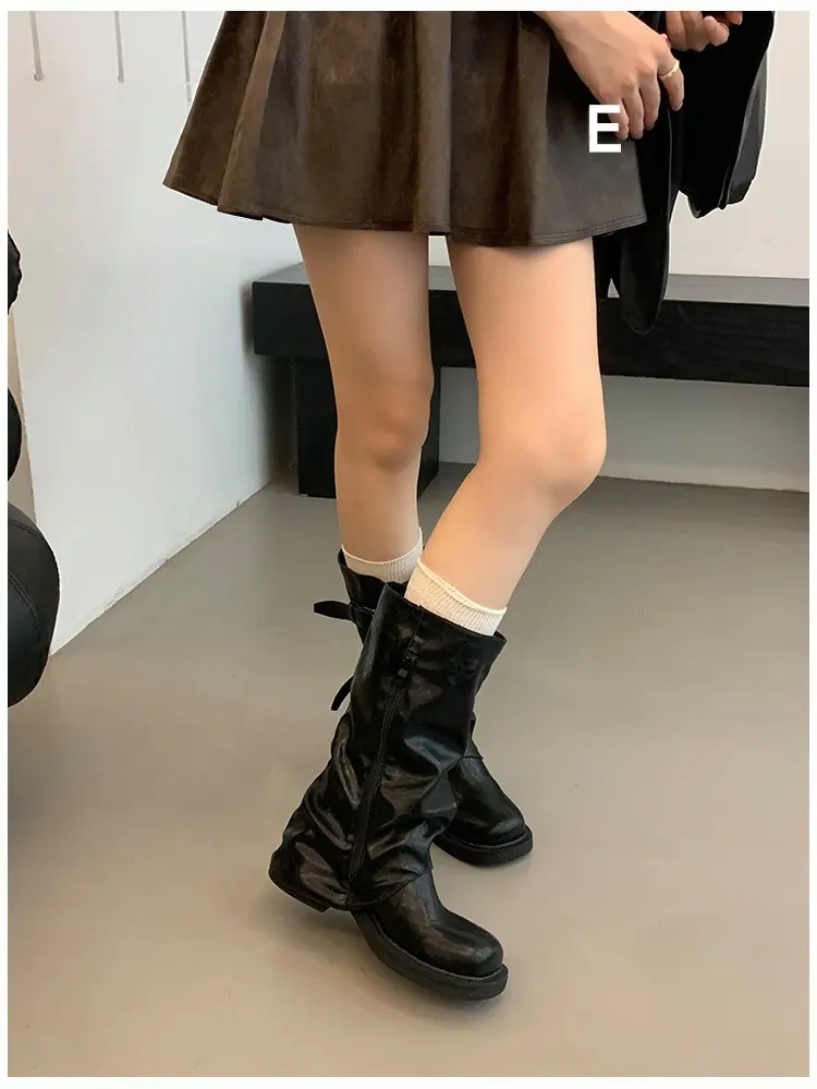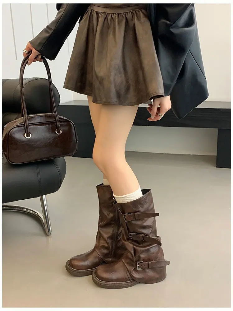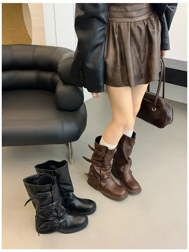 Botas Retro de Caña Alta con Suela Gruesa para Mujer 2025 Otoño/Invierno Nuevo Diseño Nicho Botas Largas Fruncidas Apiladas Botas Largas