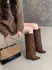 Botas de Gamuza de Tacón de Aguja 2025 Otoño e Invierno Nuevas Botas de Pantalón de Punta Fina con Tacón de Cuña Hebilla de Cinturón Botas de Jinete