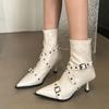 Nuevos Botines de Tobillo Cortos de Tacón Alto con Remaches Puntiagudos de Temperamento Otoño/Invierno Botas de Mujer 2025 Retro Slip-on Tacón Grueso Botas de Caballero