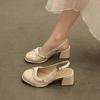 Zapatos Mary Jane de Charol Estilo Nuevo con Correa Trasera, Tacones Altos Bajos para Primavera y Verano, Sandalias de Punta Cerrada con Tacón Grueso para Celebridades de Internet de Mujer 2025