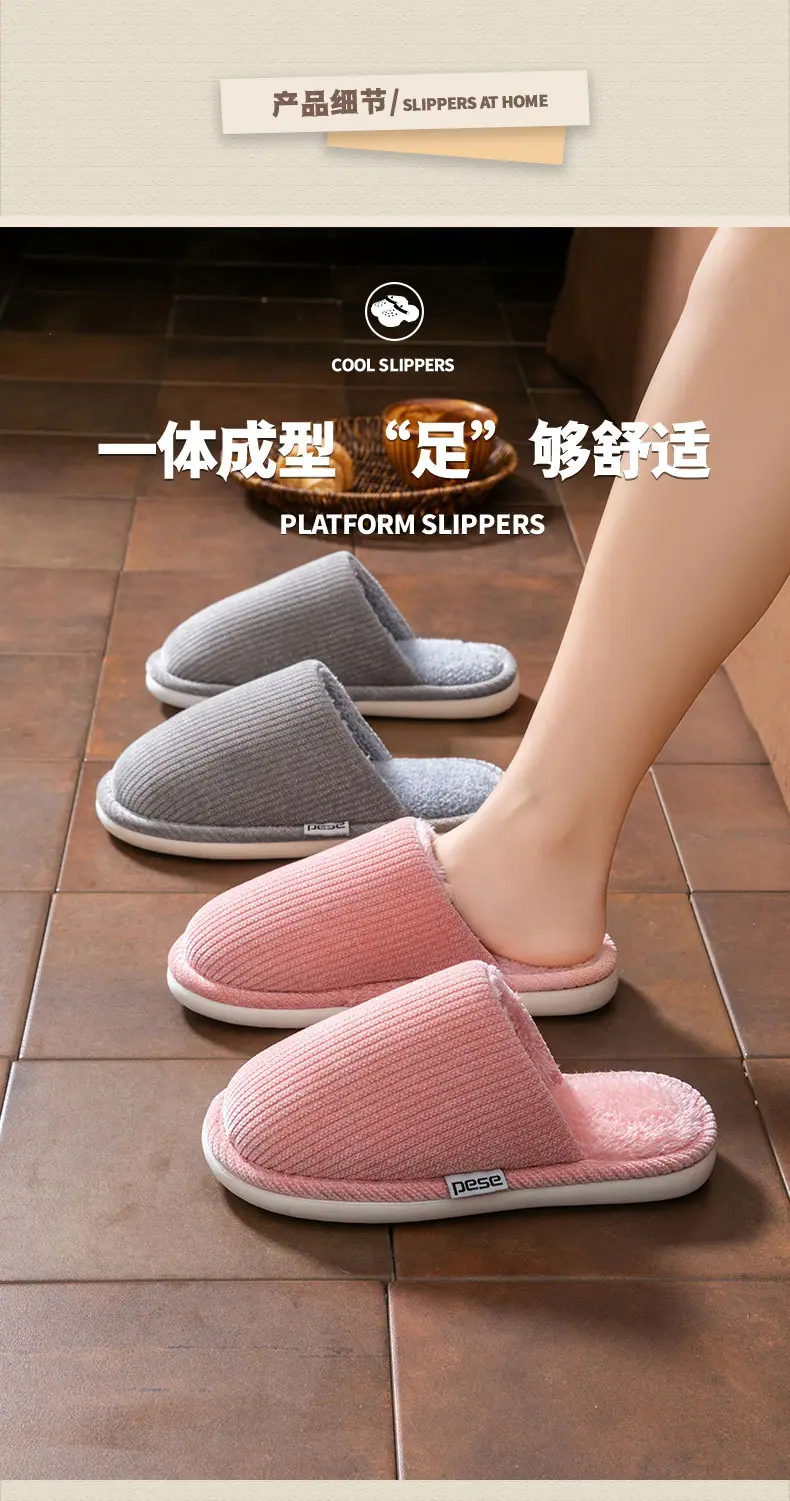 Pisa mierda sintiendo zapatillas de algodón para pareja para mujer 2025 otoño e invierno nuevo hogar interior cálido antideslizante zapatillas engrosadas para hombre