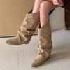 Nuevas Botas de Piel de Ante de Gama Alta con Punta Fina para Mujer 2025, Planas de Doble Uso Botas Altas de Jinete, Botas Anchas