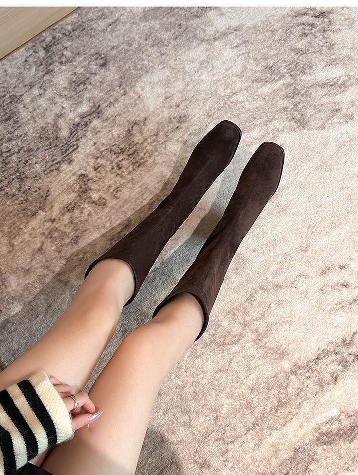 Compra Botas Largas para Mujer, Botas Hasta la Rodilla como Máximo, Otoño e Invierno 2025 Nuevas Botas Elásticas de Tacón Alto con Efecto Adelgazante, Botas de Tacón Alto Grueso, Botas para Mujer al por mayor en Joom.pro