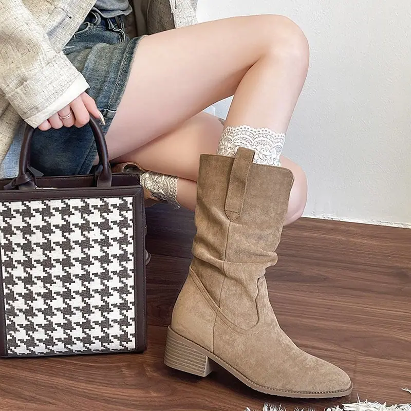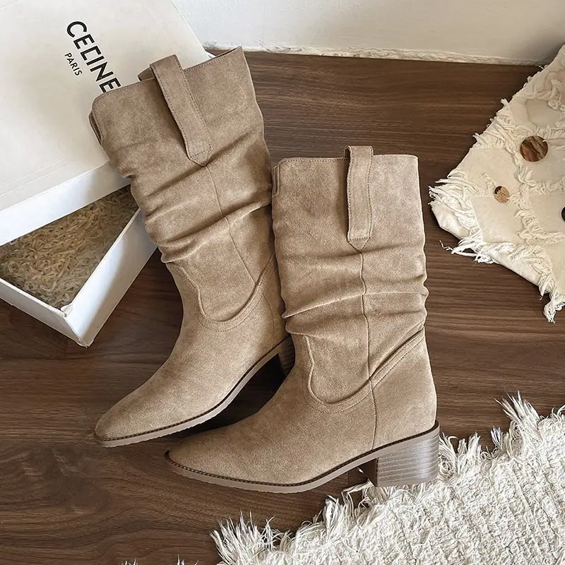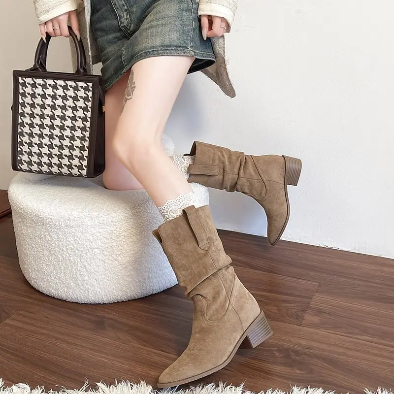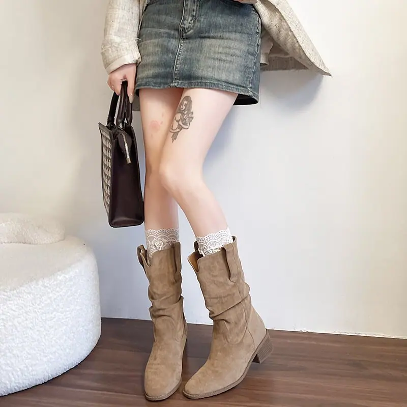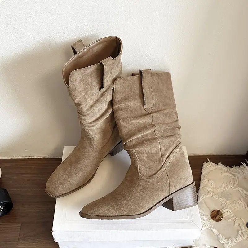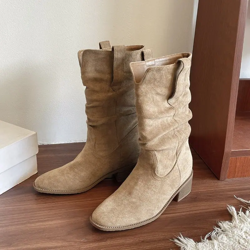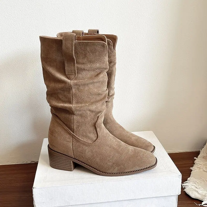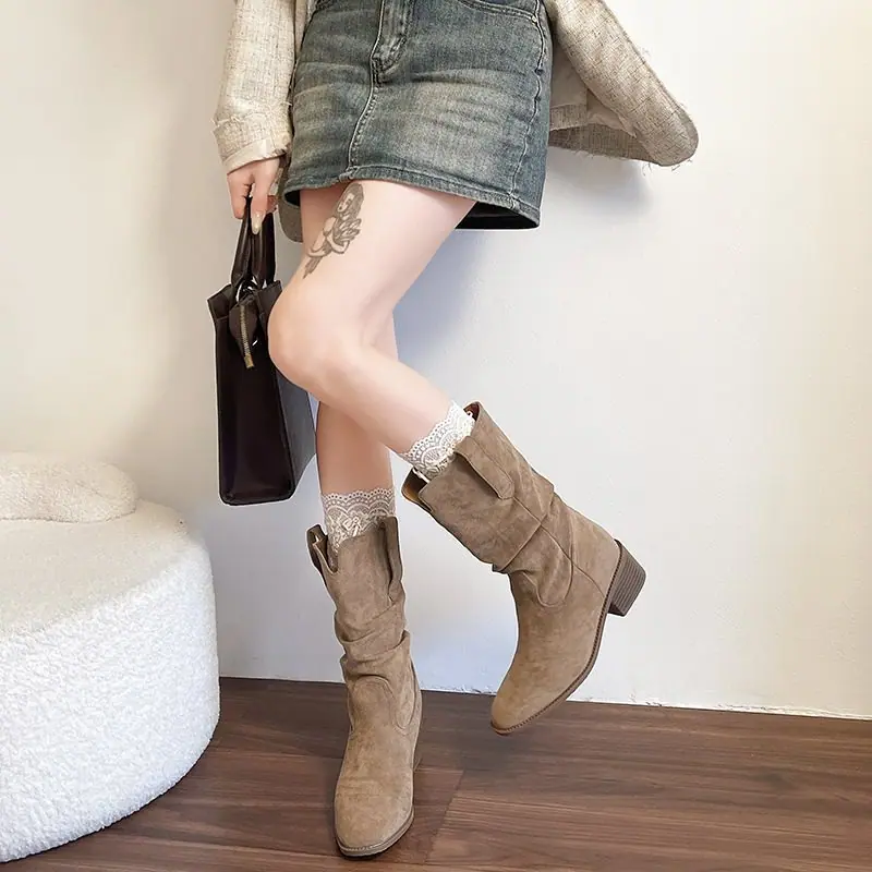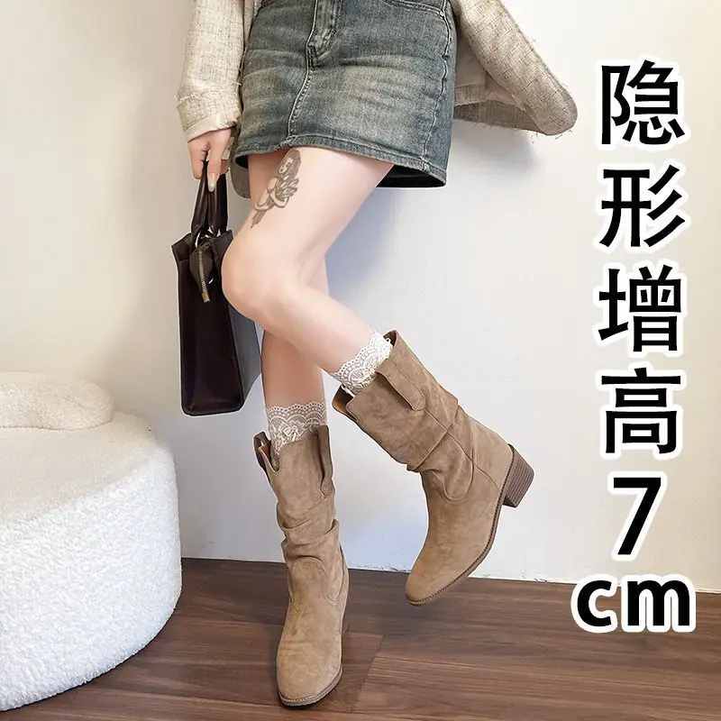 Adelgazantes 2025 Botas Botines Apilados Pequeños Versátiles Otoño Tacón Alto Retro Botas Martin de Mujer Vaqueras Occidentales Nuevo