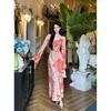 Toma Real de Vestido Largo de Manga Larga con Cuello de Sesgo Estampado Artístico Francés Listo para Usar