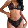 Moda Francesa Sexy Encaje Hebilla Delantera Set de Brasier Ahuecado Espalda Descubierta Lencería de Tentación Braguitas Set de Dos Piezas