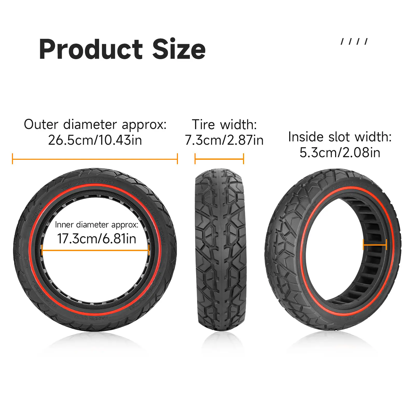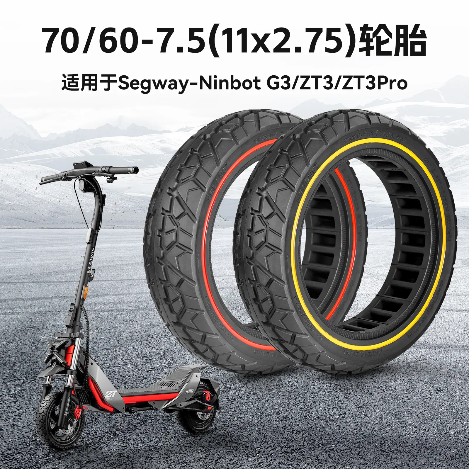 Scooter eléctrico de 11 pulgadas 11*2.75 (70/60-7.5) neumático sólido amortiguador panal a prueba de explosiones