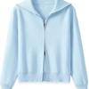 Suéter de punto tipo cárdigan con solapa de diseño moderno, top corto holgado con cremallera, versátil y popular en Oriente Medio