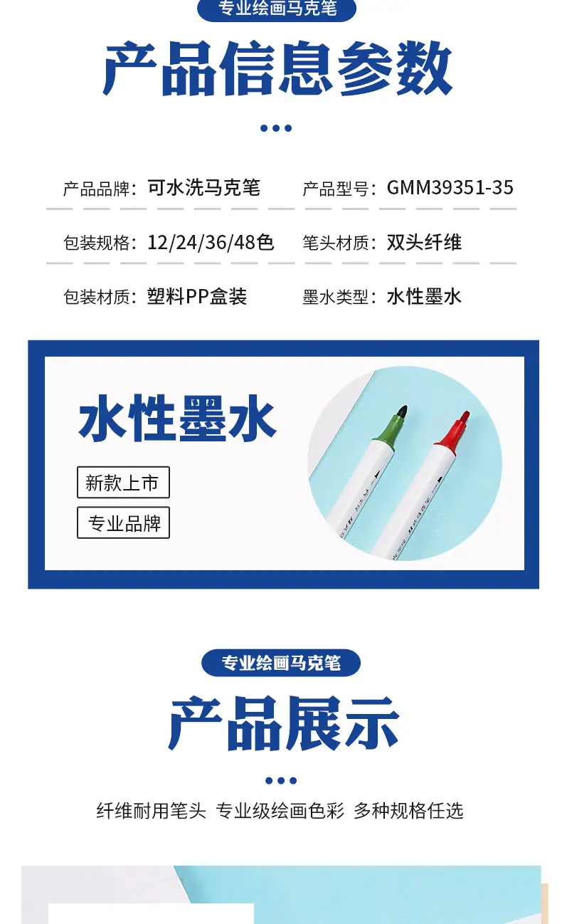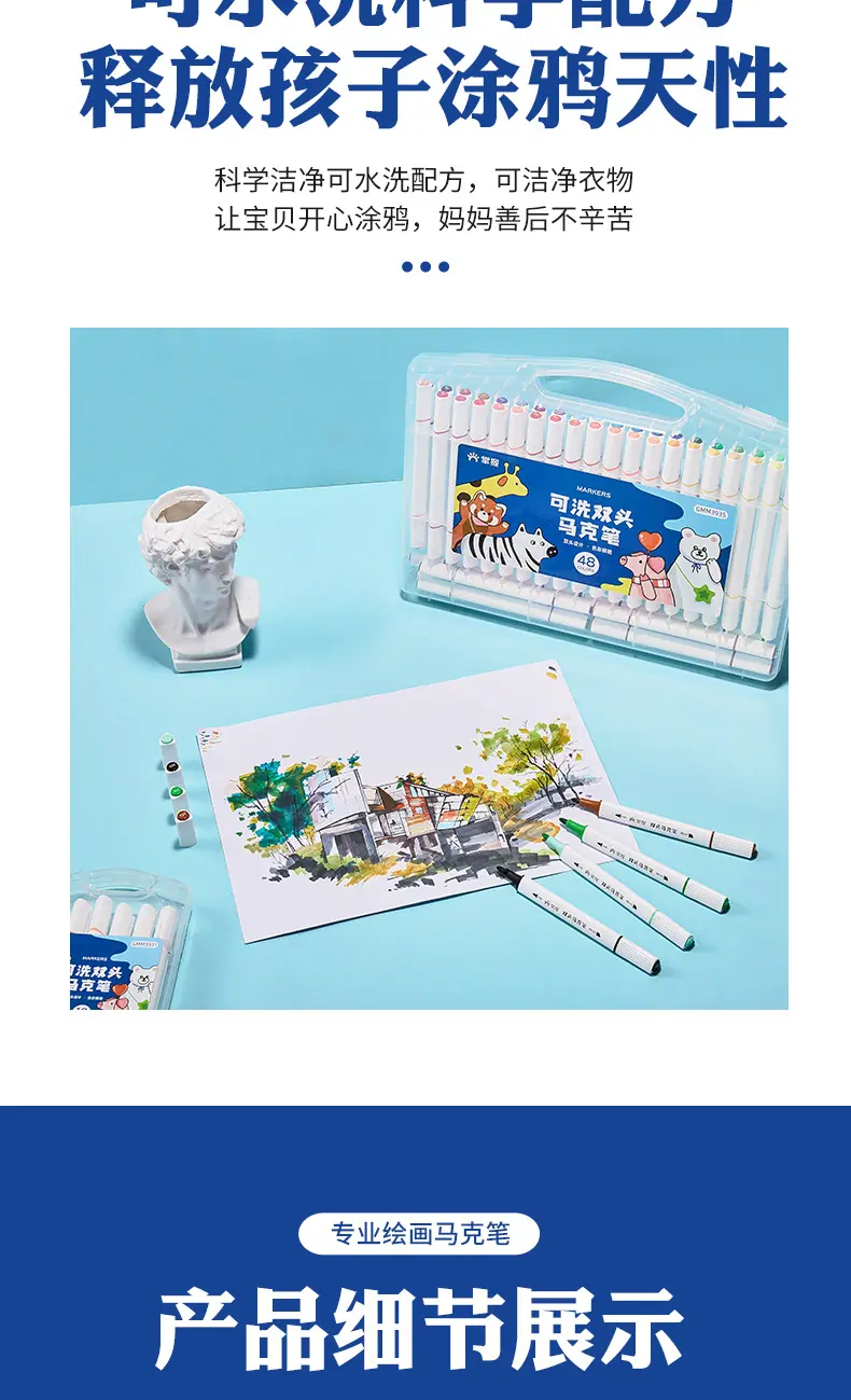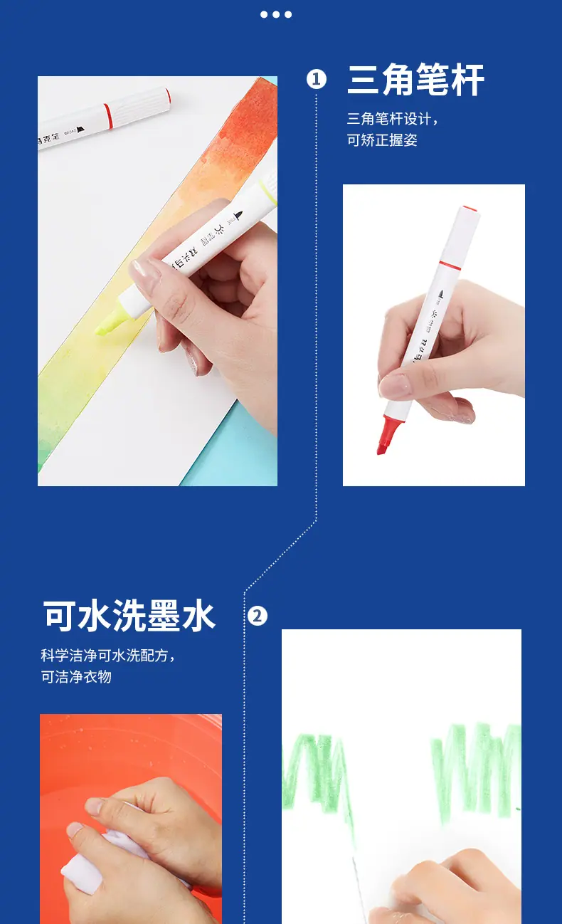 GRASP marcador lavable maestro doble punta pluma de color a base de agua pluma para pintar pluma de acuarela lavable 48 colores punta gruesa