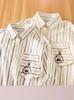 Camisa de Bolsillo Bordada a Rayas de Manga Larga para Mujer Primavera 2025 Sencilla Holgada Casual Combinable Top Cárdigan