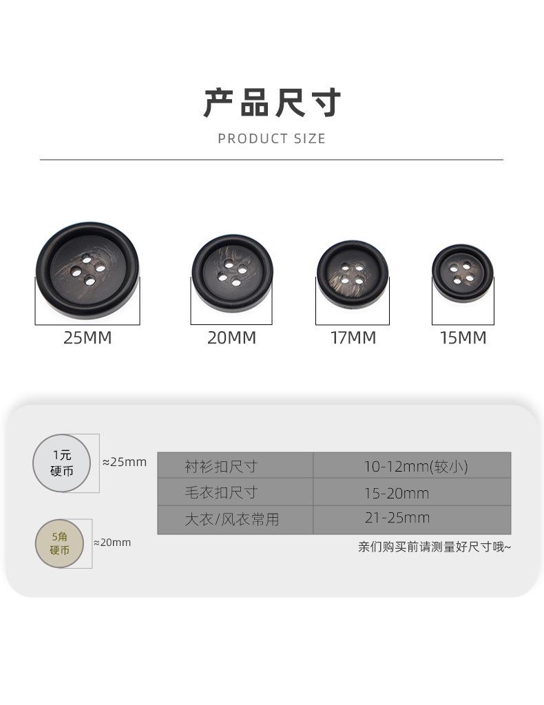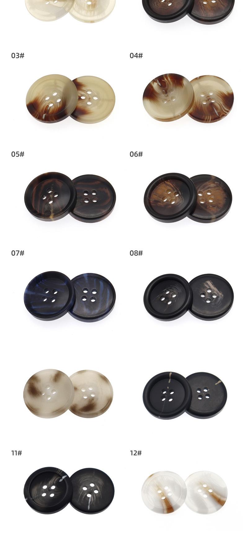 Botones de resina con patrón cosido a mano de cuatro ojos de fábrica, pintura en aerosol de alta calidad, abrigo mate, botones para chaqueta de traje al por mayor