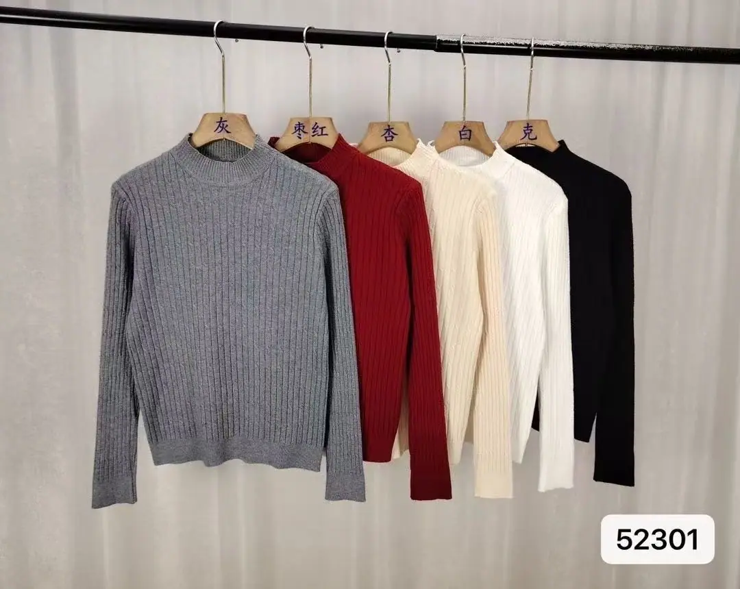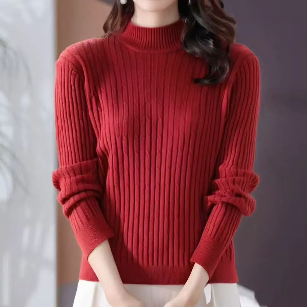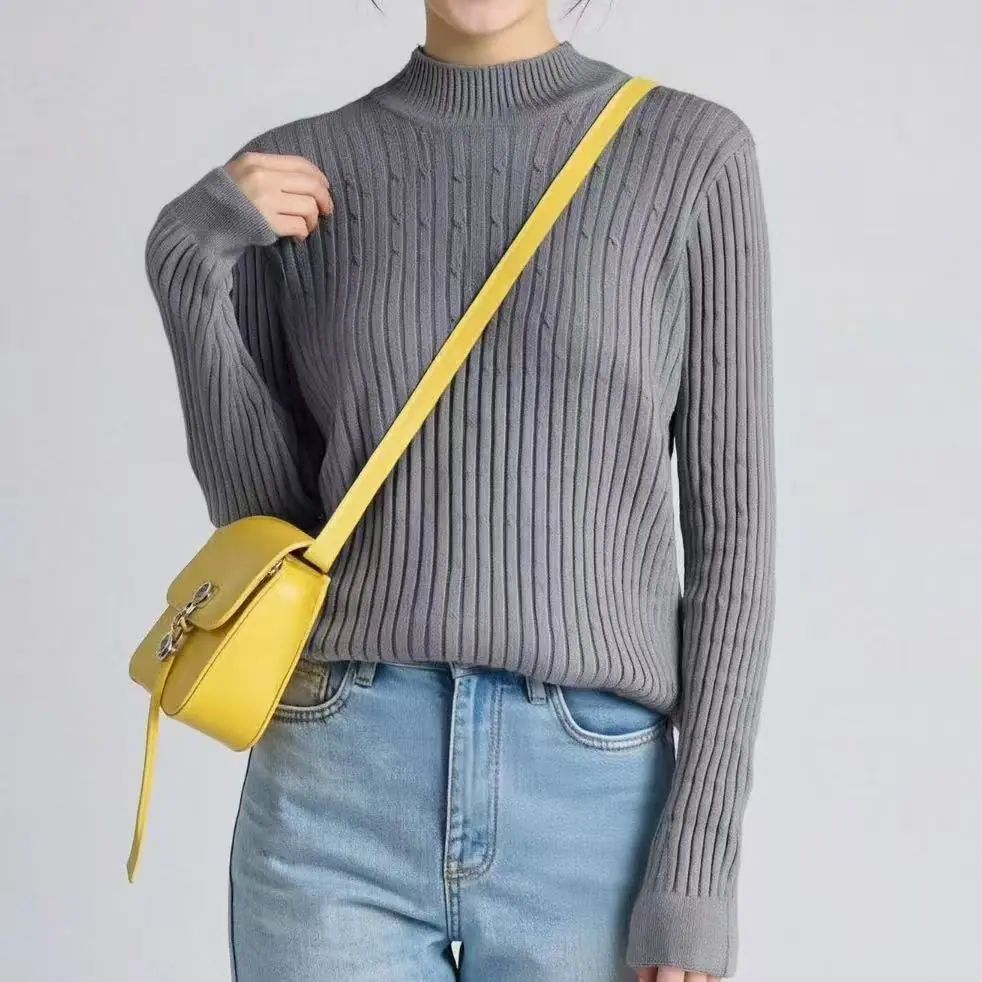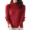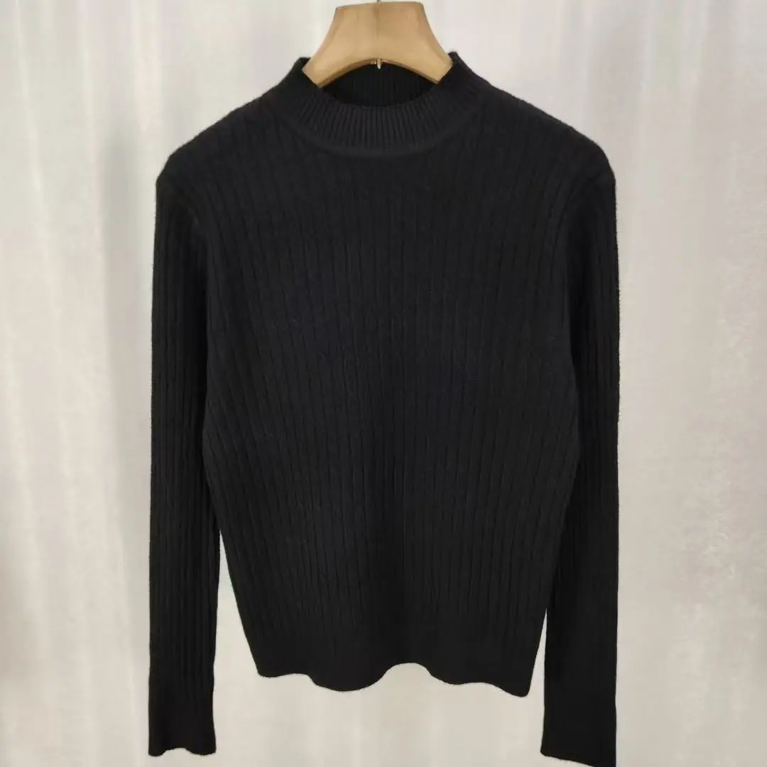 Nuevo Otoño/Invierno Chica Caliente Cuello Semi-Alto Manga Larga Suéter Base Tejido Ropa de Mujer Ajustado Negro Capa Interior Top de Gama Alta